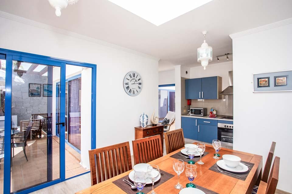 Huomioithan, että tämä huvila sijaitsee Playa Blancan mäkisellä alueella. Tämä huvila sijaitsee Montana Rojan rinteellä ja sieltä on näkymät alapuolella sijaitsevaan lomakeskukseen. Huvilaan pääsee 88 cm leveää polkua pitkin ja kahden askelman kautta. Etuoven leveys on 85 cm ja terassille johtavan oven leveys 107 cm. Terassi on laatoitettu, ja osa ympäröivistä terassialueista on kiveä. Tämä on pohjakerroksen kiinteistö. Kaikkien makuuhuoneiden oven leveys on 70 m ja kylpyhuoneiden 60 cm. Keittiön/ruokailutilan ovi on 114 cm leveä ja olohuoneen ovi 100 cm leveä. Tässä huvilassa on paljon ovenkarmeja, joiden yli on astuttava. *Huomaa, että vaikka olemme pyrkineet kaikin keinoin varmistamaan annettujen tietojen paikkansapitävyyden, virheitä voi esiintyä. Jos haluat lisätietoja huvilasta, ota rohkeasti yhteyttä.