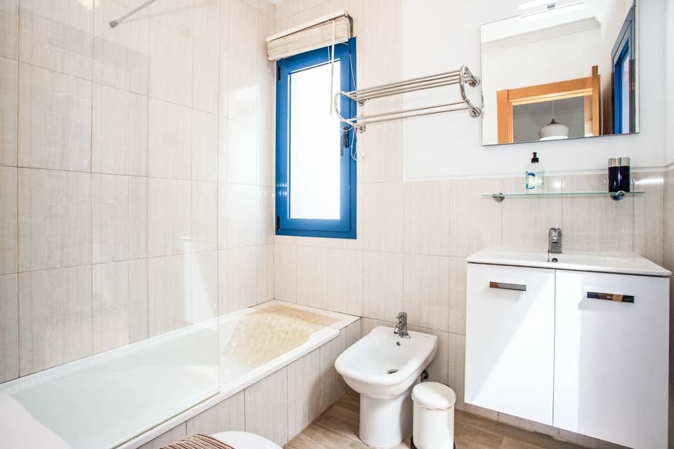 Älä missaa tätä ihastuttavaa kahden makuuhuoneen huvilaa! Viehättävää loma-asuntoa on runsaasti, ja se sopii erinomaisesti jopa neljälle hengelle. Sisäänkäynti huvilaan tapahtuu pienen sisäpihan kautta, josta löytyy pieni leposohva, aurinkotuoleja ja bistro-ryhmä varjoisia tapas-lounaita varten. Huvilan takaosasta löydät lämmitetyn* uima-altaan, joka odottaa sinua pulahtamaan. Useiden rentoutumispaikkojen, puutarhasohvien ja lisävuodesohvan ansiosta valinnanvaraa riittää, kun etsit ihanteellista paikkaa lukemiseen, rentoutumiseen ja rauhoittumiseen. Terrakottalaatat, korkeat palmut ja kätevä tiilistä rakennettu grilli todellakin luovat lomatunnelman.