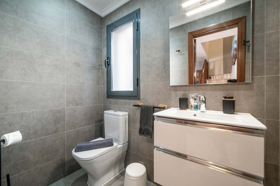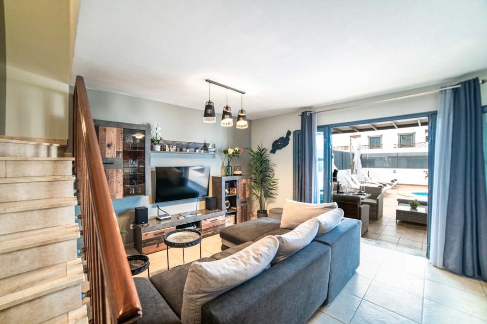 Sisällä viihtyisässä olohuoneessa on suuri taulutelevisio älytelevisiolla, joka sopii erinomaisesti hiljaisempiin iltoihin hyvän elokuvan ja herkullisten herkkujen parissa. Avarassa olohuoneessa on käynti keittiöön, jossa on suuri jääkaappipakastin, astianpesukone ja ruokapöytä. Tästä tilavasta huoneesta on suora pääsy uima-allasterassille, ja suuret lasiovet tulvivat huoneeseen runsaasti luonnonvaloa. Löydämme ensimmäisen makuuhuoneen pohjakerroksesta, kahden hengen huoneen, jossa on kattotuuletin ja televisio paikallisilla kanavilla. Suihkuhuone täydentää pohjakerroksen.