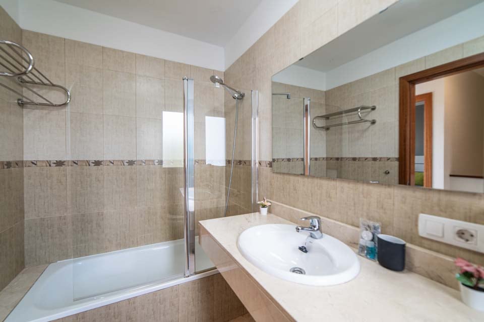 Mene yläkertaan ensimmäiseen kerrokseen, josta löydämme kaksi jäljellä olevaa makuuhuonetta, yhden kahden hengen huoneen ja yhden kahden hengen huoneen. Kaikki makuuhuoneet jakavat ensimmäisen kerroksen perheille sopivan kylpyhuoneen, jossa on kylpyamme/suihku-yhdistelmä. Lopuksi, Villa Arianassa on tilava kattoterassi, jossa voit nauttia ympäröivistä näkymistä yömekon äärellä illan hämärtyessä.