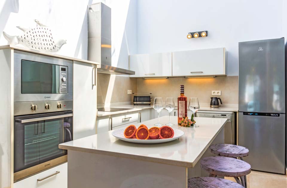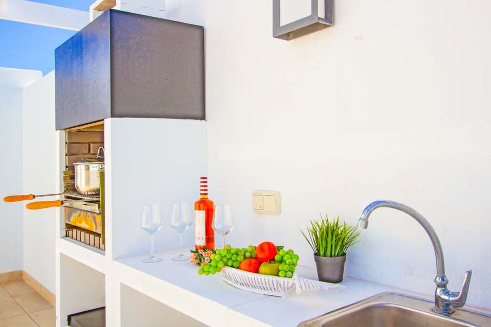 Kulje huvilaan älykkäiden porttien kautta ja nauti kutsuvasta tilan ja rauhan tunteesta. Yhteen tasoon rakennettu ja jopa viidelle hengelle tarkoitettu paritalo on valkoiseksi kalkittu ja moderni, erittäin korkeatasoisesti rakennettu ja kalustettu. Avokeittiössä on trendikäs aamiaispöytä ja olohuoneessa on tyylikästä taidetta. Lattiasta kattoon ulottuvat lasiovet päästävät sisään runsaasti luonnonvaloa ja johtavat uima-allasterassille. Kolme makuuhuonetta ovat valoisia, avaraja ja tyyliä säteilevän merihenkisen sisustuksen ansiosta, joka tuo sisälle rantatunnelmaa.
