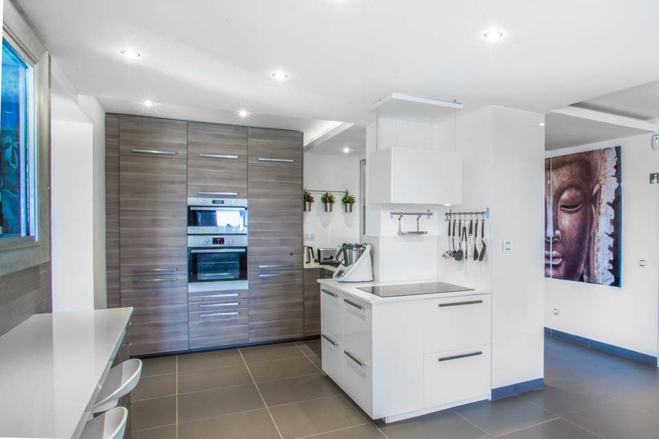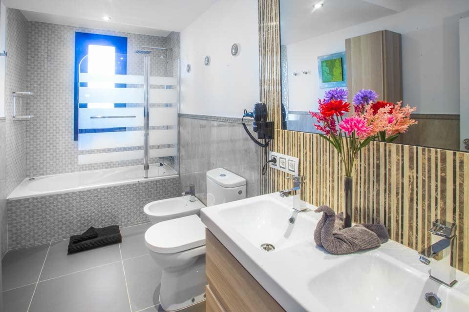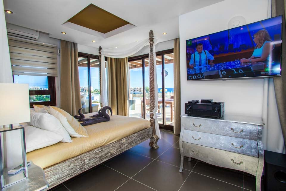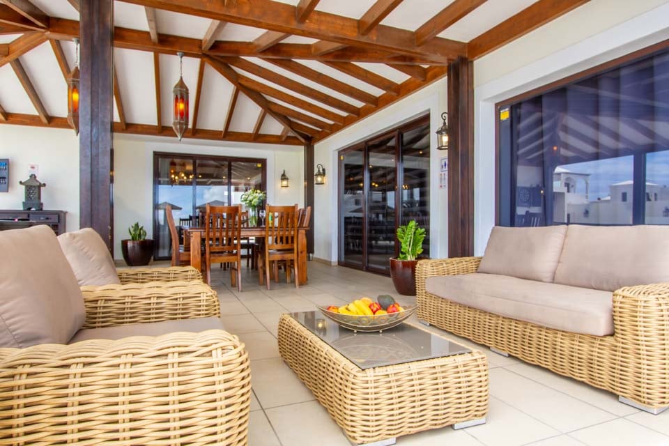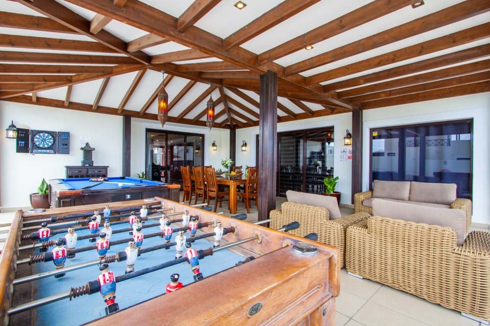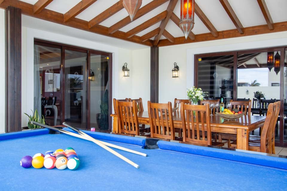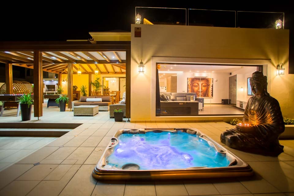 Suuntaa ulos lattiasta kattoon ulottuvista lasiovista ja löydä halutun huvilan upea keskipiste – yksityinen uima-allas rauhoittavine vesiputouksineen, upotettuine allasvuoteineen ja oma uimarata. Kun nuoremmat vieraat polskivat tai kokeilevat kiipeilytelinettä ja keinuja turvallisella leikkialueella, mikset treenaisi nopeasti kuntosalilla ja nauttisi myöhemmin syyllisyydentunnottomista Papas arrugadas -annoksista? Uima-altaan vieressä jättimäisen buddhan vieressä oleva kupliva poreallas rauhoittaa väsyneitä lihaksia ja tarjoaa kaivattua zen-aikaa, kun taas tiilestä rakennettu grilli ja ulkoruokailutila yhdistävät saumattomasti sisä- ja ulkotilan. Lisäbonuksena tässä huvilassa on ilmaiset allaspyyhkeet koko oleskelun ajan.