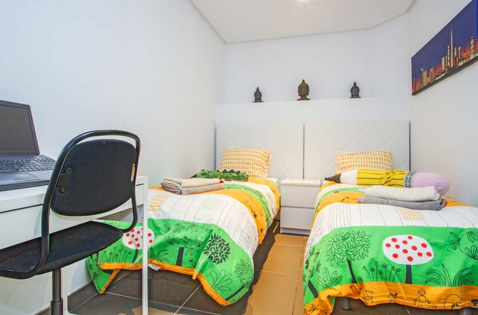 *Huomaathan, että makuuhuoneen kolme sängyt sopivat vain alle 8-vuotiaille lapsille. Katso kuvat.