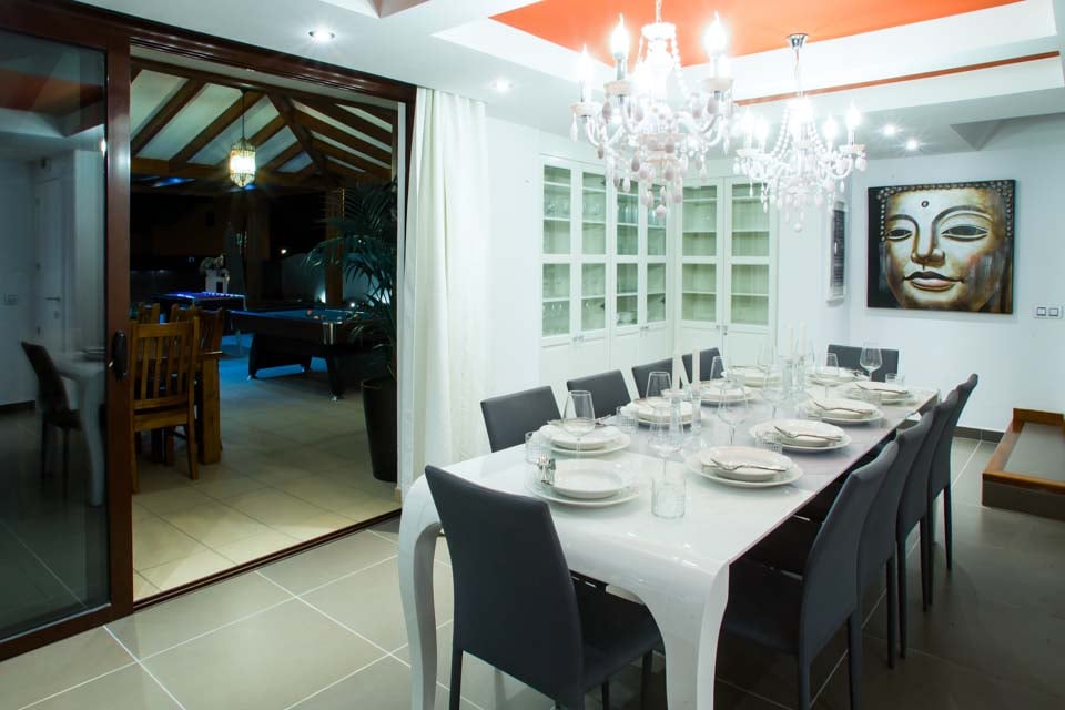 Ihanteellinen sekä usean sukupolven perhelomille että ystäväporukoille, siellä on kuusi makuuhuonetta, mukaan lukien upea päämakuuhuone, jossa on pylvässänky, suuri oma parveke ja oma kylpyhuone, sekä kaksi valoisaa ja leikkisää lastenhuonetta. Rauhallisessa huvilassa on kolme muuta kylpyhuonetta, avoin olohuone ja täysin varusteltu keittiö sekä kaksi pääruokailutilaa – tyylikäs ruokailutila, jossa on ylelliset kattokruunut, ja avoin puutarhahuone, jossa on näkyvät palkit. Se sopii rennompiin kokoontumisiin, joissa voi pelata biljardia tai pöytätennistä kurssien välissä.
