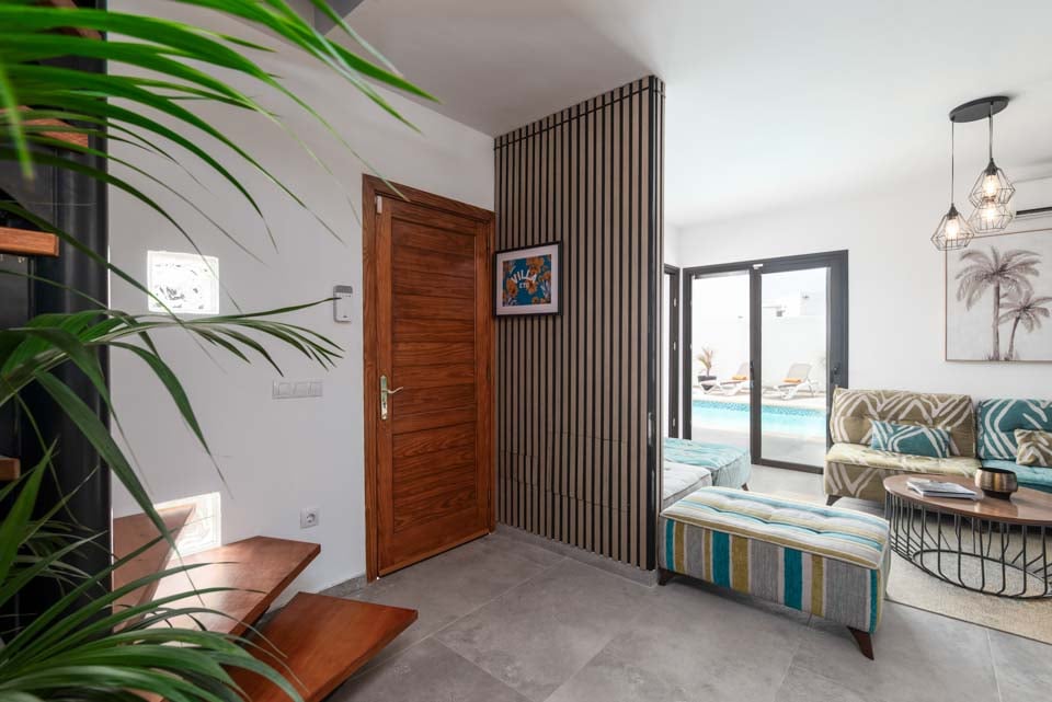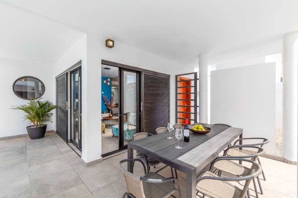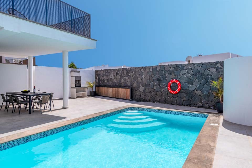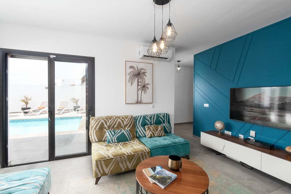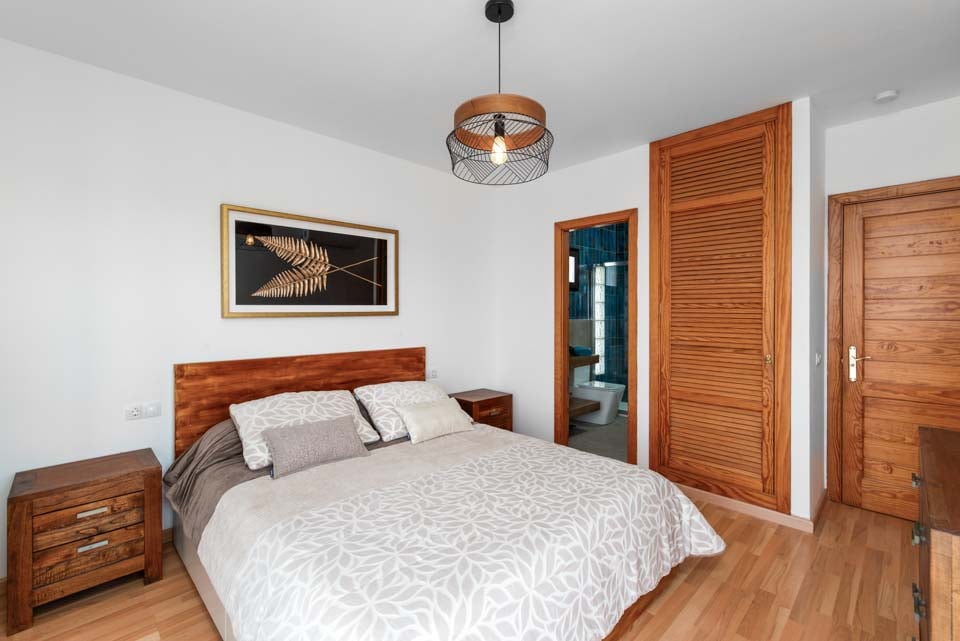 Sisällä löydät modernin sisustuksen värikkäillä yksityiskohdilla, jotka tekevät tästä majoituspaikasta kodinomaisen. Täysin varustellun keittiön, kodinhoitotilan ja viileän ilmastoinnin lisäksi löydät kaiken, mitä tarvitset omatoimisella lomallasi. Neljällä makuuhuoneella ja kolmella kylpyhuoneella tämä huvila sopii erinomaisesti jopa kahdeksalle vieraalle. Muista varata ensimmäisen kerroksen makuuhuone, jossa on oma kylpyhuone, parveke ja puutarhatuolit. Ihanteellinen paikka myöhäisillan juomille!