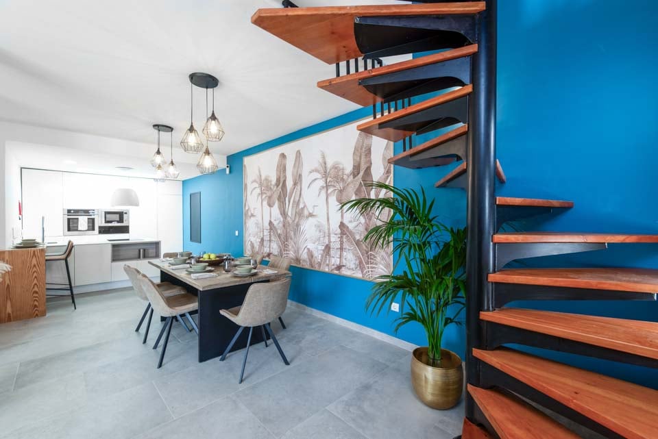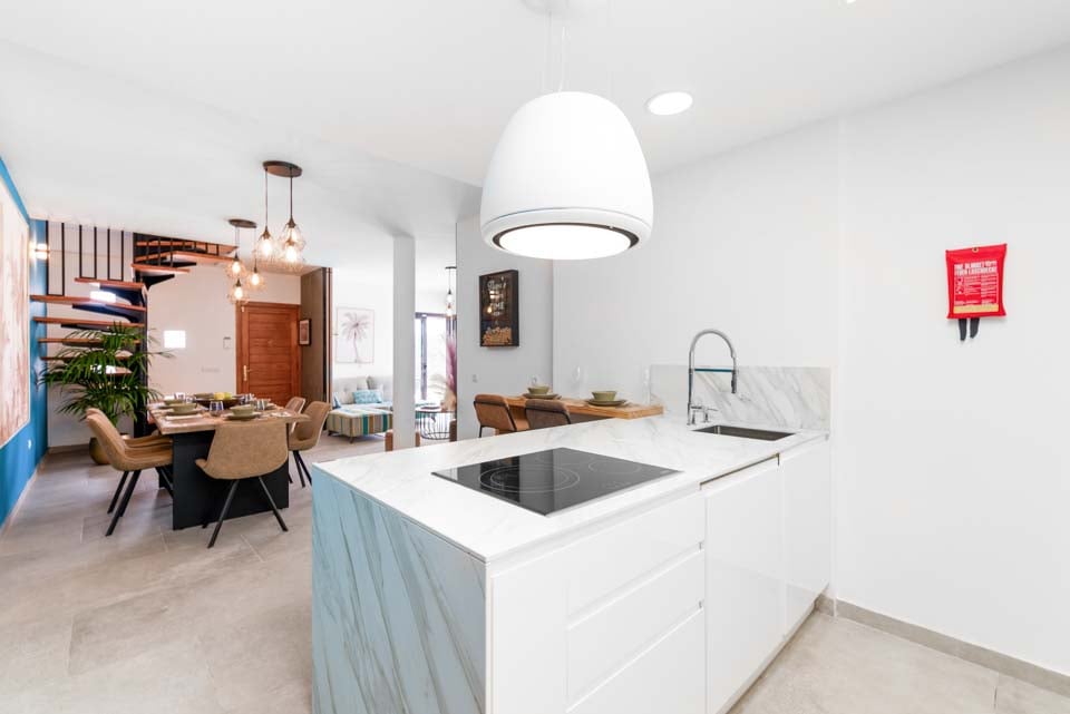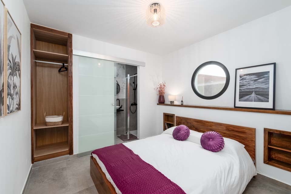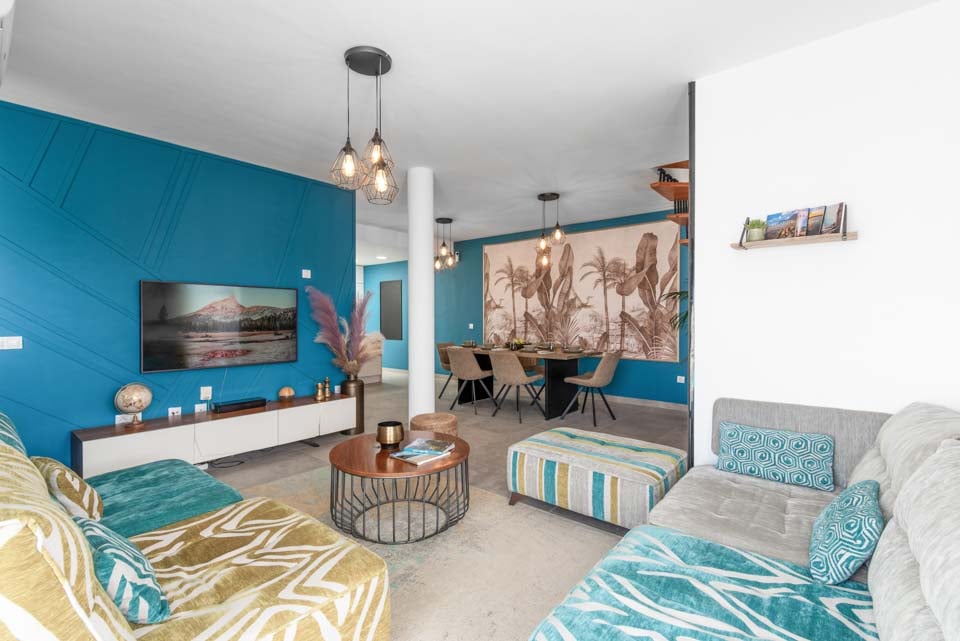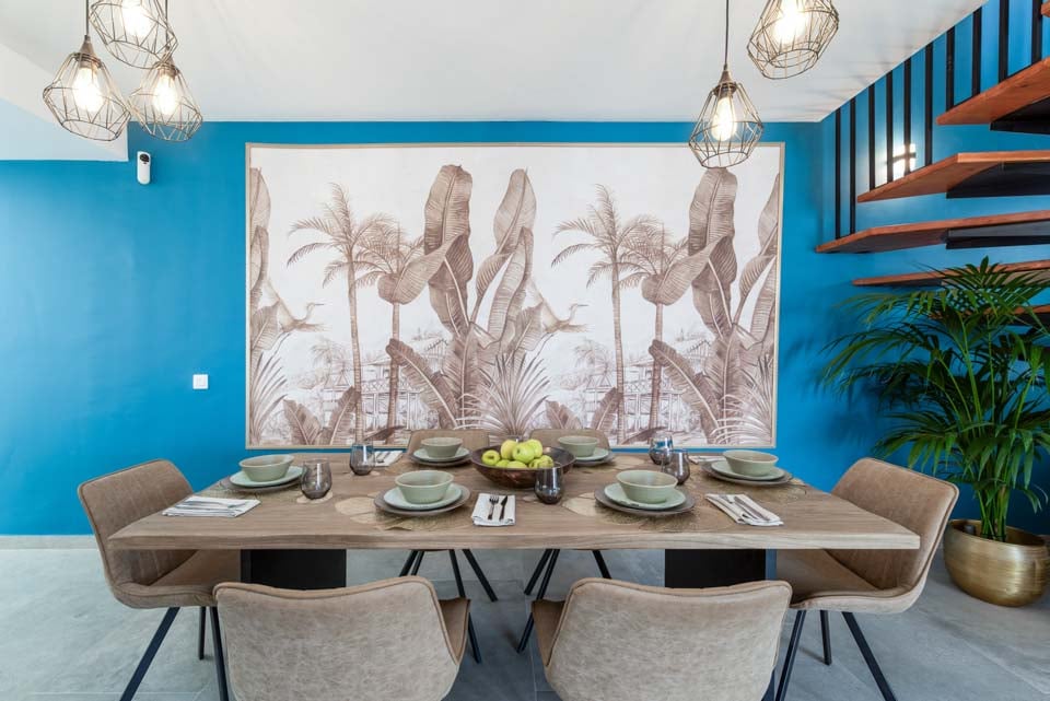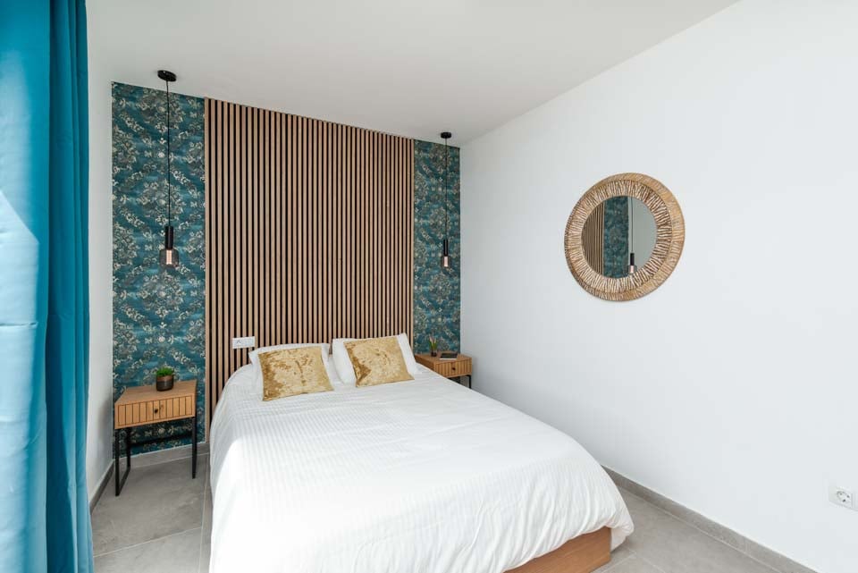 Sisällä löydät modernin sisustuksen värikkäillä yksityiskohdilla, jotka tekevät tästä majoituspaikasta kodinomaisen. Täysin varustellun keittiön, kodinhoitotilan ja viileän ilmastoinnin lisäksi löydät kaiken, mitä tarvitset omatoimisella lomallasi. Neljällä makuuhuoneella ja kolmella kylpyhuoneella tämä huvila sopii erinomaisesti jopa kahdeksalle vieraalle. Muista varata ensimmäisen kerroksen makuuhuone, jossa on oma kylpyhuone, parveke ja puutarhatuolit. Ihanteellinen paikka myöhäisillan juomille!