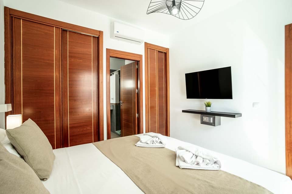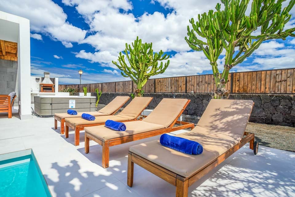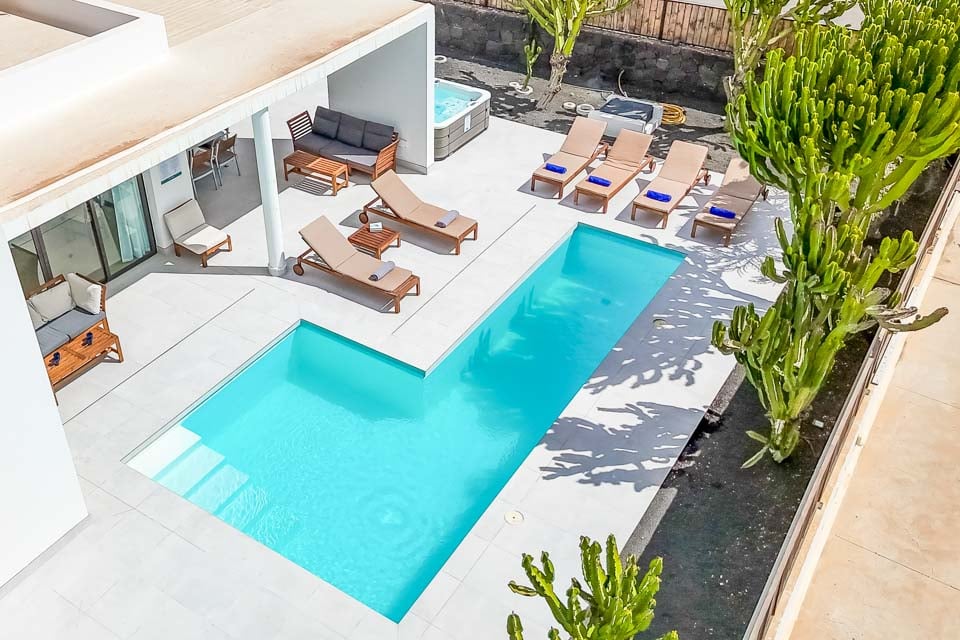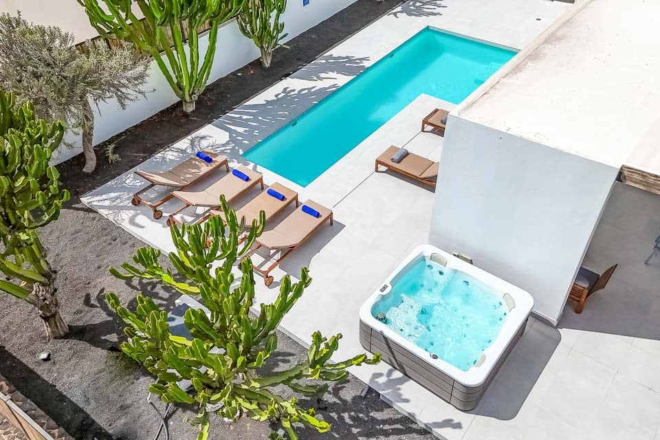 Täydellinen vastakohta Lanzaroten tunnetulle vulkaaniselle maisemalle: yksityinen uima-allas on viileän ja tyynen veden äärellä ja odottaa sinua. Kirkkaan auringon alla, joka paistaa ympäri vuoden, et halua koskaan lähteä huvilaltasi, kun sinulla on keidas oven takana. Löydä etelärannikon rauha aurinkolaseilla ja jalat ylhäällä uima-altaan aurinkotuoleilla, kun kirkkaan sinisen taivaan alla arjen huolesi yksinkertaisesti katoavat. Yksityinen poreammeesi on todellakin kirsikka kakun päällä, tarjoten parhaan paikan rentoutua viileän juoman kanssa hämärän aikaan.