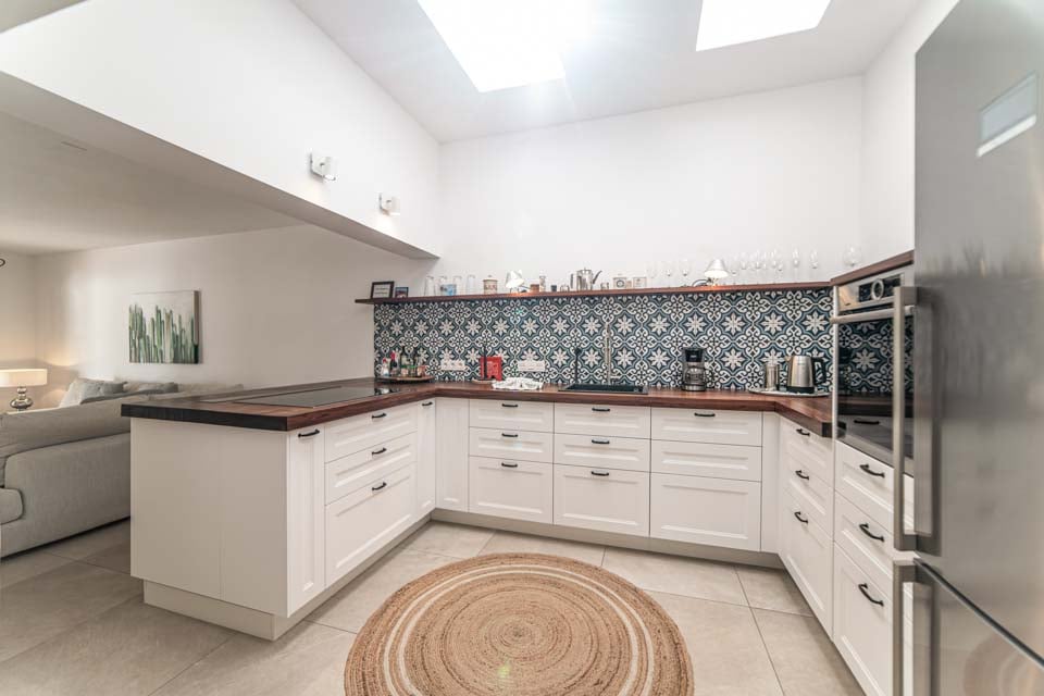 Täysin varustetussa keittiössä on modernit mukavuudet, kuten kätevä astianpesukone, kun taas kodinhoitohuoneessa on pesukone ja kuivausrumpu, jotka tekevät oleskelustasi entistäkin mukavamman. Kaunis talvipuutarha lisää viehätystä ja tarjoaa rentouttavan tilan mukavine puutarhasohvineen, jotka sopivat täydellisesti iltaisin rentoutumiseen tai hiljaisesta hetkestä nauttimiseen.