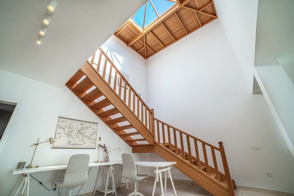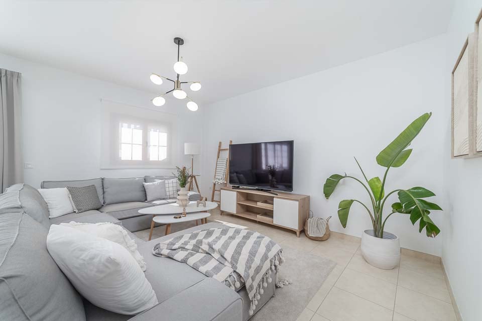 Huomioithan, että tämä huvila sijaitsee Playa Blancan hieman mäkisellä alueella. Huvilaan pääsee 122 cm leveää polkua pitkin, jossa on 19 askelmaa. Etuoven leveys on 89 cm ja terassille johtavan oven leveys 126 cm. Terassi on kolmikerroksinen, ja jokaiselle tasolle on portaat alas. Terassi on laatoitettu, ja uima-altaalle on käynti portaita pitkin. Ulkoseinien ympärillä olevat portaat näkyvät useissa kuvissa. Pohjakerrokseen on 15 askelmaa. Makuuhuoneen ovet ovat 69 cm leveät, samoin kuin kylpyhuoneen ovet. Keittiön/ruokailutilan ovi on 97 cm leveä ja olohuoneen ovi on myös 97 cm leveä. *Huomaa, että vaikka olemme pyrkineet kaikin keinoin varmistamaan annettujen tietojen paikkansapitävyyden, virheitä voi esiintyä. Jos haluat lisätietoja huvilasta, ota rohkeasti yhteyttä.