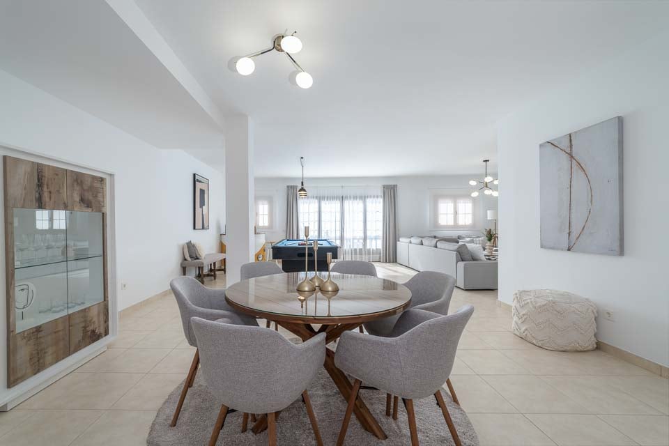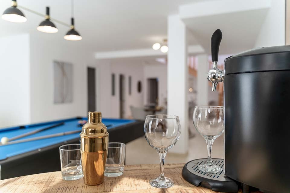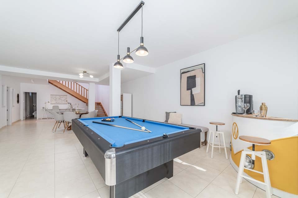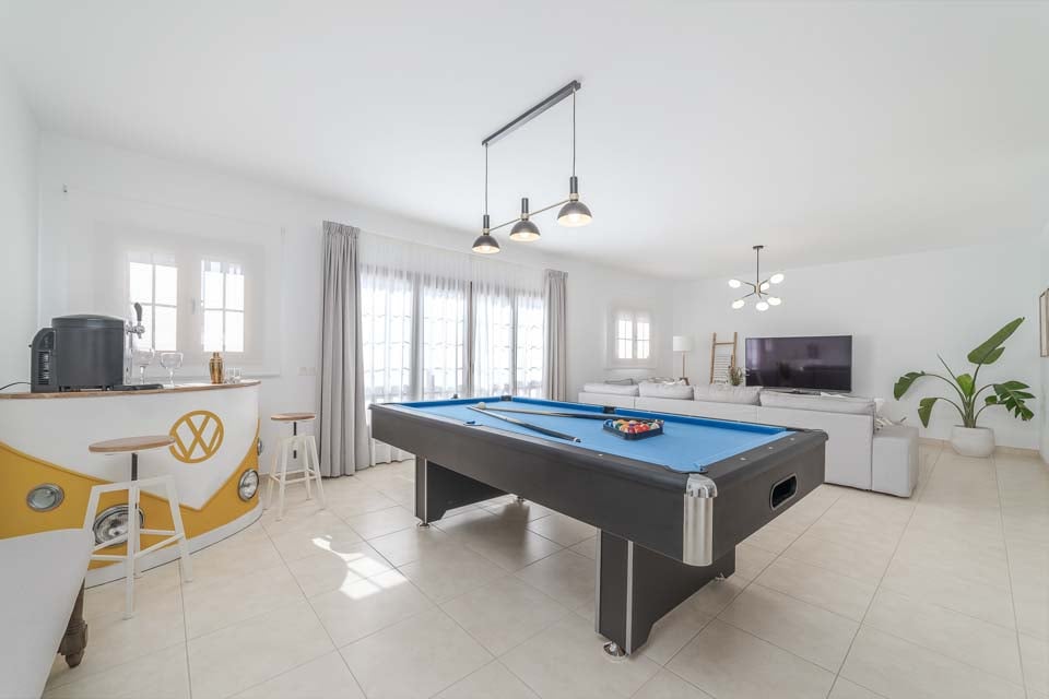 Runsaan luonnonvalon ansiosta ulkoilma tuodaan saumattomasti sisälle huvilaan, joten voit nauttia auringosta missä tahansa oletkin. Pidä ystävällistä kilpailua läheistesi kanssa hyödyntämällä biljardipöytää täysillä. Oma baarialue aivan vieressä, järjestä turnaus ja todista lopullisesti kuka on paras pelaaja.