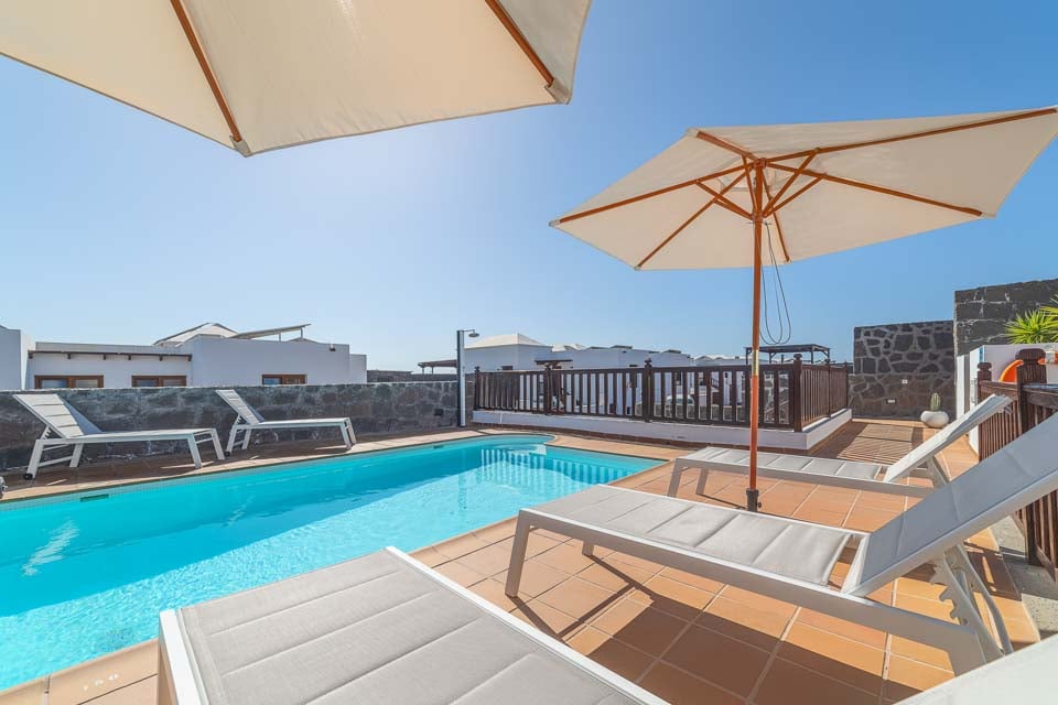 Rauhoita itsesi yksityisessä uima-altaassa auringon paistaessa yllesi. Anna viileiden vesien huuhdella ylitsesi ja nauti eteläisen Lanzaroten rannikon rauhasta. Pronssinväriset lämpimät säteet millä tahansa huvilan aurinkotuoleilla tai ehkä jopa mukavilla ulkosohvilla, joille on ihana uppoutua – yritä vain olla nukahtamatta!