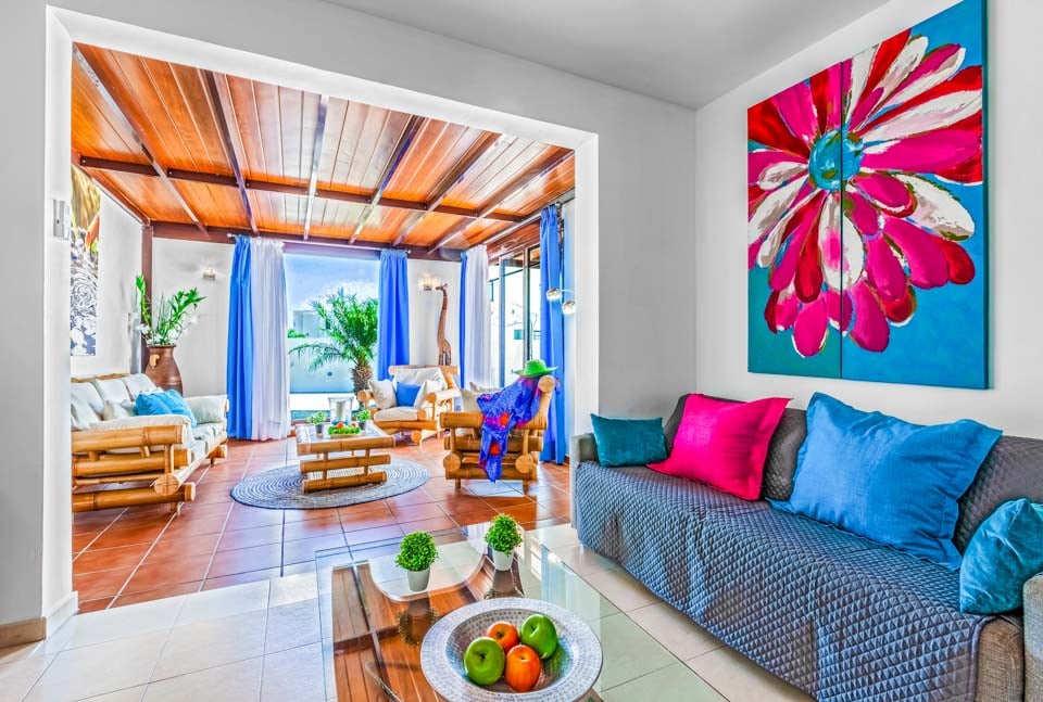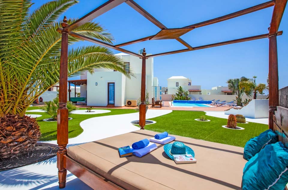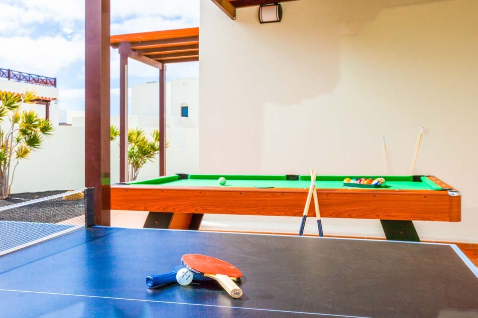 Olohuoneen lasiovet johtavat ulko-oleskelutilaan, jossa sinä ja perheesi ja ystäväsi vietätte suurimman osan ajastanne. Tilava aidattu piha-alue, jossa on leposohva, sekä pari aurinkotuolia avoimen uima-altaan ympärillä (lämmitys sisältyy hintaan marraskuusta huhtikuuhun). Villassa on myös biljardipöytä ja pöytätennis perheiden ja ystävien iloksi. Tiilistä rakennettu grilli ja pergola luovat tilan niille, jotka haluavat ruokailla ulkona, poissa keskipäivän Kanariansaarten auringonpaisteesta. Faro Parkin muutamat baarit, ravintolat ja supermarket ovat kävelymatkan päässä, ja säännöllinen bussiyhteys Playa Blancan keskustaan on myös lähellä. Sisarhuvilat Zafiro ja Esmeralda sijaitsevat vieressä, joten ne sopivat täydellisesti suuremmille perhe- ja ystäväporukoille, jotka haluavat olla lähellä toisiaan.