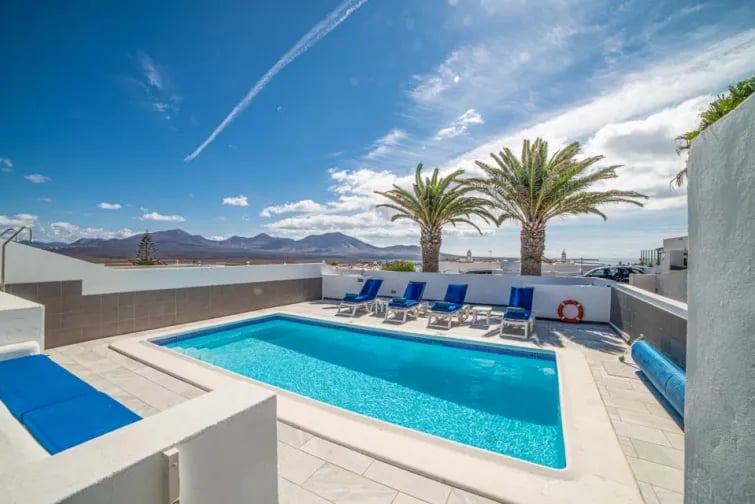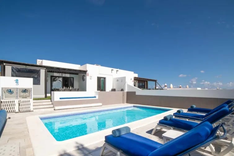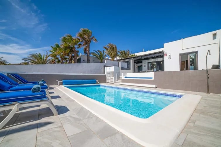 Sano Hola upealle Villa Vimarille, joka sijaitsee suositulla Playa Blancan lomakohteella. Tämä valkoiseksi kalkittu huvila, jossa on moderni sisustus ja oma lämmitetty* uima-allas, tekee siitä ihanteellisen lomapaikan tällä aurinkoisella saarella. Lanzarotella on arviolta 300 aurinkoista päivää vuodessa, joten se on loistava paikka ympärivuotiseen auringonpaisteeseen. Ja lämmitetyn* uima-altaan ansiosta voit nauttia ulkoilusta säästä riippumatta. Rentoudu ja nauti lasillisesta sangriaa samalla kun nautit lepotuolista ja hyvän kirjan seurasta. Vaihtoehtoisesti, jos nautit ruoanlaitosta, ulkona ruokailua varten on grilli ja varjoisa katettu terassi, jolta avautuvat upeat näkymät sammuneille tulivuorille.