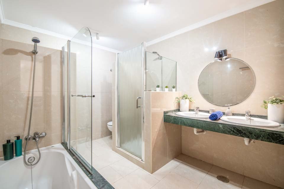 Kylpyamme suihkulla, Suihku, WC, Bidee, Pesuallas, Kaksoisallas, Kaksoisaltaat