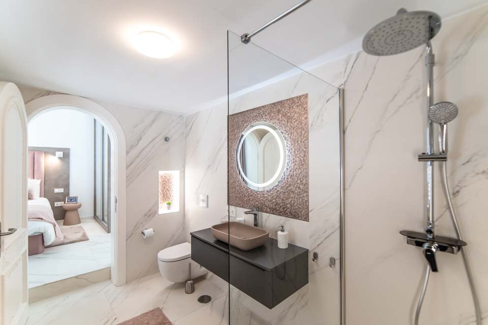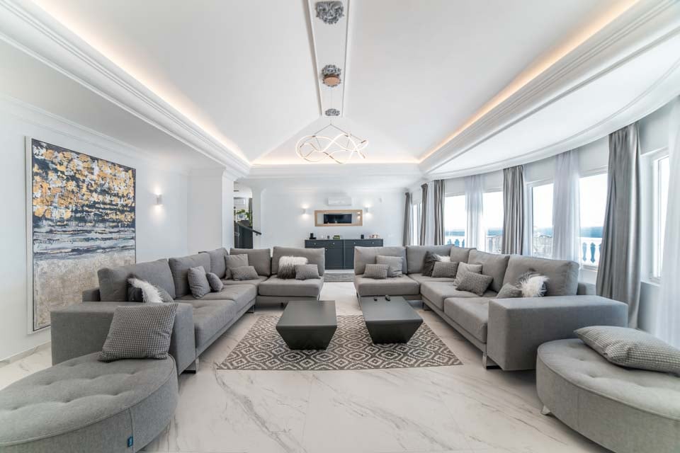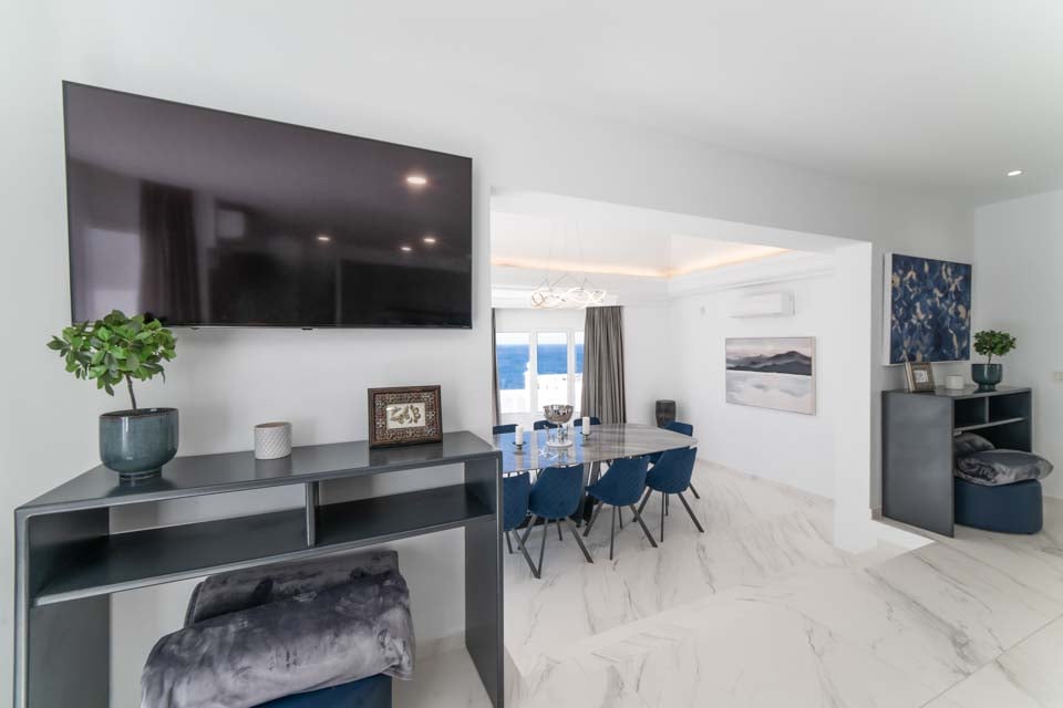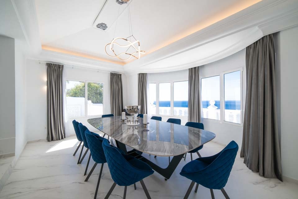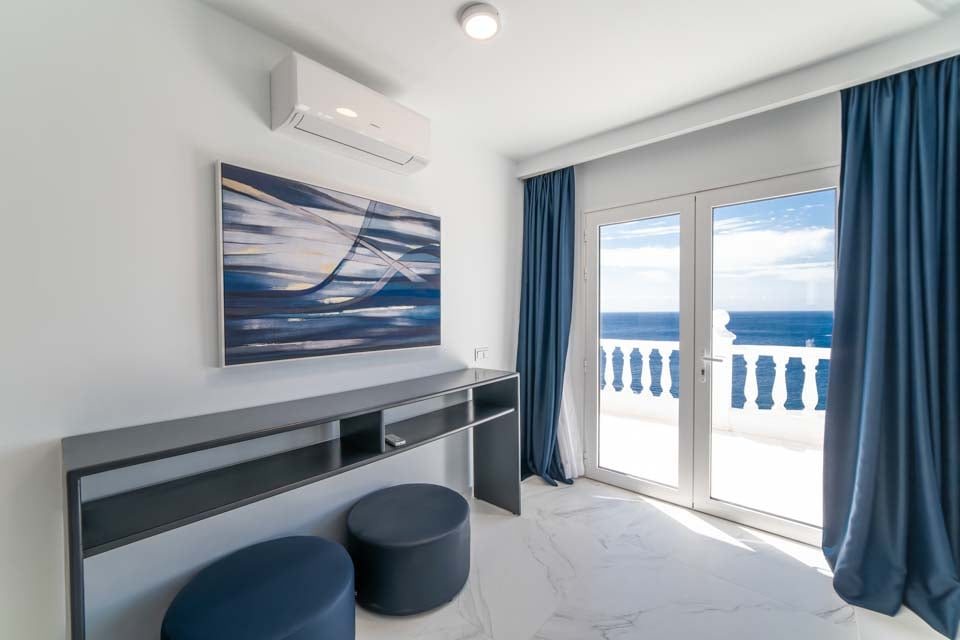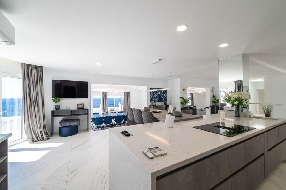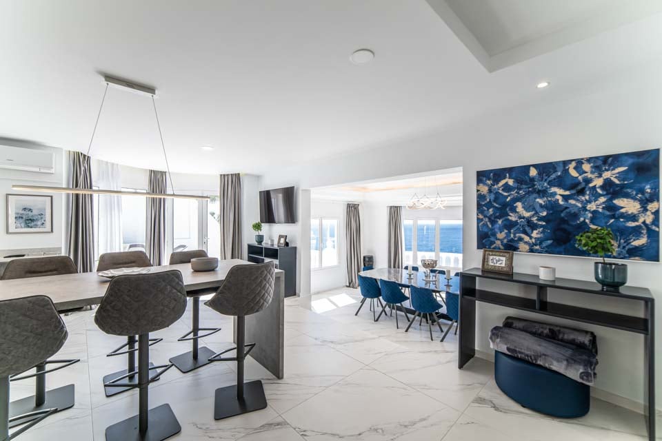 Jokaisessa kuudesta tilavasta makuuhuoneesta on oma kylpyhuone ja ilmastointi, mikä tarjoaa yksityisen turvapaikan jokaiselle vieraalle. Täysin varusteltu keittiö on kokin unelma, jossa on aamiaispöytä, viinikaappi ja upeat merinäköalat, jotka tekevät jokaisesta aterianvalmistuksesta nautinnon. Tyylikkäästä ruokasalista on myös esteettömät merinäköalat, jotka sopivat erinomaisesti seurusteluun tai rentouttavien aterioiden nauttimiseen perheen ja ystävien kanssa.