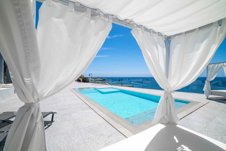 Astu ulos rentoutumaan! Huvilan alakerrassa on oma uima-allas, jota ympäröivät mukavat leposohvat ja allaspyyhkeet aurinkoisia iltapäiviä varten. Erillinen poreallas kutsuu sinut rentoutumaan tyylikkäästi, ja viihtyisät munatuolit ja puutarhaistuimet luovat ihanteelliset puitteet iltakeskusteluille. Viihde jatkuu biljardipöydän ja runsaan tilan parissa rentoutumiseen tai pelaamiseen. Yläkerran avaralta yläterassilta on laajemmat merinäkymät – rauhallinen paikka aamukahville tai auringonlaskun cocktaileille.
