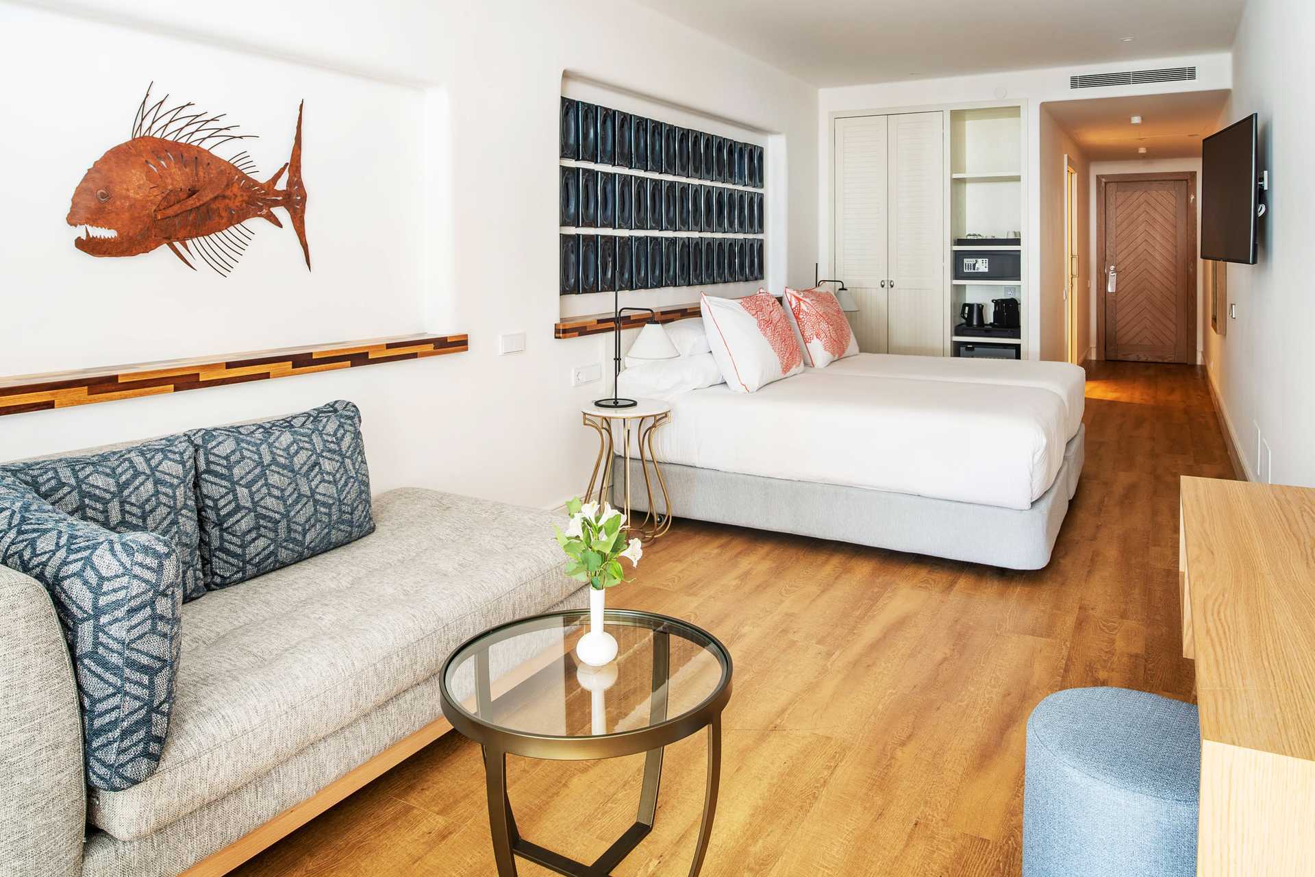 Junior-sviitti, jossa on parveke ja merinäköala. Kaksi yhden hengen sänkyä. Tyynymenu. Maksuton wifi, ilmastointi ja tallelokero. Jääkaappi. Vedenkeitin, kahvia ja teetä. Tv kansainvälisillä kanavilla. Kylpytakit ja tossut. Hiustenkuivain. Suihku ja wc. Siivous 7 krt/viikko.
