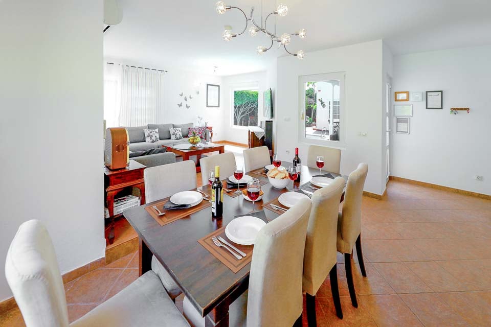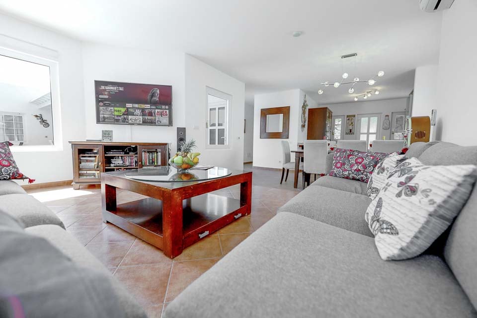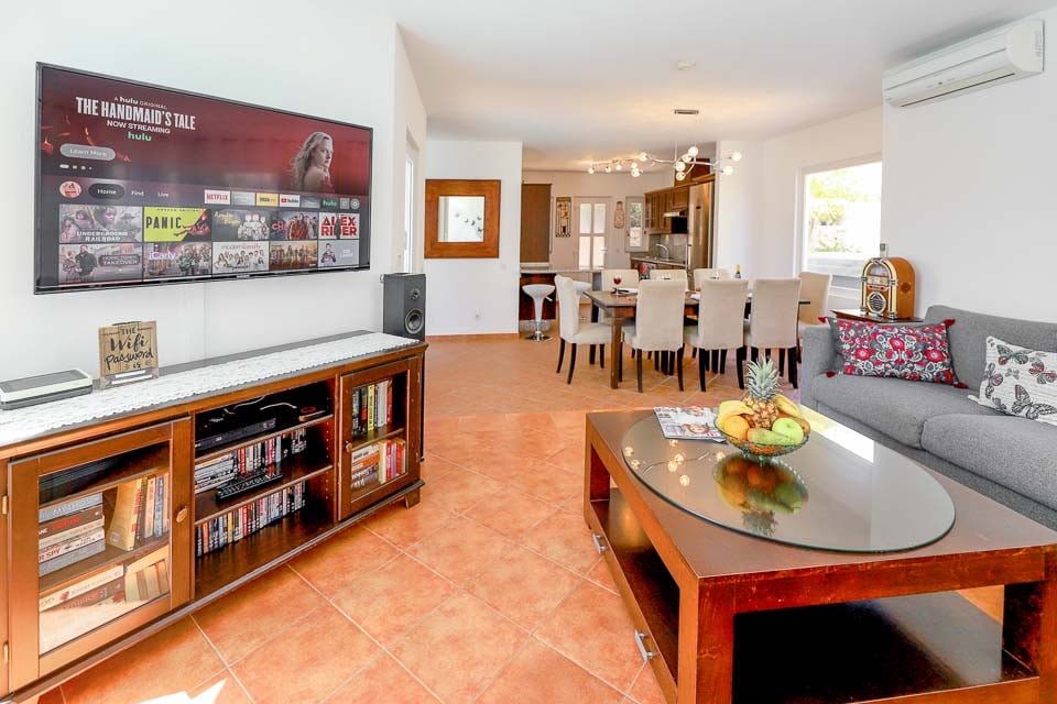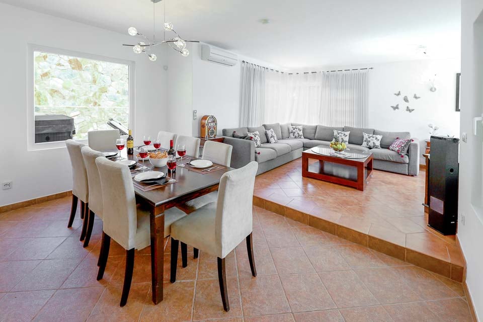 Suuntaa valoisaan ja tilavaan oleskelutilaan, jossa on mukavat sohvat ja satelliitti-tv englanninkielisillä kanavilla. Äärimmäisen mukavuuden takaamiseksi oleskelutilassa on myös ilmastointi ja musiikkisoitin. Ruokailutilasta on käynti moderniin, avokeittiöön. Täältä löydät runsaasti kodinkoneita, jotta sinulla on kaikki mitä tarvitset omatoimiseen lomaasi varten. Yksi huvilan tärkeimmistä kohokohdista on pelihuone. Täällä voit pitää tuntikausia hauskaa biljardipöydän, ilmakiekkoharjoittelulaitteen, crosstrainerin ja jopa pelikonsolilla, lisävarusteilla ja peleillä varustetun television avulla. Jokainen makuuhuone on kalustettu ja sisustettu ihanilla kodikkailla yksityiskohdilla, ja mukavuutesi takaamiseksi on tarjolla säilytystilaa ja ilmastointi.