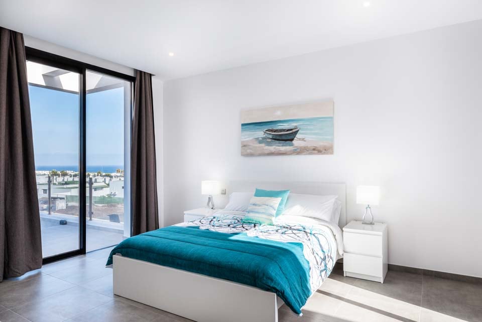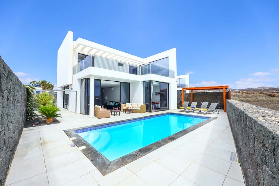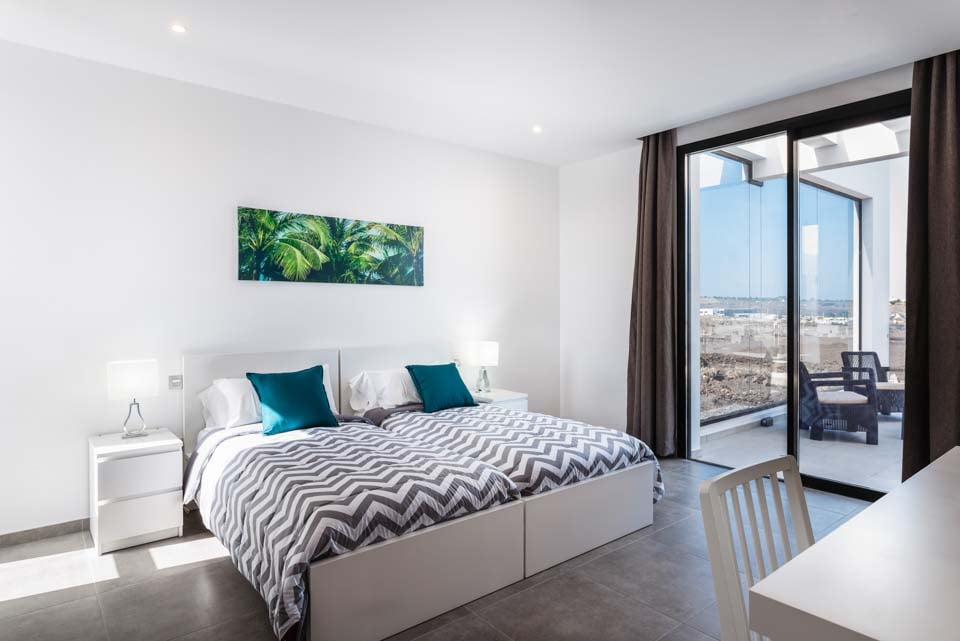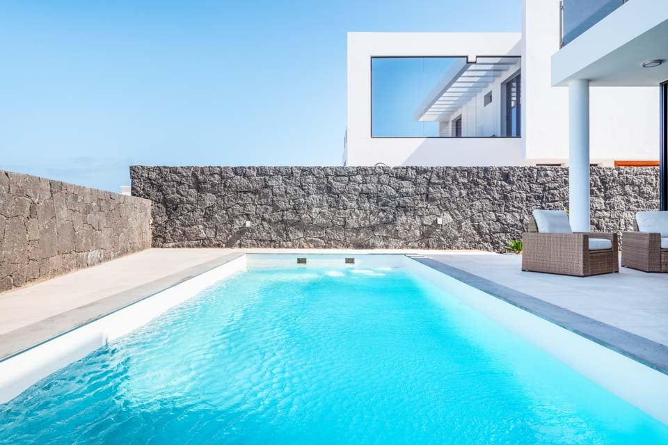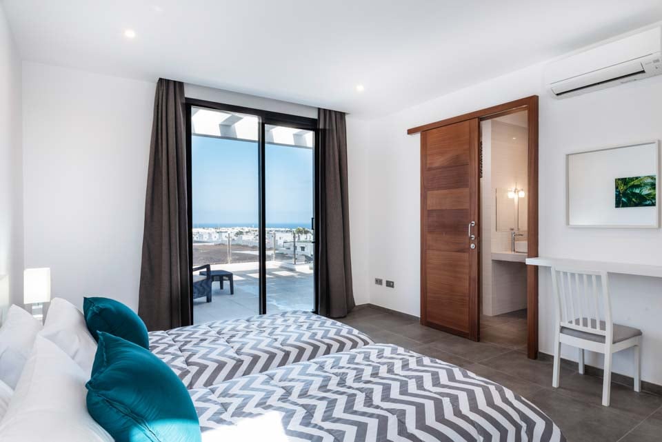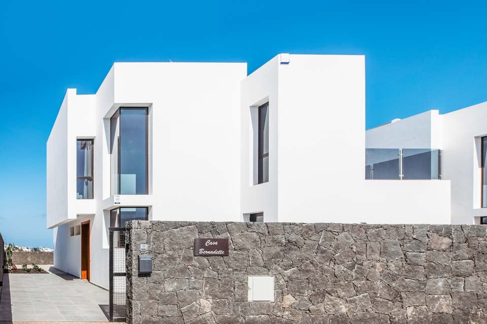 Yksityisellä lämmitetyllä* uima-altaalla varustettu Villa Bernadette tarjoaa ihanteellisen terassin ulkona vietettäviin päiviin. Nauti auringosta lepotuolissa tai mukavassa sohvassa hyvän kirjan parissa. Tämä aidattu terassi vulkaanisten kiviseinien ympäröimänä tarjoaa näkymät maalaismaisemaan sekä kaukaisiin vuoristo- ja merimaisemiin. Ulkona ruokailua varten on ulkoruokailuryhmä, jota varjostaa aurinkovarjo, ja grilli, jolla voi nauttia kulinaarisia herkkuja. Lattiasta kattoon ulottuvat lasiovet johtavat terassilta sisälle, jossa sinua tervehtii moderni ja tyylikäs avoin olohuone-keittiö. Tässä tilavassa huoneessa on valkoiseksi kalkitut seinät, mustavalkoinen värimaailma, viileä ilmastointi ja modernit kalusteet. Pohjakerroksessa on myös makuuhuone numero yksi, kahden hengen huone, josta on lasiovet terassille ja oma suihku. Ensimmäisestä kerroksessa on kaksi muuta makuuhuonetta, yksi kahden hengen huone ja yksi kahden hengen huone, joissa molemmissa on oma kylpyhuone.