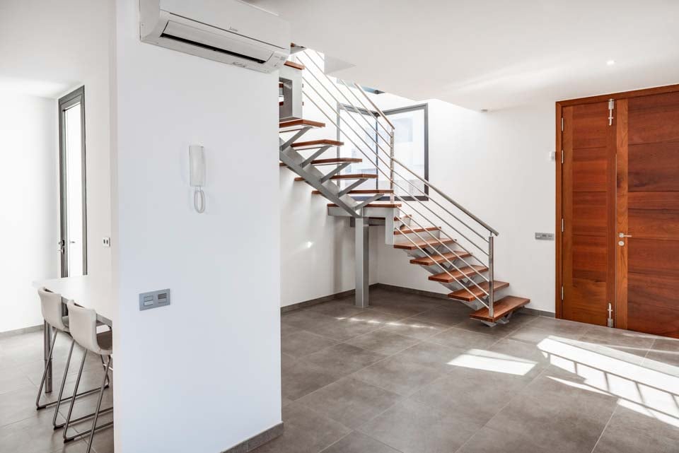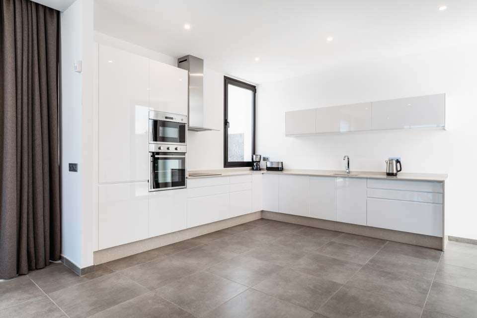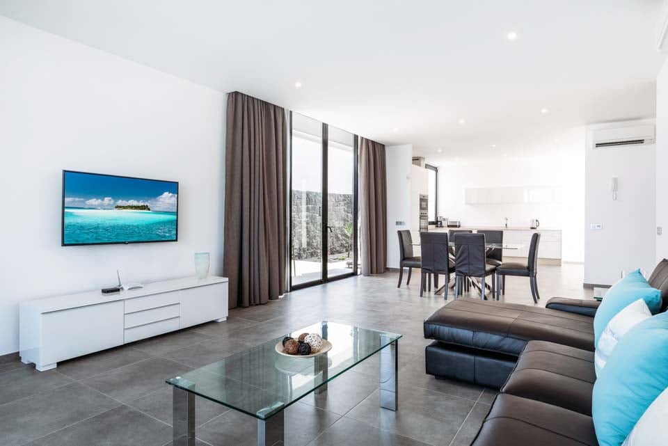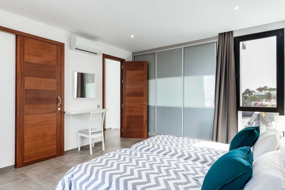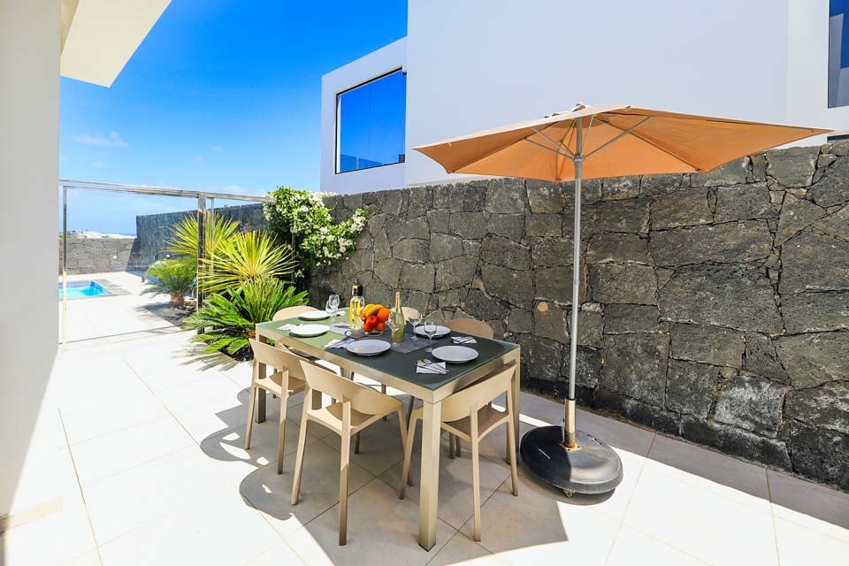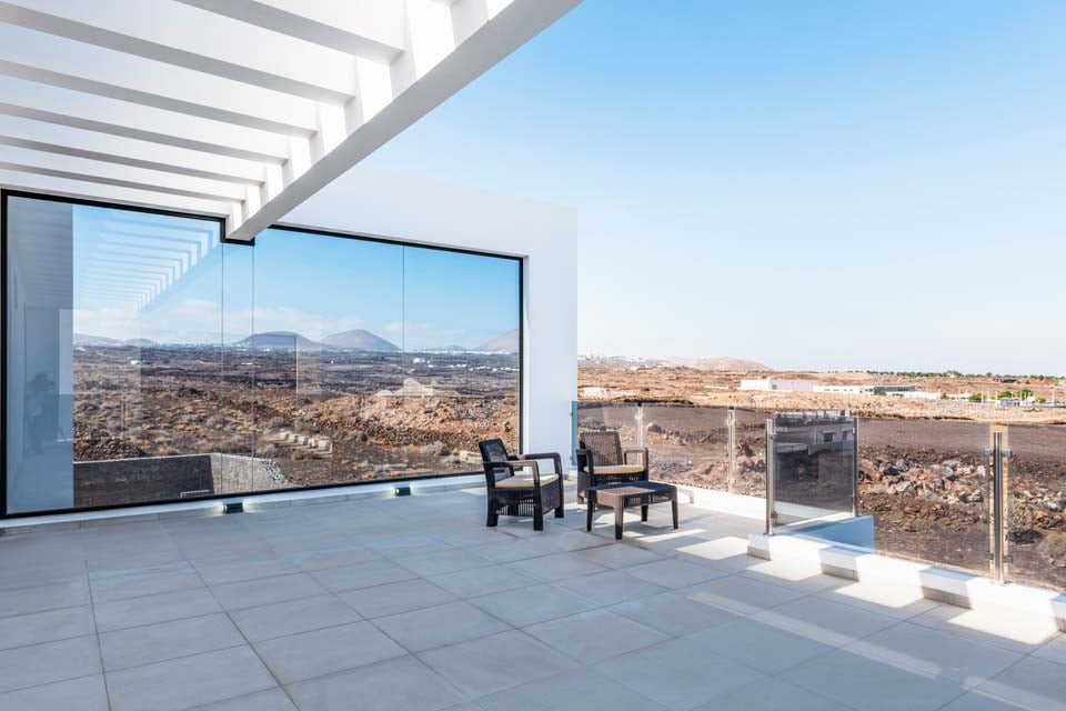 Yksityisellä lämmitetyllä* uima-altaalla varustettu Villa Bernadette tarjoaa ihanteellisen terassin ulkona vietettäviin päiviin. Nauti auringosta lepotuolissa tai mukavassa sohvassa hyvän kirjan parissa. Tämä aidattu terassi vulkaanisten kiviseinien ympäröimänä tarjoaa näkymät maalaismaisemaan sekä kaukaisiin vuoristo- ja merimaisemiin. Ulkona ruokailua varten on ulkoruokailuryhmä, jota varjostaa aurinkovarjo, ja grilli, jolla voi nauttia kulinaarisia herkkuja. Lattiasta kattoon ulottuvat lasiovet johtavat terassilta sisälle, jossa sinua tervehtii moderni ja tyylikäs avoin olohuone-keittiö. Tässä tilavassa huoneessa on valkoiseksi kalkitut seinät, mustavalkoinen värimaailma, viileä ilmastointi ja modernit kalusteet. Pohjakerroksessa on myös makuuhuone numero yksi, kahden hengen huone, josta on lasiovet terassille ja oma suihku. Ensimmäisestä kerroksessa on kaksi muuta makuuhuonetta, yksi kahden hengen huone ja yksi kahden hengen huone, joissa molemmissa on oma kylpyhuone.