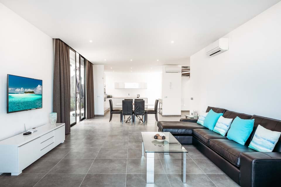 Mukava oleskelualue, ilmastointi, älytelevisio, ruokailutilat, avoin pohjaratkaisu, terassiovet