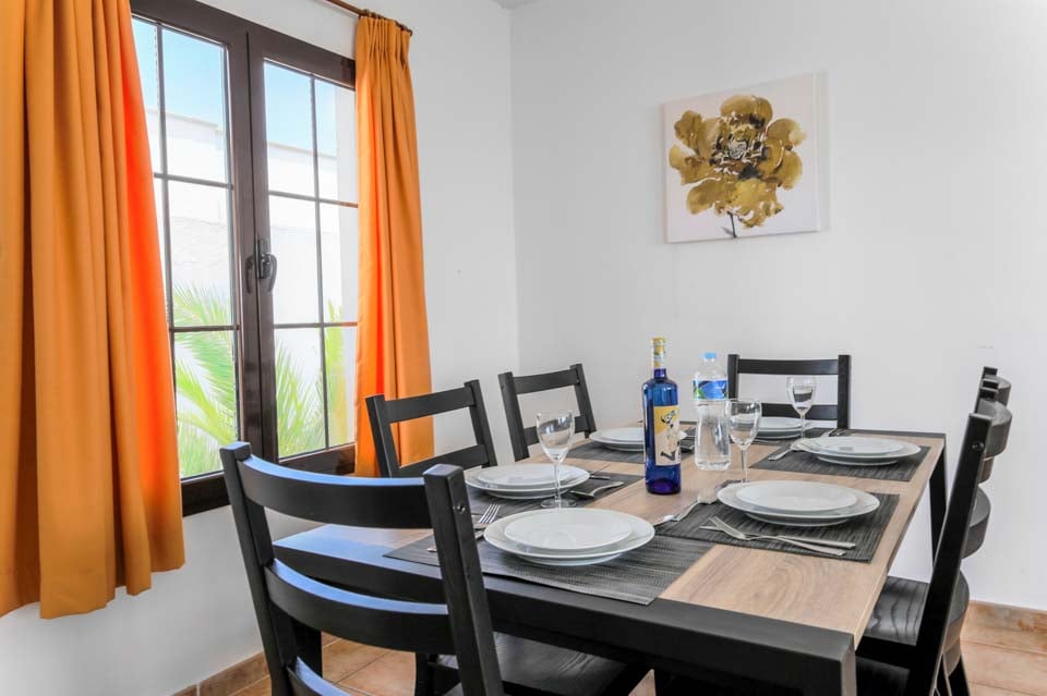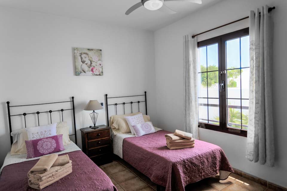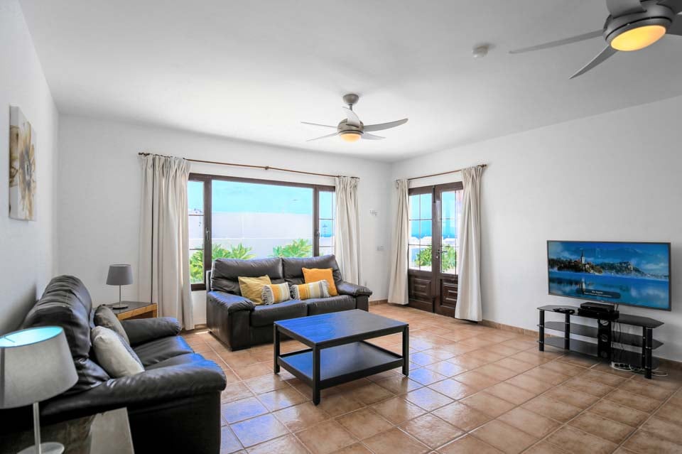 Villa Cherin sisätilat on sisustettu tyylikkäästi kauttaaltaan, ja niissä on kaikki tarvittavat mukavuudet. Huvila on suunniteltu kokonaan yhteen tasoon, joten liikkuminen huoneiden ja ulkoalueiden välillä on helppoa – huvila sopii erityisesti liikuntarajoitteisille. Päämakuuhuoneessa on oma kylpyhuone, ja kaksi muuta kahden hengen huonetta jakavat toisen suihkuhuoneen. Siellä on suuri olohuone, jossa on ruokailutila ja kaksi mukavaa sohvaa sekä suuri televisio, josta näkyy useita kanavia, kuten BBC1, 2, 3, ITV ja CH4. Huvilassa on myös ilmainen WiFi kaikissa tiloissa niille, jotka haluavat käyttää sosiaalista mediaa. Oleskelutila avautuu pergola-terassille, jossa on ylimääräinen ruokapöytä ja tuolit, merinäköala ja oma uima-allas, jota ympäröi täysin suljettu yksityinen puutarha, uima-allasterassi ja grilli – täydellinen paikka viihdyttää juhlia ulkona kuuman Kanariansaarten auringon paahteessa.