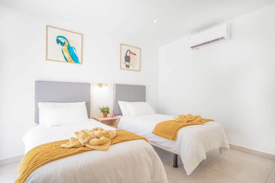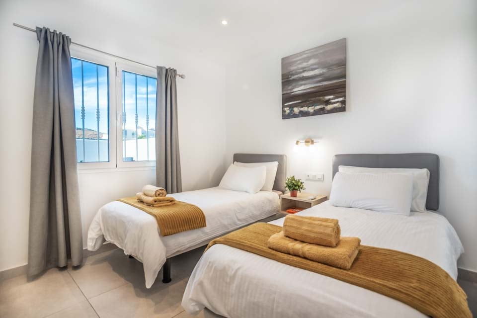 Mi Deseo koostuu päärakennuksesta ja sivurakennuksesta, johon on ulkokäynti. Lisärakennuksessa on kaksi makuuhuonetta, yksi parivuoteella varustettu huone ja yksi kahden hengen huone kahdella erillisellä vuoteella. Molemmissa on yhteinen erillinen suihkuhuone. Siellä on myös keittiö/oleskelutila, jossa on pyöreä ruokapöytä, mukava sohva ja ovet yhdelle terasseista. Tämä lisärakennus tekee Mi Deseosta ihanteellisen suuremmille perheille ja luo vetäytymispaikan niille, jotka haluavat hieman omaa rauhaa lomallaan. Päärakennus on aivan yhtä vaikuttava, ja siinä on tilava olohuone/ruokailutila ja tilava tyylikäs keittiö, kaikki pohjakerroksessa. Tällä tasolla on myös kaksi makuuhuonetta, yksi parivuoteella ja yksi erillisillä vuoteilla, jotka molemmat jakavat erillisen suihkutilan. Ensimmäisestä kerroksessa on kaksi muuta makuuhuonetta, yksi kahden hengen huone ja yksi kahden hengen huone. Molemmissa on yhteinen erillinen suihkuhuone.
