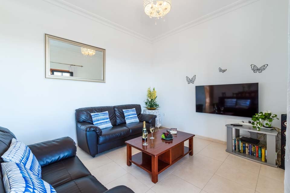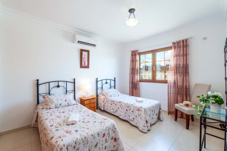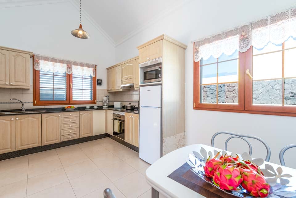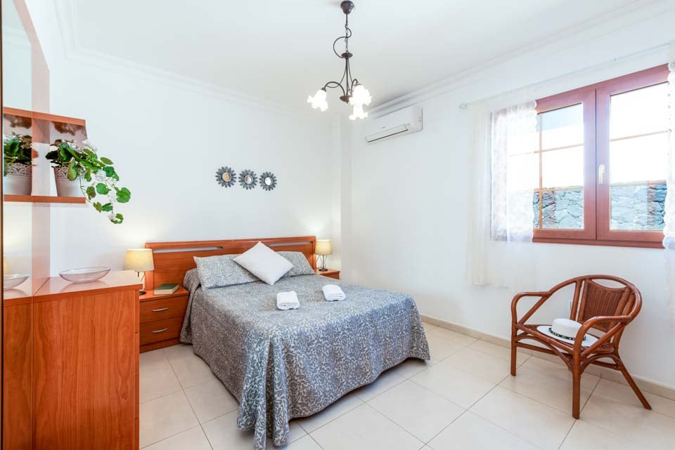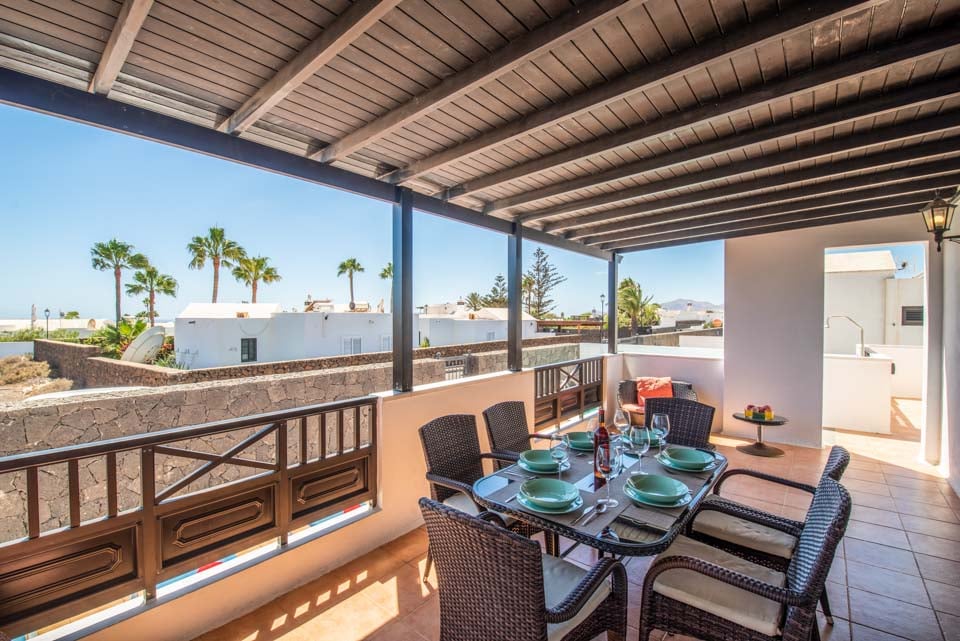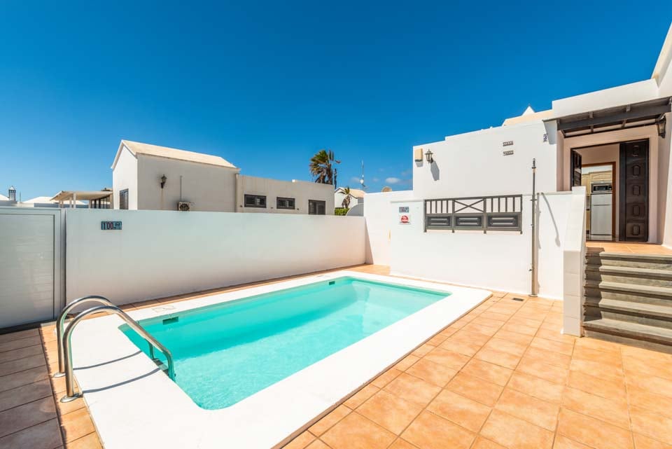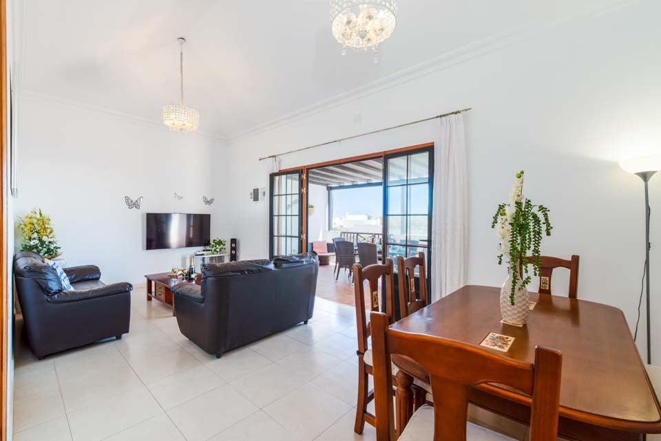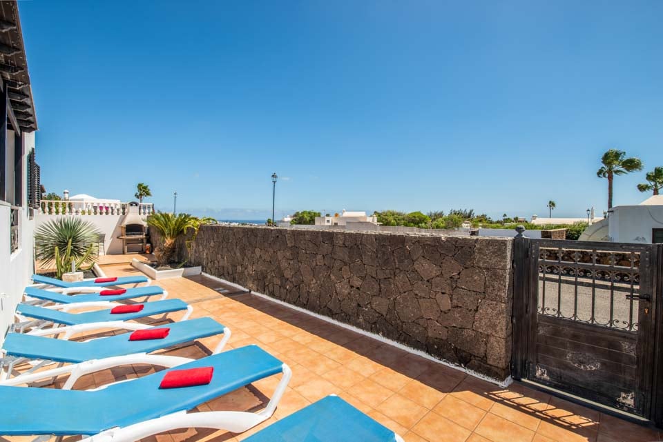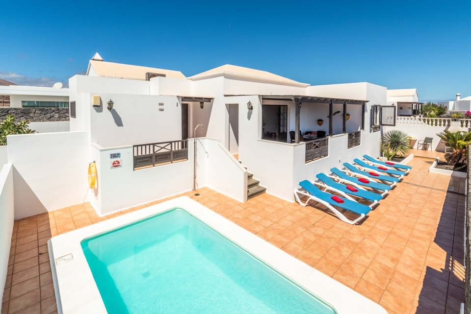 Villa Nancy sijaitsee Lanzaroten vaikuttavan Los Mojonesin alueen laidalla Puerto del Carmenin lomakohteessa. Hidas 15 minuutin kävelymatka vie sinut lomakeskuksen sydämeen, jossa on vilkkaita baareja, matkamuistomyymälöitä ja ihania rantoja vain kivenheiton päässä. Tämä pitkään toiminut lomakeskus sijaitsee saaren eteläisessä keskiosassa, vain 10 minuutin ajomatkan päässä Arrecifen lentokentältä, joten Villa Nancy sopii kätevästi niille, jotka eivät halua matkustaa kauas. Kuten monet lomakohteet, Puerto del Carmen oli alun perin pieni kalastajakylä. Satama on edelleen keskellä kauniita veneitä ja erinomaisia tuoreita mereneläviä tarjoavia ravintoloita. Käännämme huomiomme tähän upeaan huvilaan. Rakastimme ulkona ruokailua, joka sijaitsi puisten palkkien kattaman terassin alla, ja tiilestä rakennettu grilli on ihanteellinen myrskyn ulkoilmatyyliseen ruoanlaittoon. Jos et halua laittaa ruokaa, voit rentoutua yhdellä monista aurinkotuoleista tai pulahtaa uima-altaaseen ja hyödyntää uima-altaan lämmitystä* (ilmainen marraskuusta toukokuuhun). Katetulta terassilta johtavat lasiovet oleskelutilaan, jossa on mukavat istuimet, taulutelevisio, täysikokoinen brittiläinen televisio, DVD-soitin ja ruokapöytä. Olohuoneesta kuljetaan pitkälle käytävälle, josta on käynti kaikkiin muihin huoneisiin. Siellä on täysin varusteltu keittiö, kodinhoitohuone pyykinpesukoneella ja kolme makuuhuonetta. Yhdessä makuuhuoneessa on kaksi erillistä vuodetta ja kahdessa muussa parivuode. Kaikissa on ilmastointi mukavuuttasi varten. Päämakuuhuoneessa on oma kylpyhuone, jossa on kaksi pesuallasta, kun taas erillinen perhekylpyhuone jaetaan kahden muun huoneen kesken.