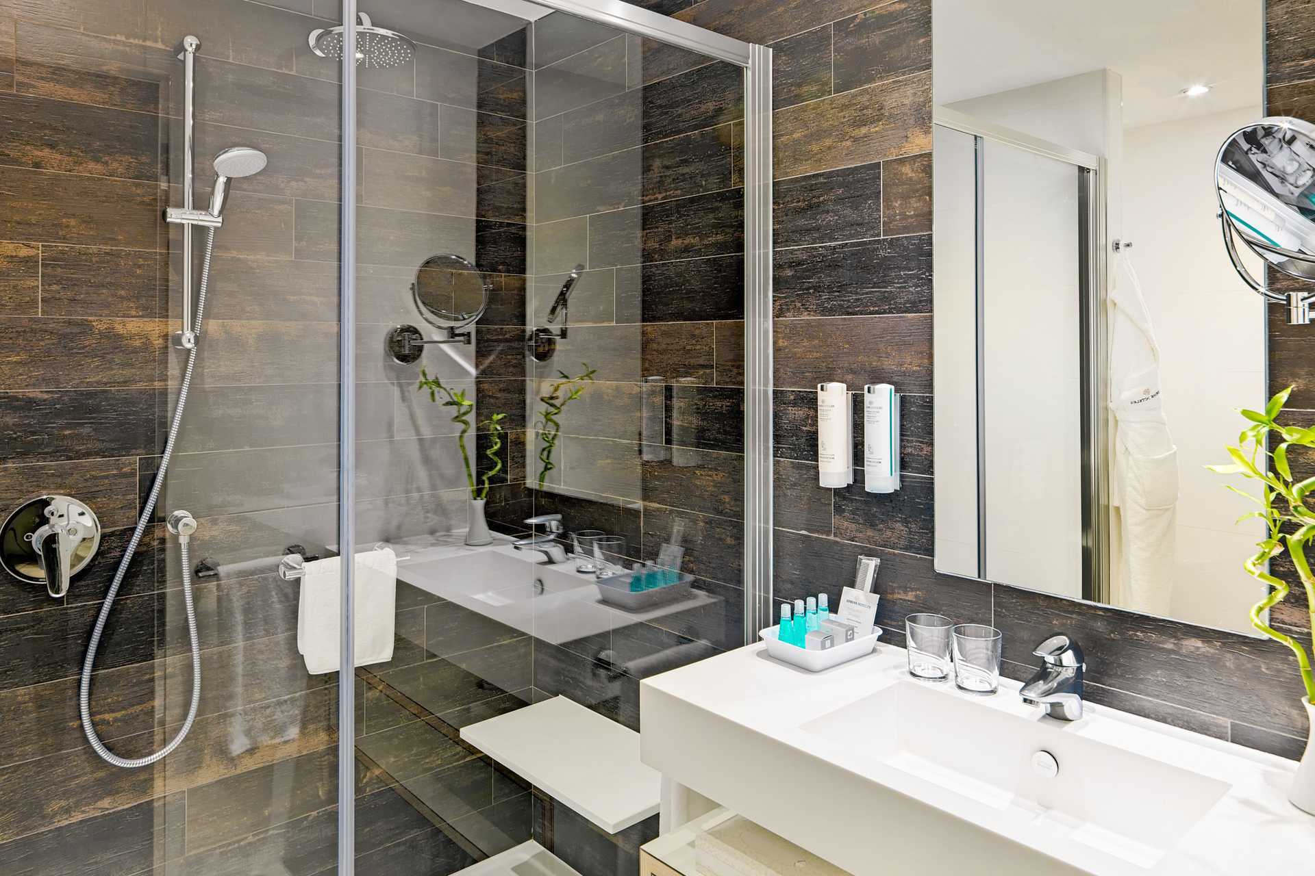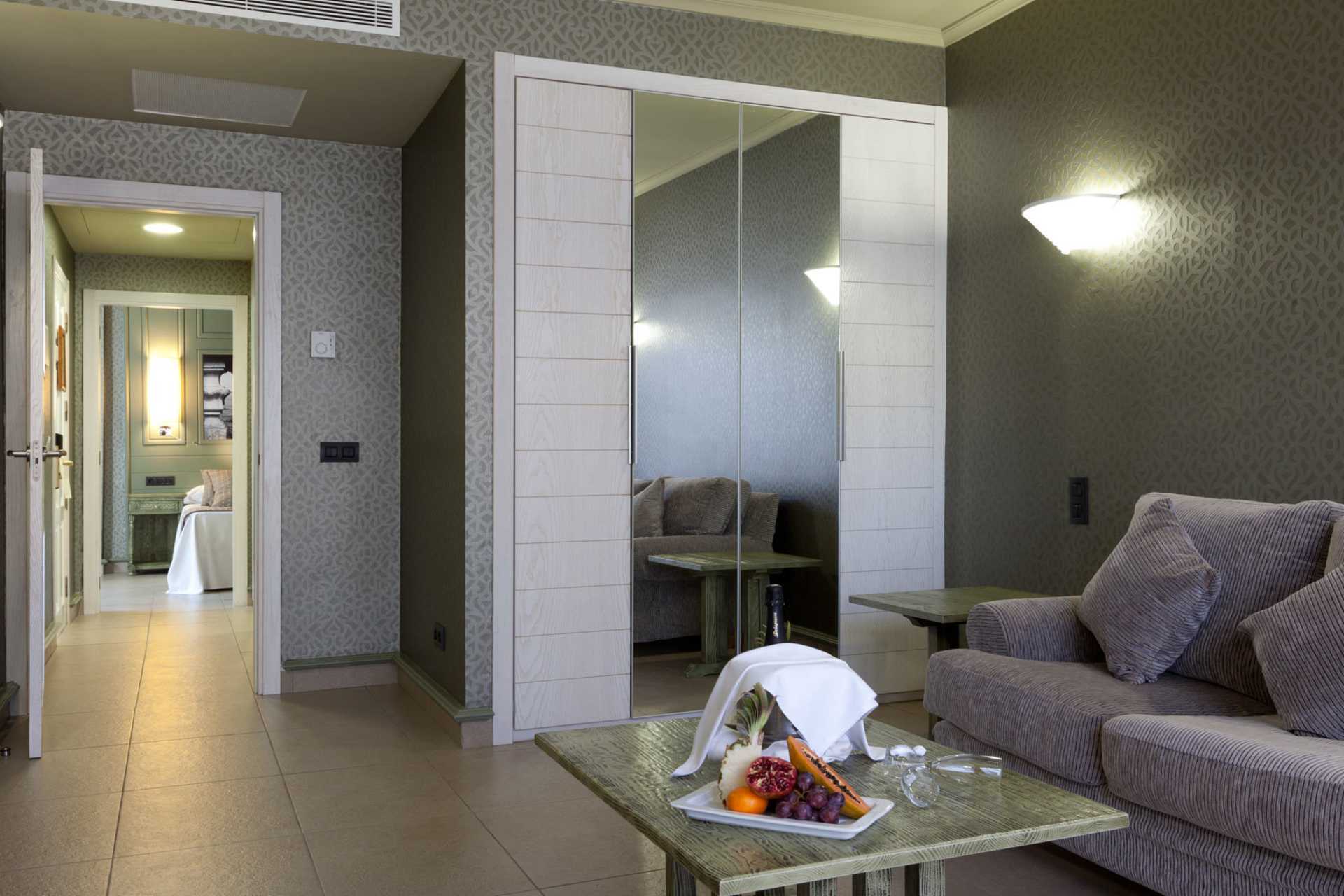 Sviitti, parvekkeella tai terassilla. Sviitit koostuvat makuuhuoneesta ja olohuoneesta. Parivuode tai kaksi yhden hengen sänkyä. Maksuton wifi, tallelokero ja ilmastointi. Minibaari. Vedenkeitin, kahvia ja teetä. Kahvikone. Tv kansainvälisillä kanavilla. Kylpytakki ja tohvelit. Hiustenkuivain. Kylpyamme, erillinen suihku ja wc. Siivous 7 krt/viikko.