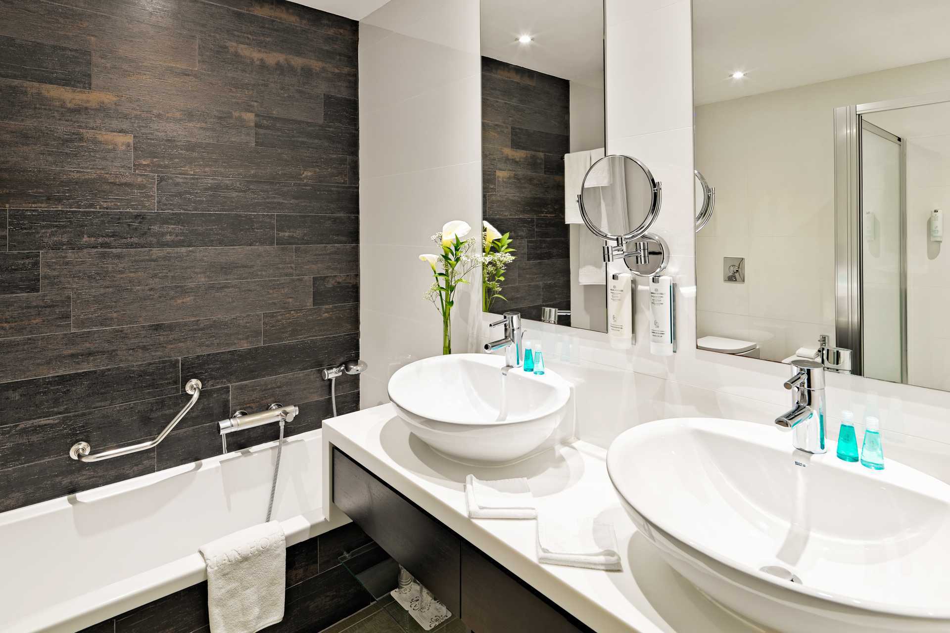 Kahden hengen huone parvekkeella tai terassilla. Yksi sänky. Valitse mieluinen tyyny tyynymenusta. Maksuton wifi, ilmastointi ja tallelokero. Minibaari. Vedenkeitin, kahvia ja teetä. Kahvinkeitin. Tv kansainvälisillä kanavilla. Kylpytakit ja tossut. Hiustenkuivain. Kylpyhuoneessa kylpyamme, suihku ja wc. Siivous 7 krt/viikko.