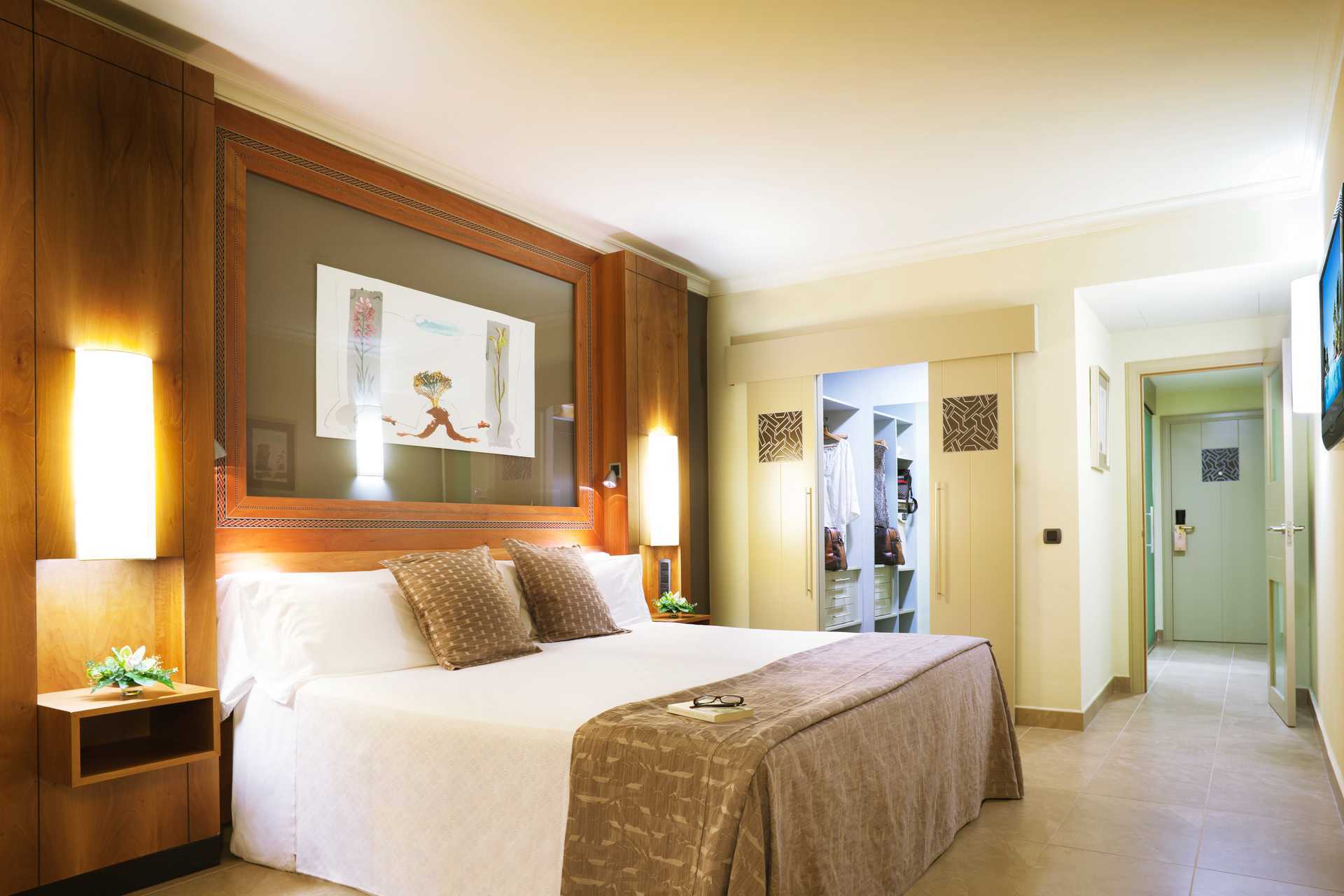Kahden hengen huone parvekkeella tai terassilla, joista osasta on näkymät allasalueelle tai puutarhaan. Parivuode tai kaksi yhden hengen sänkyä. Tyynymenu. Maksuton wifi, ilmastointi ja tallelokero. Minibaari. Vedenkeitin, kahvia ja teetä. Kahvinkeitin. Tv kansainvälisillä kanavilla. Kylpytakit ja tossut. Hiustenkuivain. Kylpyhuoneessa kylpyamme, suihku ja wc. Siivous 7 krt/viikko.