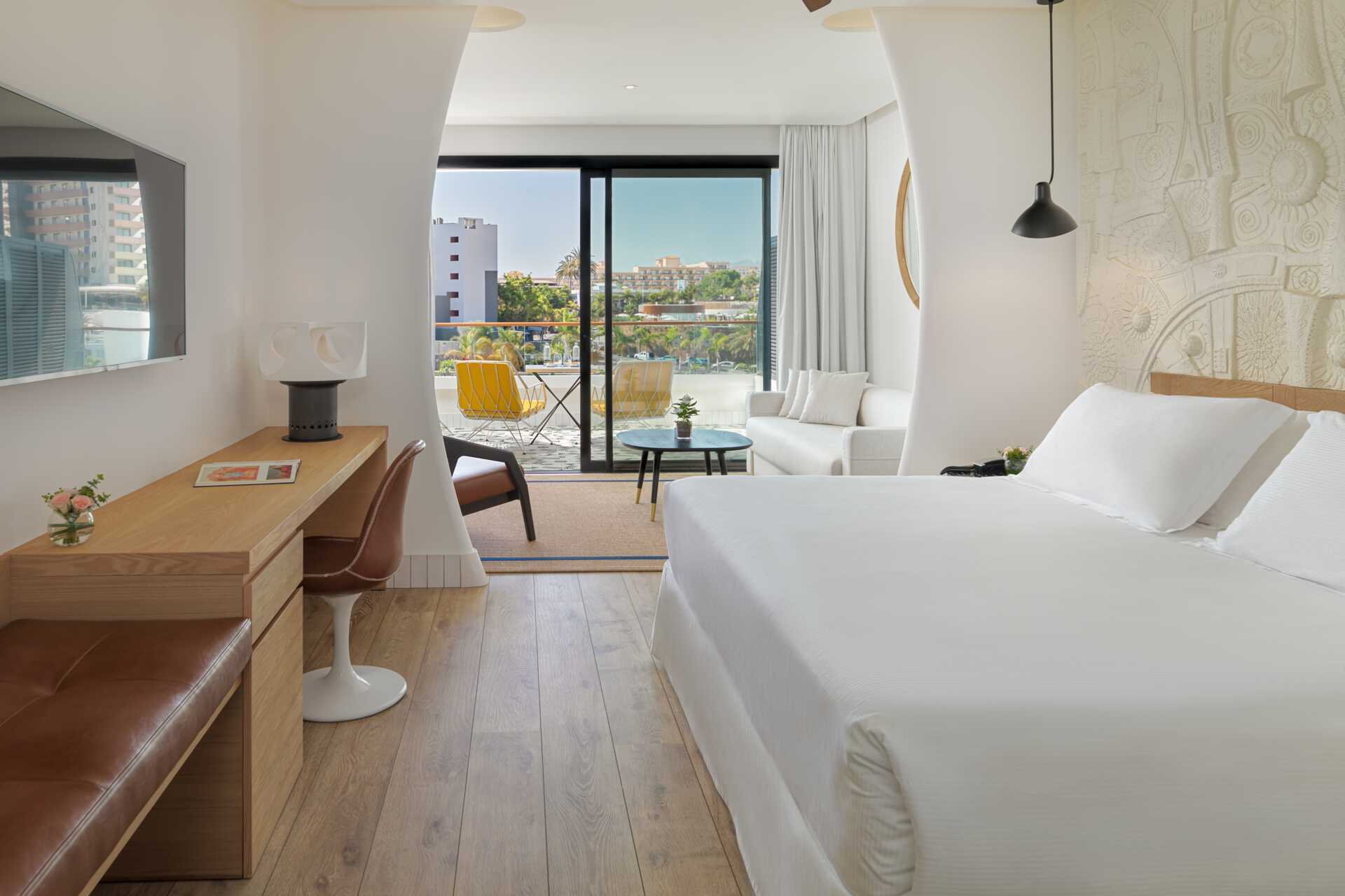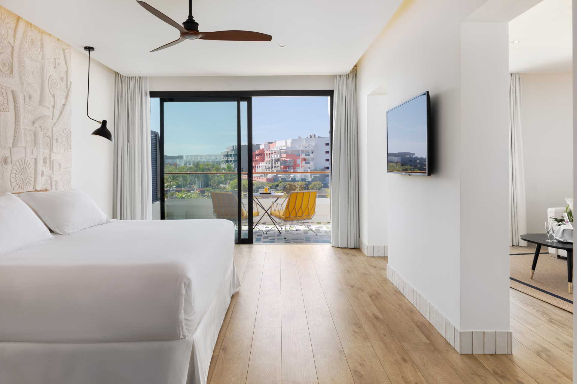 Juniorsviitissä on parveke ja on yhtä avointa tilaa, jossa on makuuhuone ja olohuone. Parivuode tai kaksi erillistä sänkyä. Lisävuodemahdollisuus vuodesohvaan. Maksuton wifi, ilmastointi ja tallelokero. Kattotuuletin. Minibaari - täytetään joka toinen päivä. Nespresso-keitin - kapselit mukana ja täytetään päivittäin. Vedenkeitin. Tv kansainvälisillä kanavilla ja Chromecast. Kylpytakit ja tossut. Hiustenkuivain. Kylpyhuoneessa suihku ja wc. Siivous 5 krt/viikko.