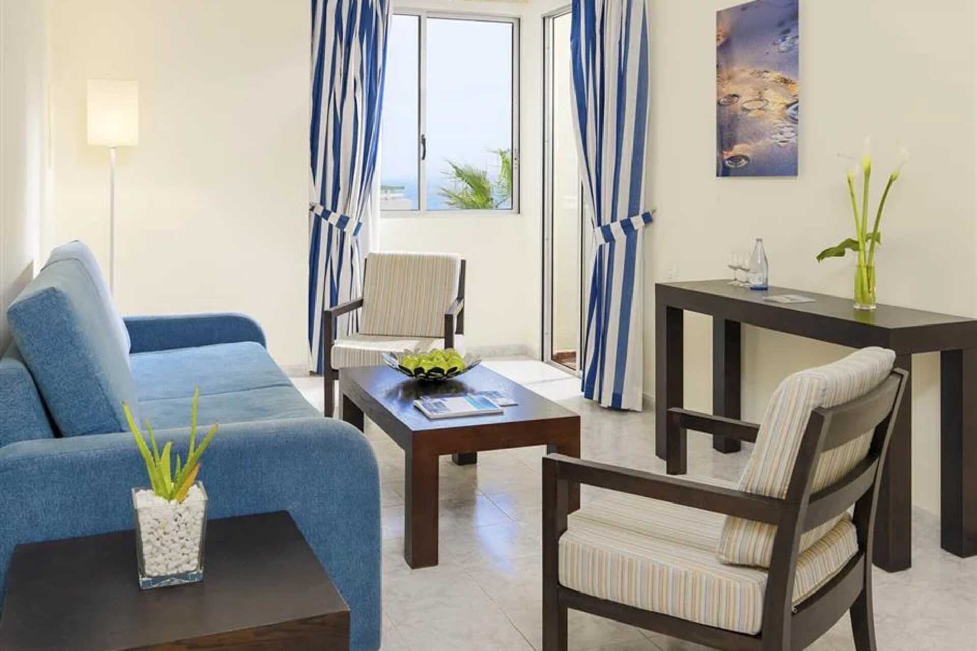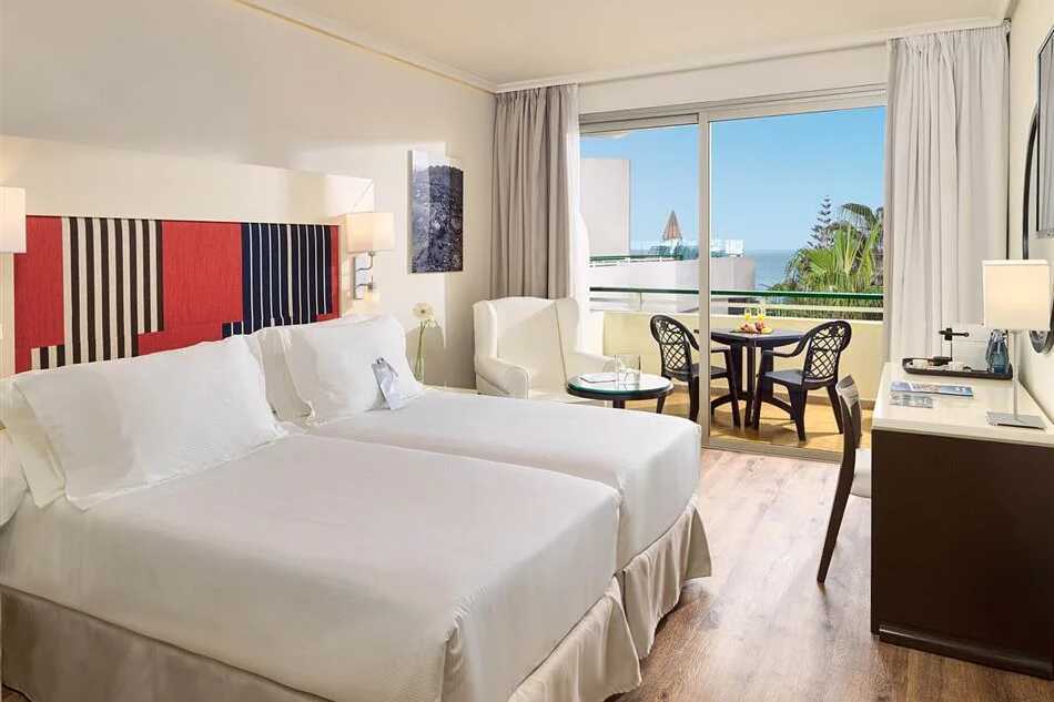 Deluxe-huone parvekkeella ja merinäköalalla. Huone on privilege -huone, jossa on lisäetuja. Parivuode tai kaksi yhden hengen sänkyä. Tyynymenu. Maksuton wifi, ilmastointi ja tallelokero. Minibaari – alkoholittomat juomat sisältyvät hintaan saapumisen yhteydessä, täyttö lisämaksusta. Vedenkeitin ja tallelokero lisämaksulla. Kahvinkeitin kapseleilla. Tv kansainvälisillä kanavilla. Kylpytakit ja tossut. Allaspyyhkeet. Hiustenkuivain. Kylpyhuoneessa suihku ja wc. Siivous 5 krt/viikko.