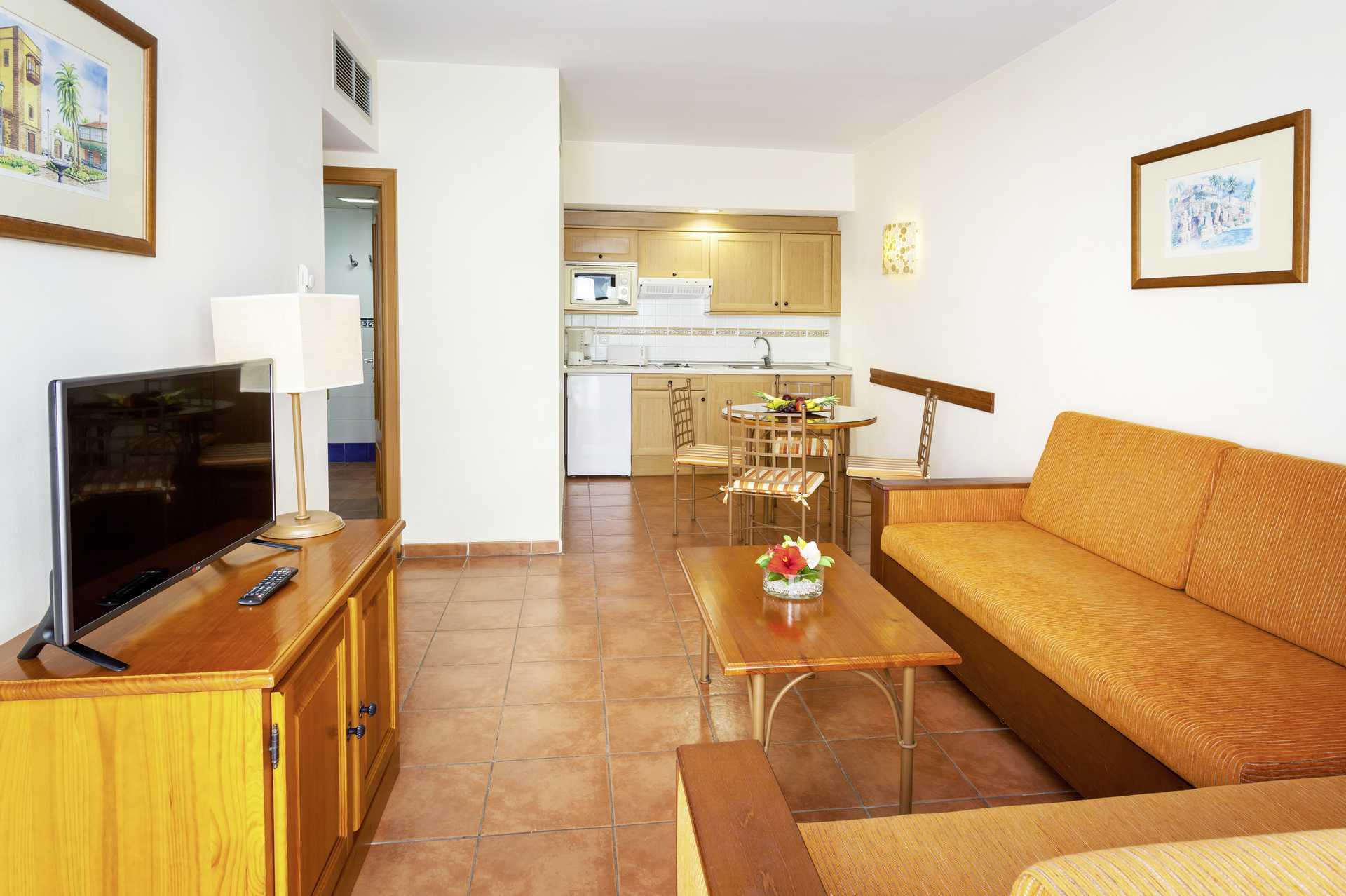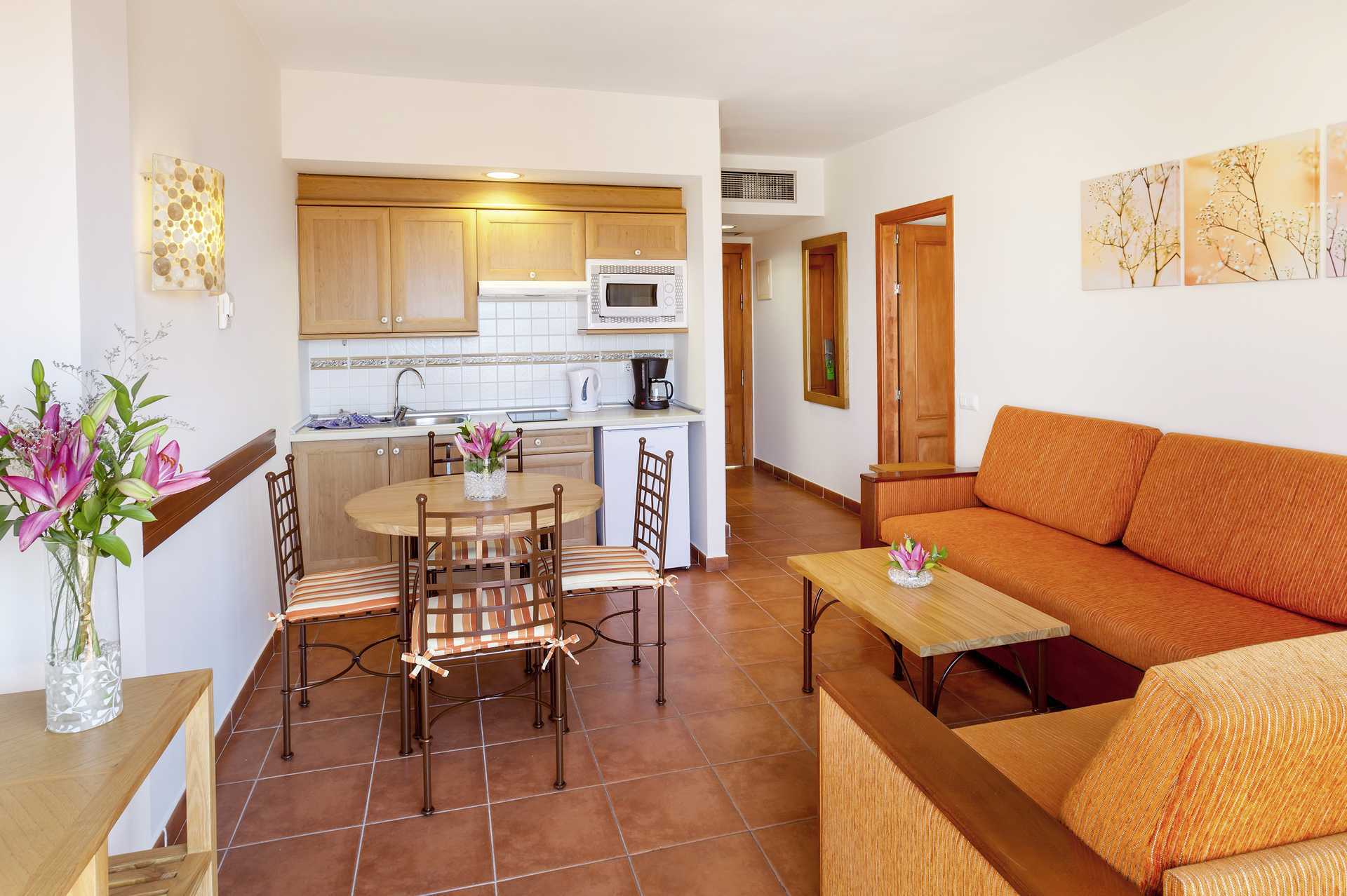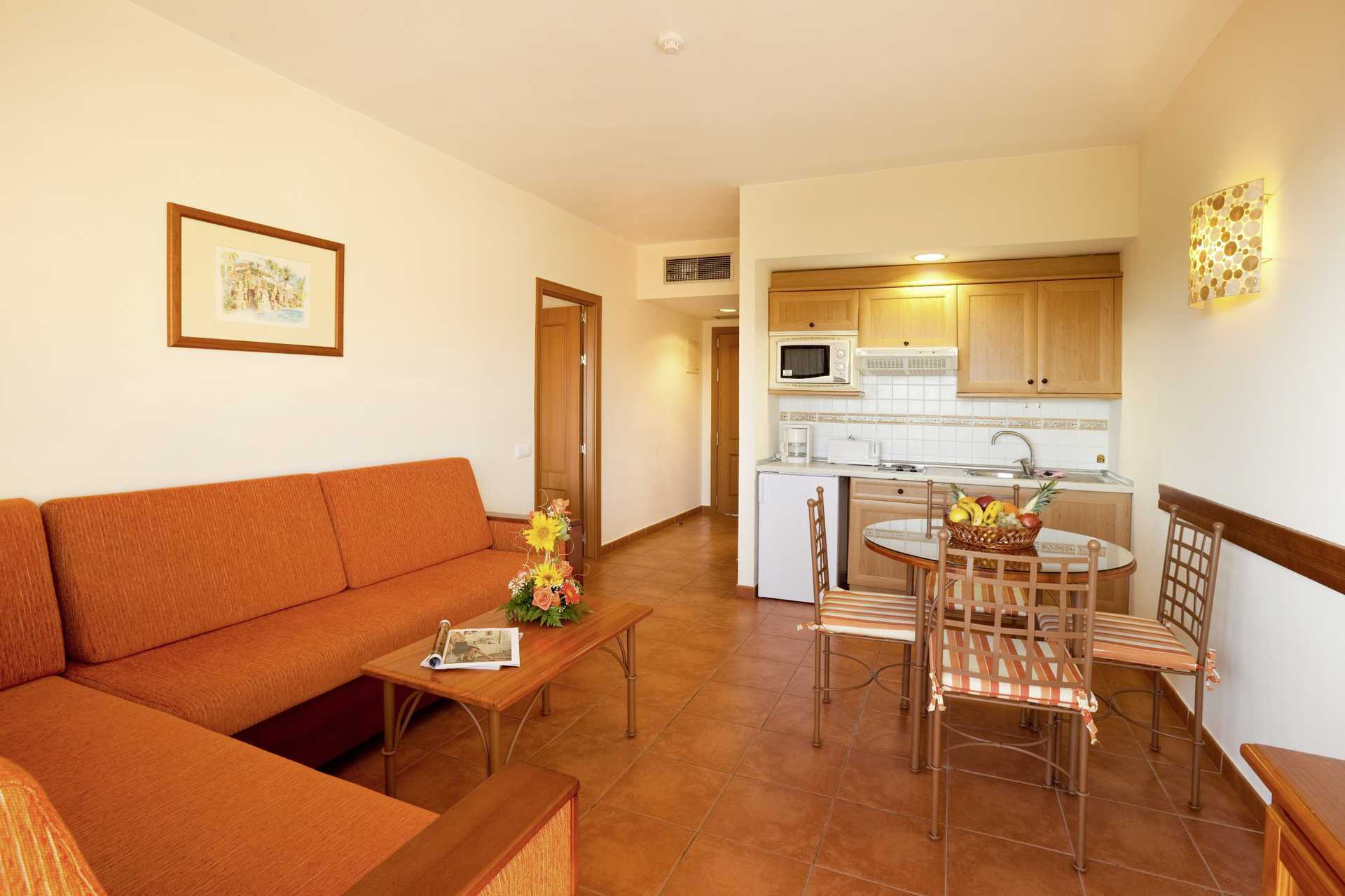 Kaksioita, joissa on parveke tai terassi. Erillinen makuuhuone ja yhdistetty olohuone ja minikeittiö. Olohuoneessa mahdollisuus lisävuoteeseen huonesohvasta. Kaikissa huoneistoissa on keittolevyt, jääkaappi, mikro, kahvinkeitin, leivänpaahdin ja yksinkertainen keittovarustus. Maksuton wifi ja ilmastointi. Tallelokero lisämaksusta. Hiustenkuivain. Tv kansainvälisillä kanavilla. Kylpyhuone ammeella ja wc:llä. Siivous 7 krt/viikko.