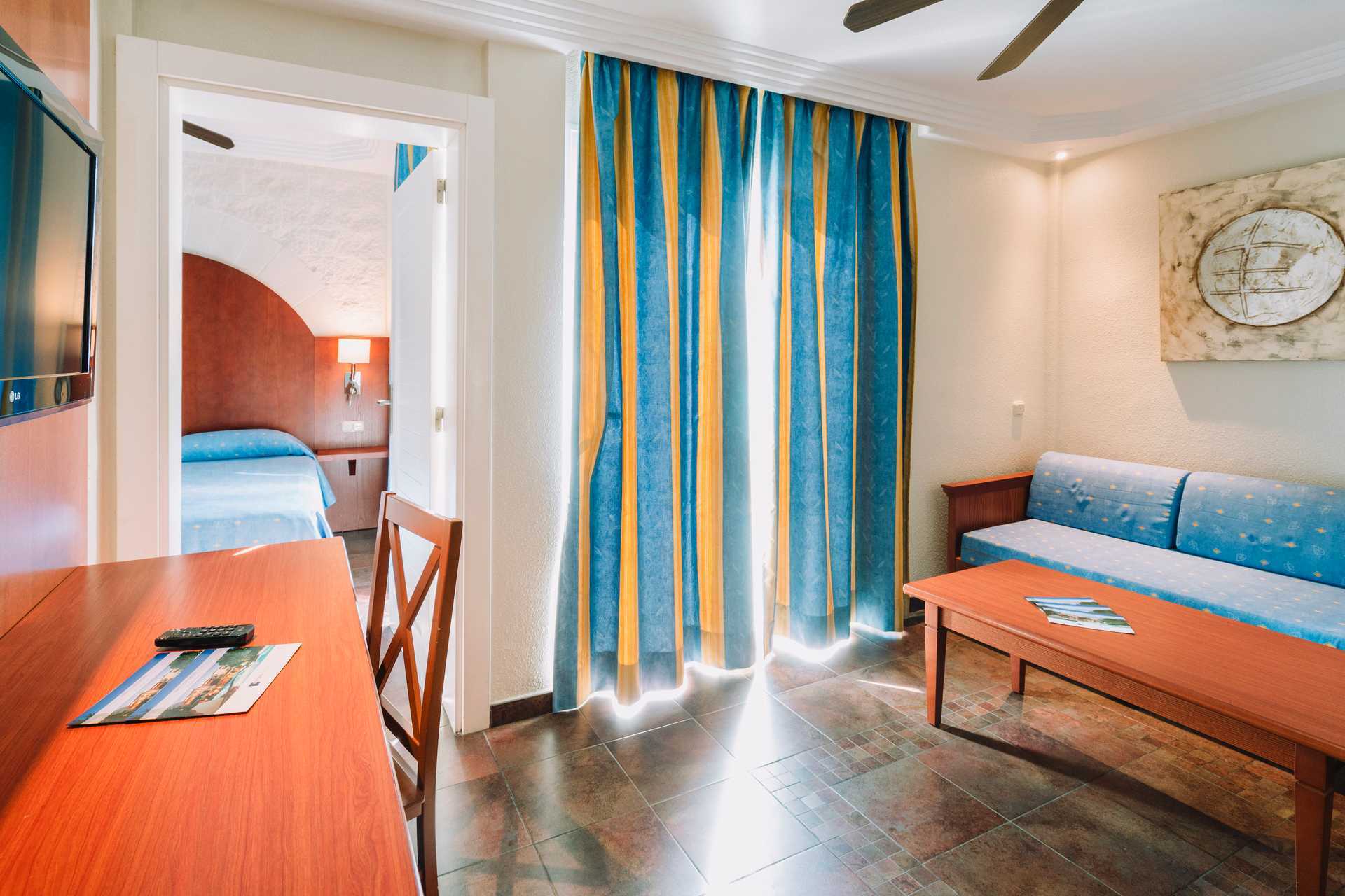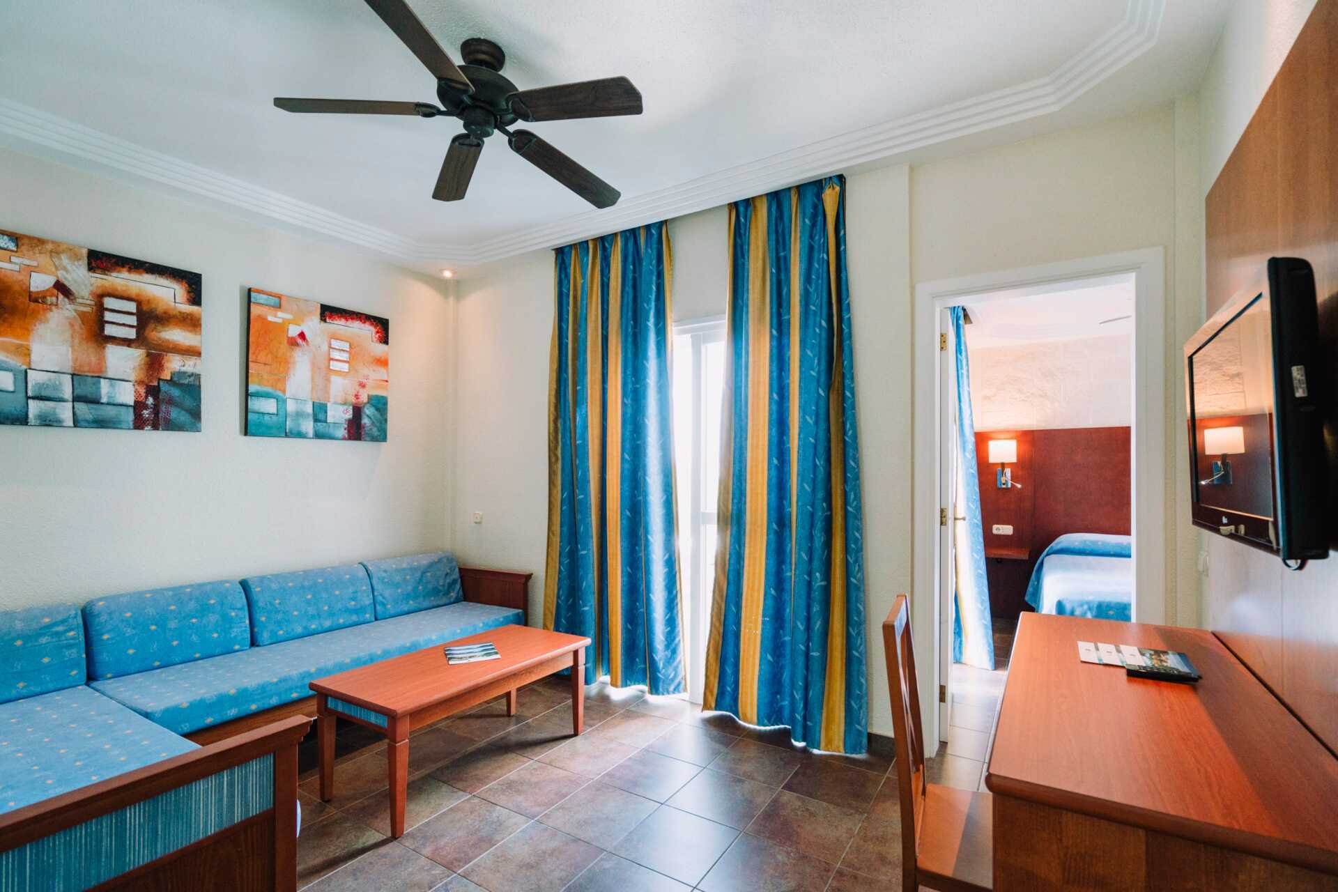 Kahden hengen huoneita, joissa on parveke tai terassi. Kahden hengen huoneet koostuvat makuuhuoneesta ja olohuoneesta. Kaksi yhden hengen vuodetta. Lisävuodemahdollisuus vuodesohvasta. Maksuton wifi. Tallelokero lisämaksusta. Kattotuuletin. Jääkaappi. Tv kansainvälisillä kanavilla. Hiustenkuivain. Suihku ja wc. Siivous 7 krt/viikko. Alle 2-vuotiaat lapset katsotaan lisävuoteessa majoittuviksi henkilöiksi.