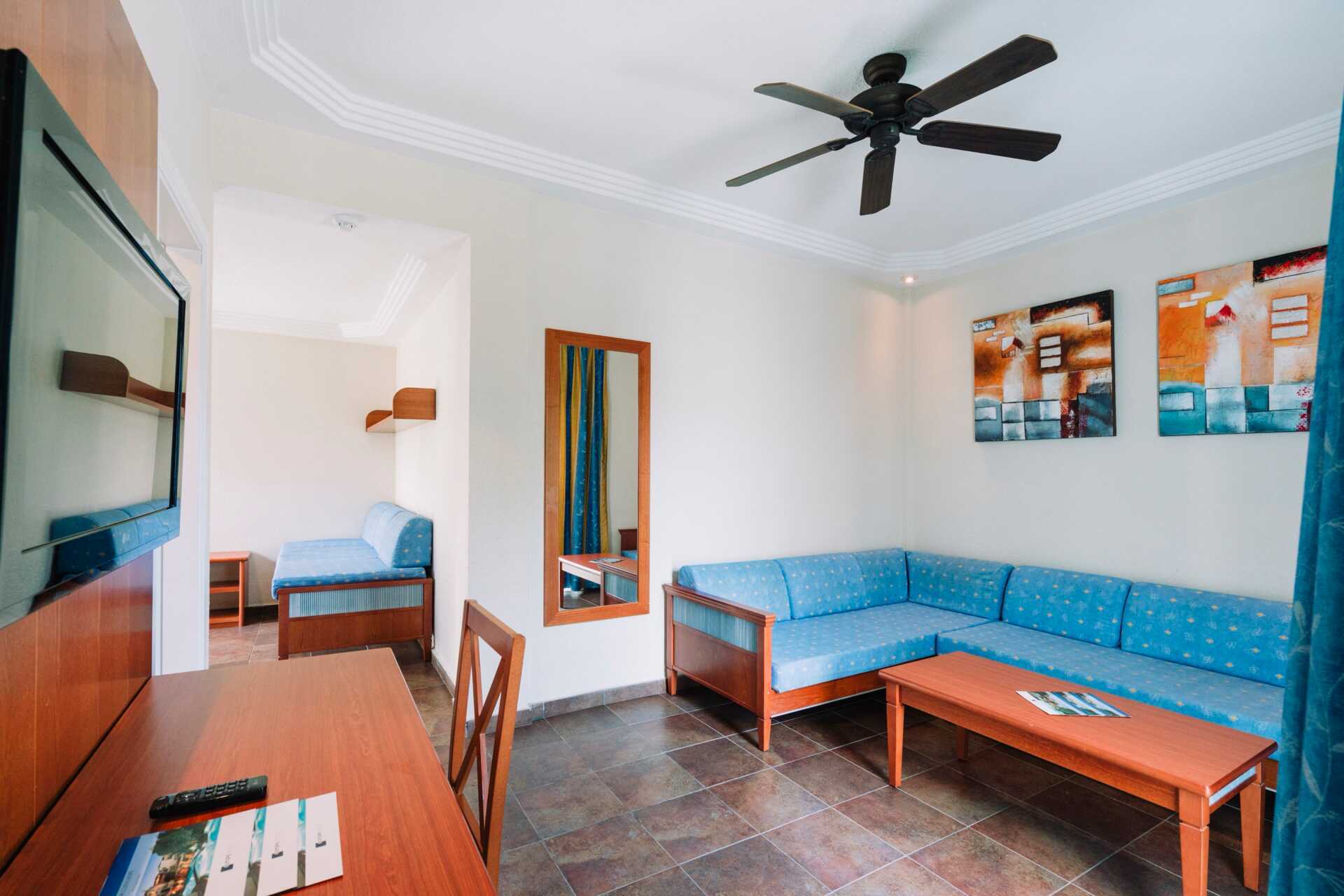 Perhehuoneita, joissa on parveke tai terassi. Huoneet koostuvat makuuhuoneesta ja olohuoneesta. Kaksi yhden hengen vuodetta. Lisävuodemahdollisuus kahdesta vuodesohvasta tai kerrossängystä. Maksuton wifi. Tallelokero lisämaksusta. Kattotuuletin. Jääkaappi. Tv kansainvälisillä kanavilla. Hiustenkuivain. Suihku ja wc. Siivous 7 krt/viikko. Alle 2-vuotiaat lapset katsotaan lisävuoteessa majoittuviksi henkilöiksi.