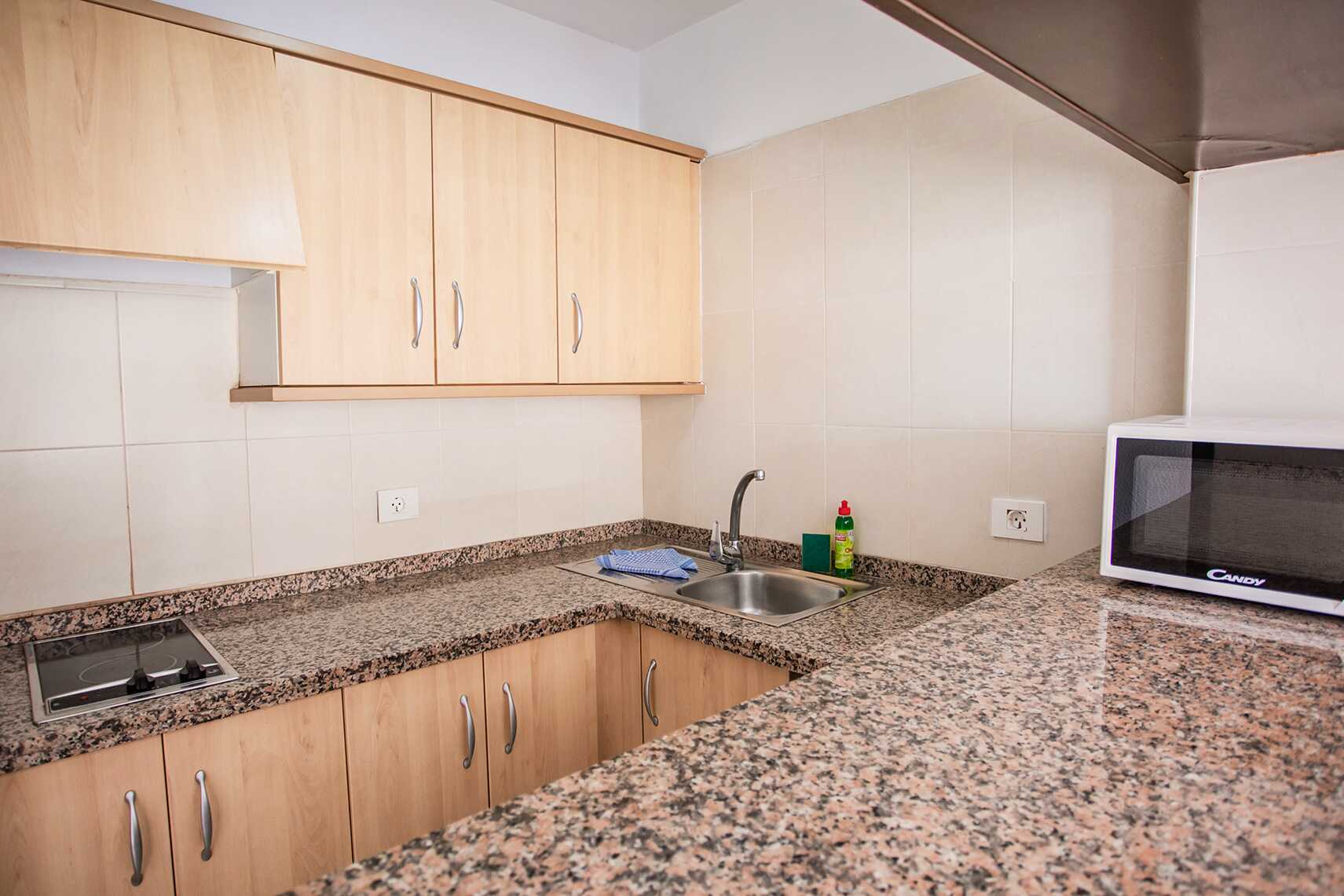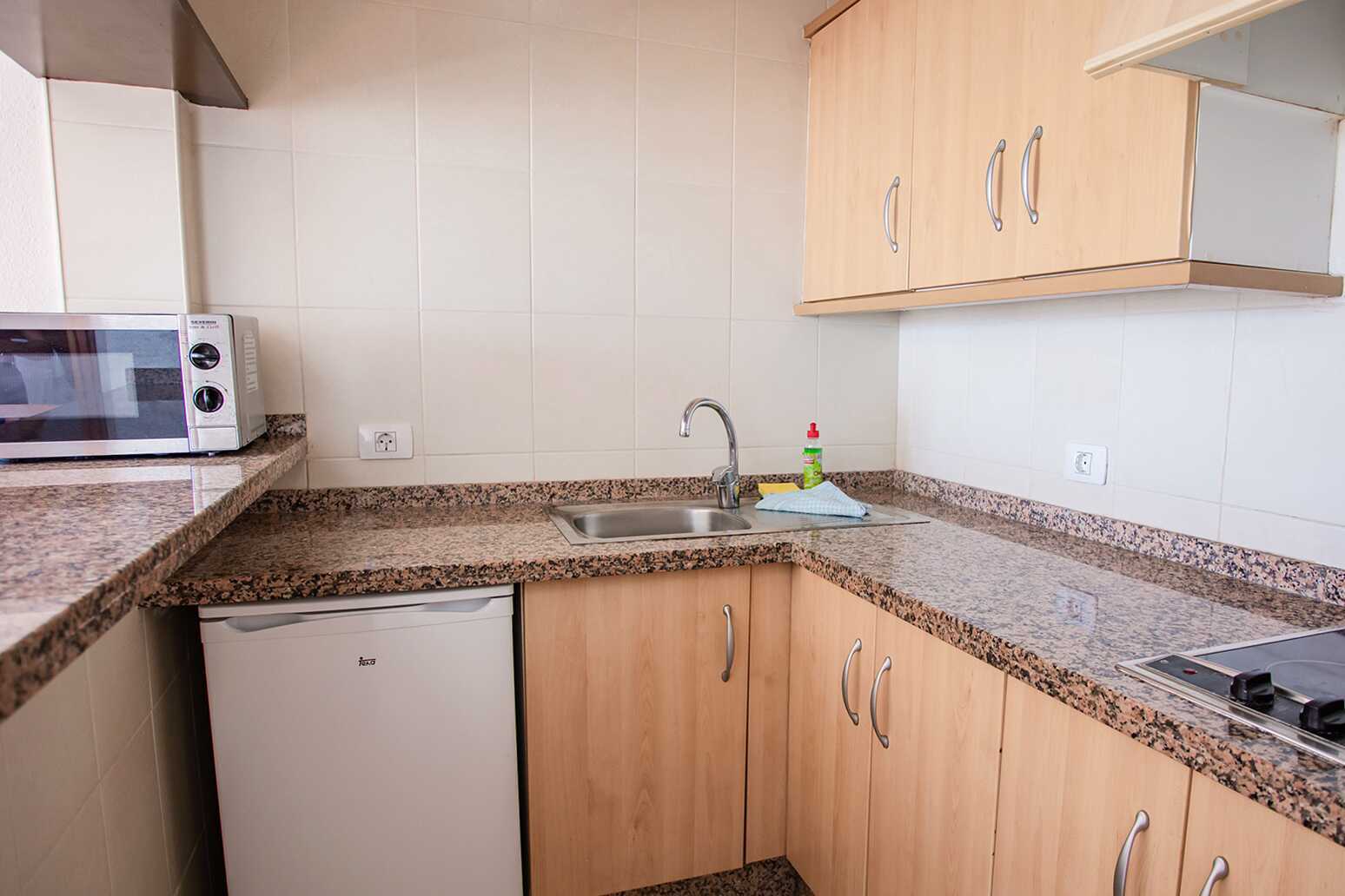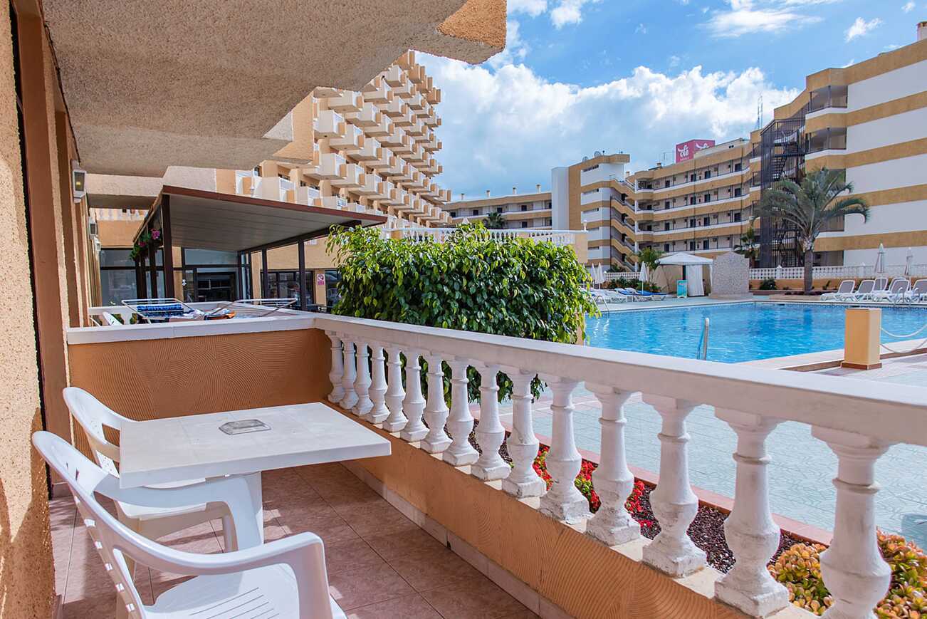 Yksiö maaterassilla ja näköalalla uima-altaalle. Yhdistetty makuuhuone ja olohuone, jossa on minikeittiö. Kaksi yhden hengen sänkyä. Lisävuodemahdollisuus vuodesohvasta. Minikeittiö, jossa keittolevyt, jääkaappi, mikroaaltouuni, vedenkeitin ja peruskeittiölaitteet. Maksuton wifi. Tallelokero lisämaksusta. Tv kansainvälisillä kanavilla. Kylpyhuoneessa suihku ja wc. Siivous 5 krt/viikko.