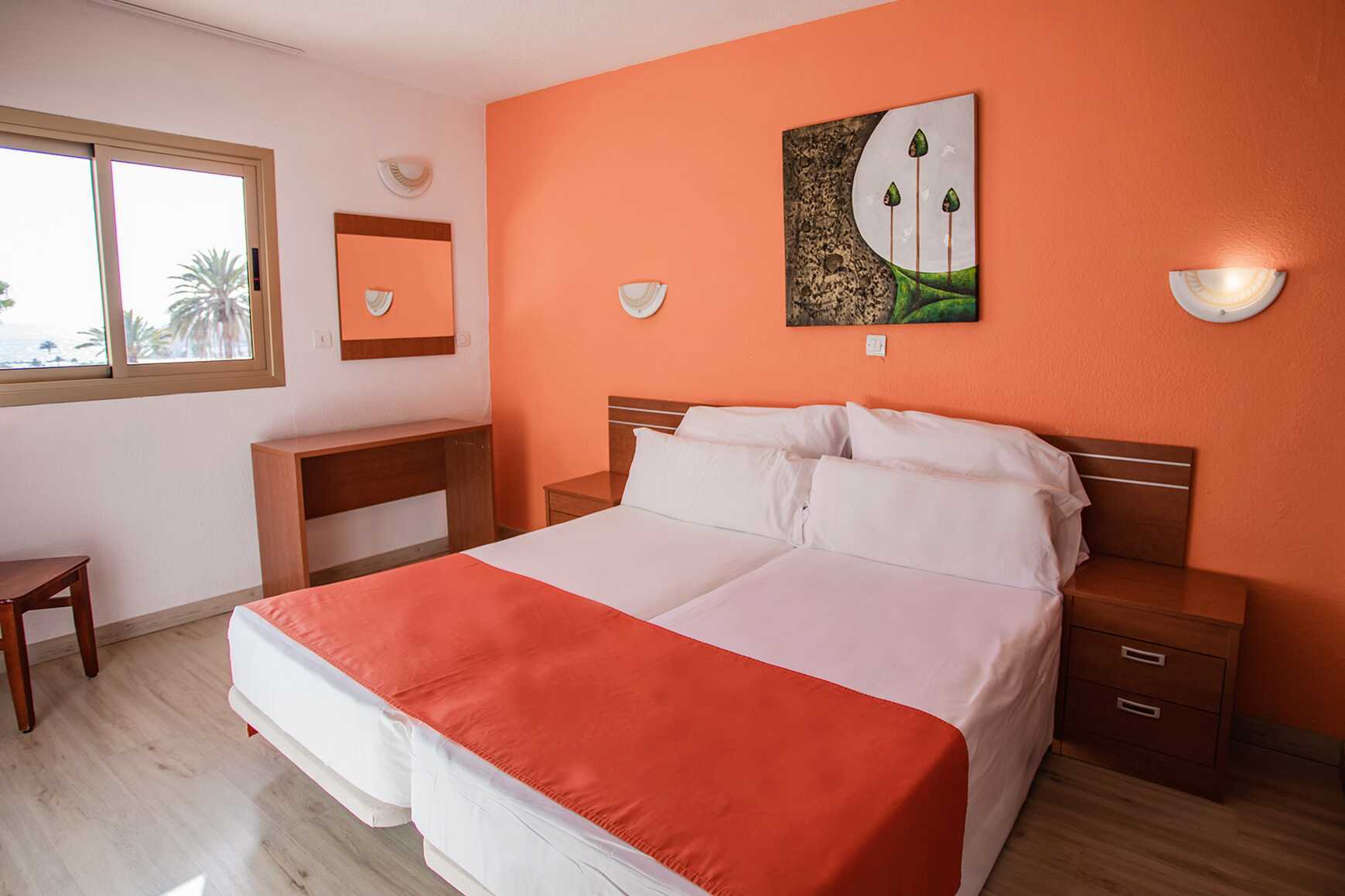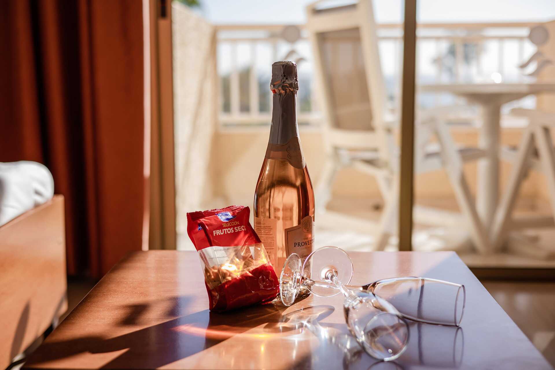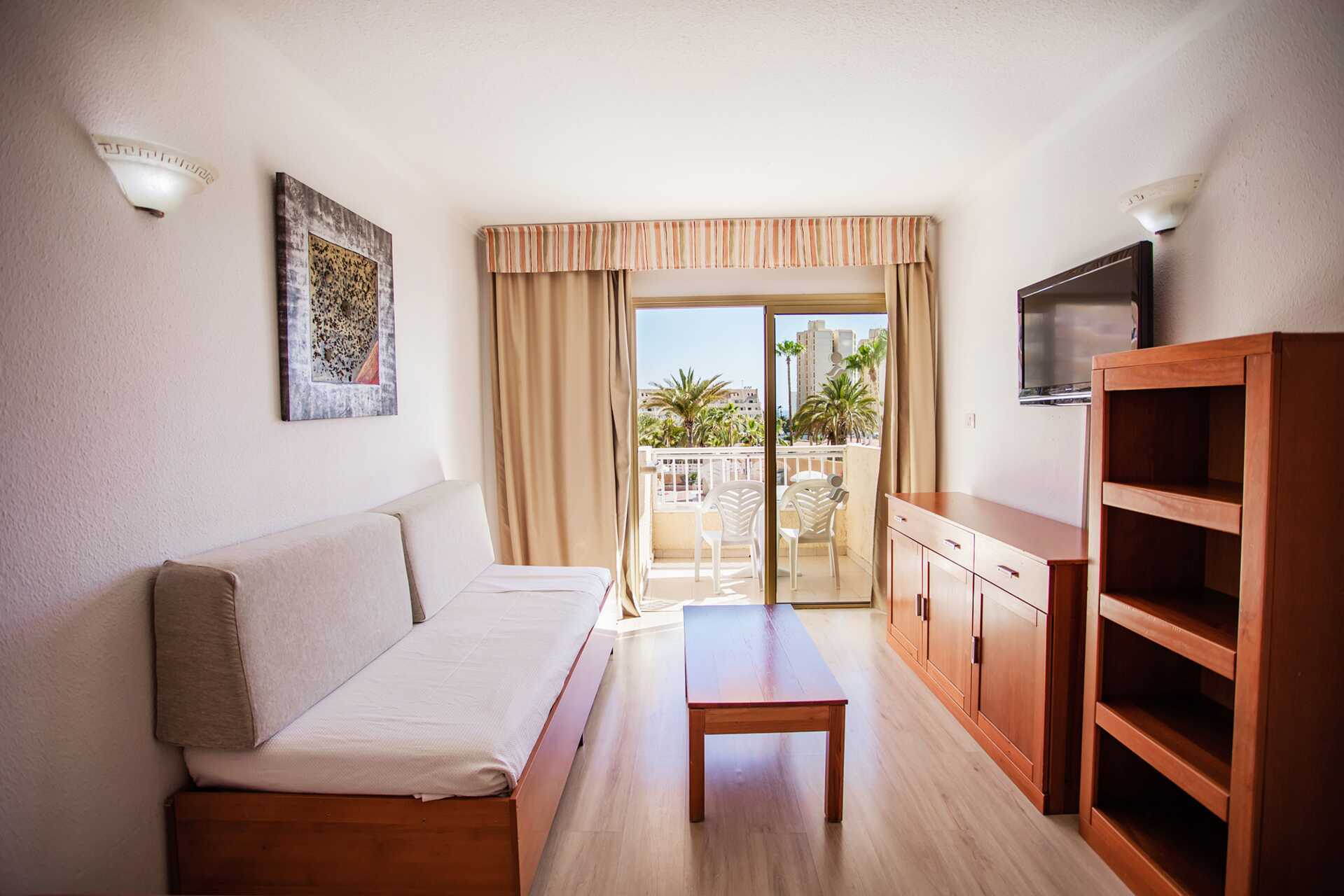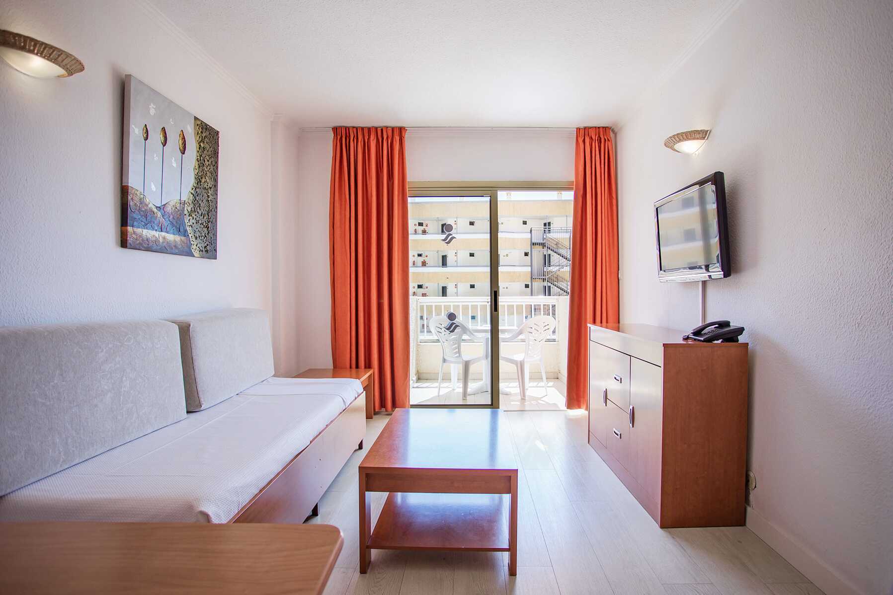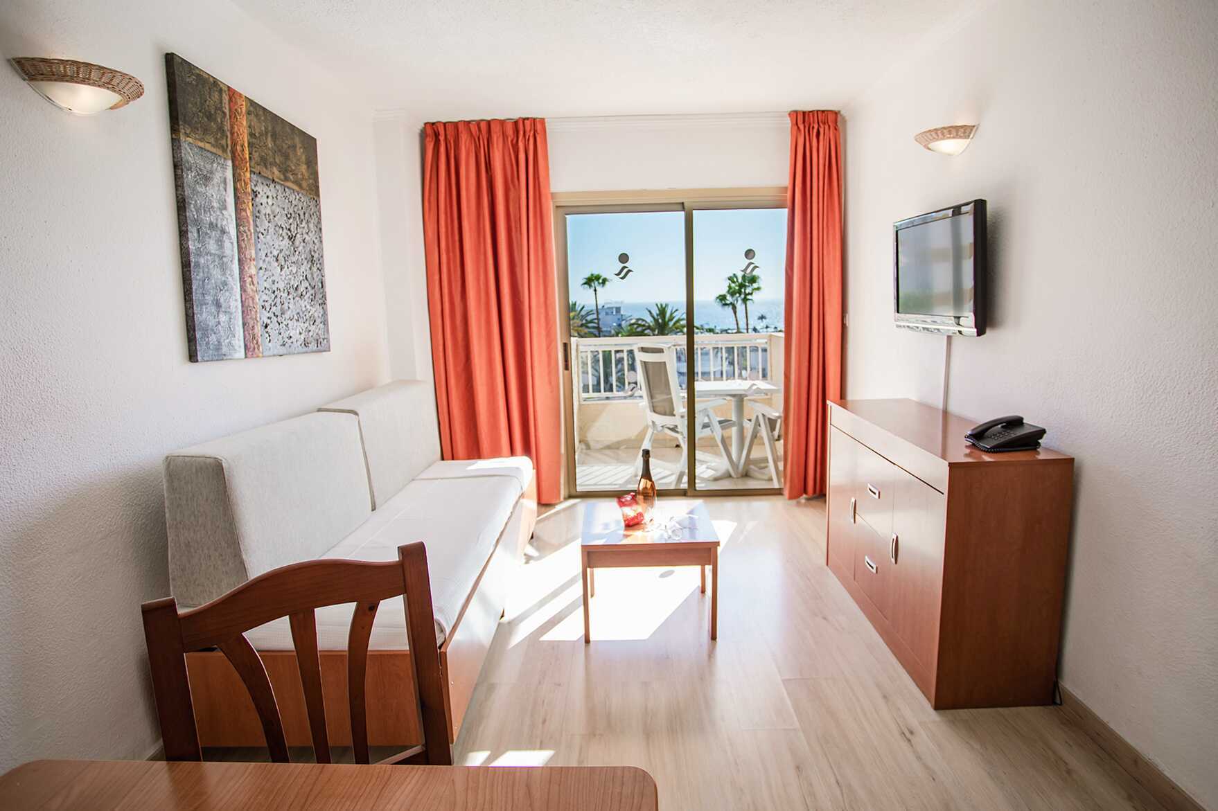 Kahden huoneen deluxe-huoneisto, jossa on parveke, jolta on näköala uima-altaalle ja tai rajoitettu merinäköala. Cavaa, pähkinöitä ja kuivattuja hedelmiä huoneessa saavuttaessa. Makuuhuone sekä yhdistetty olohuone ja minikeittiö. Kaksi yhden hengen sänkyä. Lisävuodemahdollisuus vuodesohvasta. Minikeittiö, jossa keittolevyt, jääkaappi, mikroaaltouuni, vedenkeitin ja peruskeittiölaitteet. Maksuton wifi. Tallelokero lisämaksusta. Tv kansainvälisillä kanavilla. Hiustenkuivain. Kylpyhuoneessa amme ja wc. Siivous 5 krt/viikko.