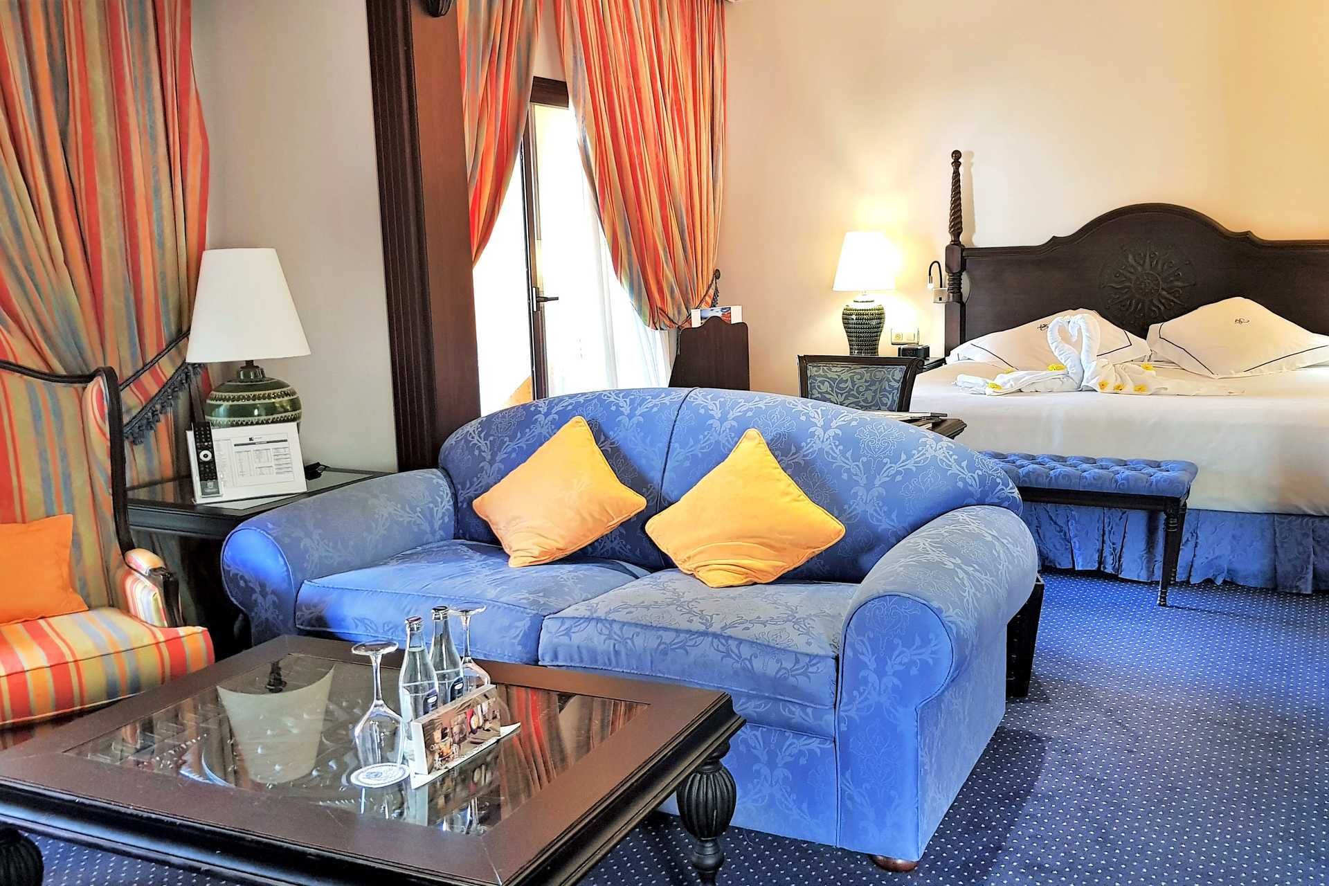 Kahden hengen huoneita, joissa on parveke tai terassi, osassa näköala puutarhaan tai merelle. Parivuode tai kaksi erillistä vuodetta sekä mahdollisuus lisävuoteeseen vuodesohvasta. Kokolattiamatto ja tuuletin katossa. Tv kansainvälisillä kanavilla ja minibaari. Nespresso-keitin. Maksuton tallelokero, ilmastointi ja wifi. Kylpytakki ja tossut. Hiustenkuivain. Kylpyamme/suihku ja wc. Siivous 7 krt/viikko. Huomioithan, että alle 2-vuotiaat lapset lasketaan lisävuoteella yöpyväksi henkilöksi.