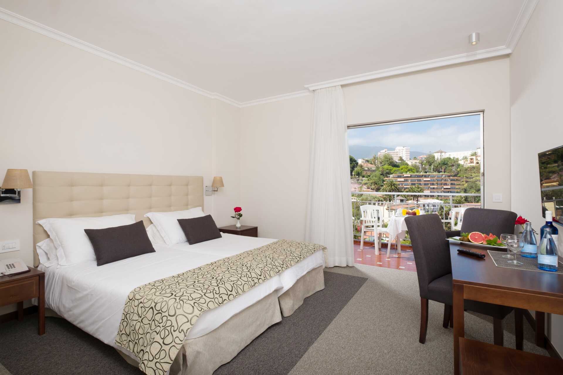 Kahden hengen huoneita, joissa on parveke, osasta näkymät Teidelle ja osasta merinäköala. Kaksi yhden hengen vuodetta. Lisävuodemahdollisuus yhden hengen vuoteesta. Maksuton wifi ja ilmastointi. Tallelokero lisämaksusta. Kokolattiamatto osassa huoneista. Minibaari lisämaksusta. Tv kansainvälisillä kanavilla. Hiustenkuivain. Suihku ja wc. Siivous 7 krt/viikko.