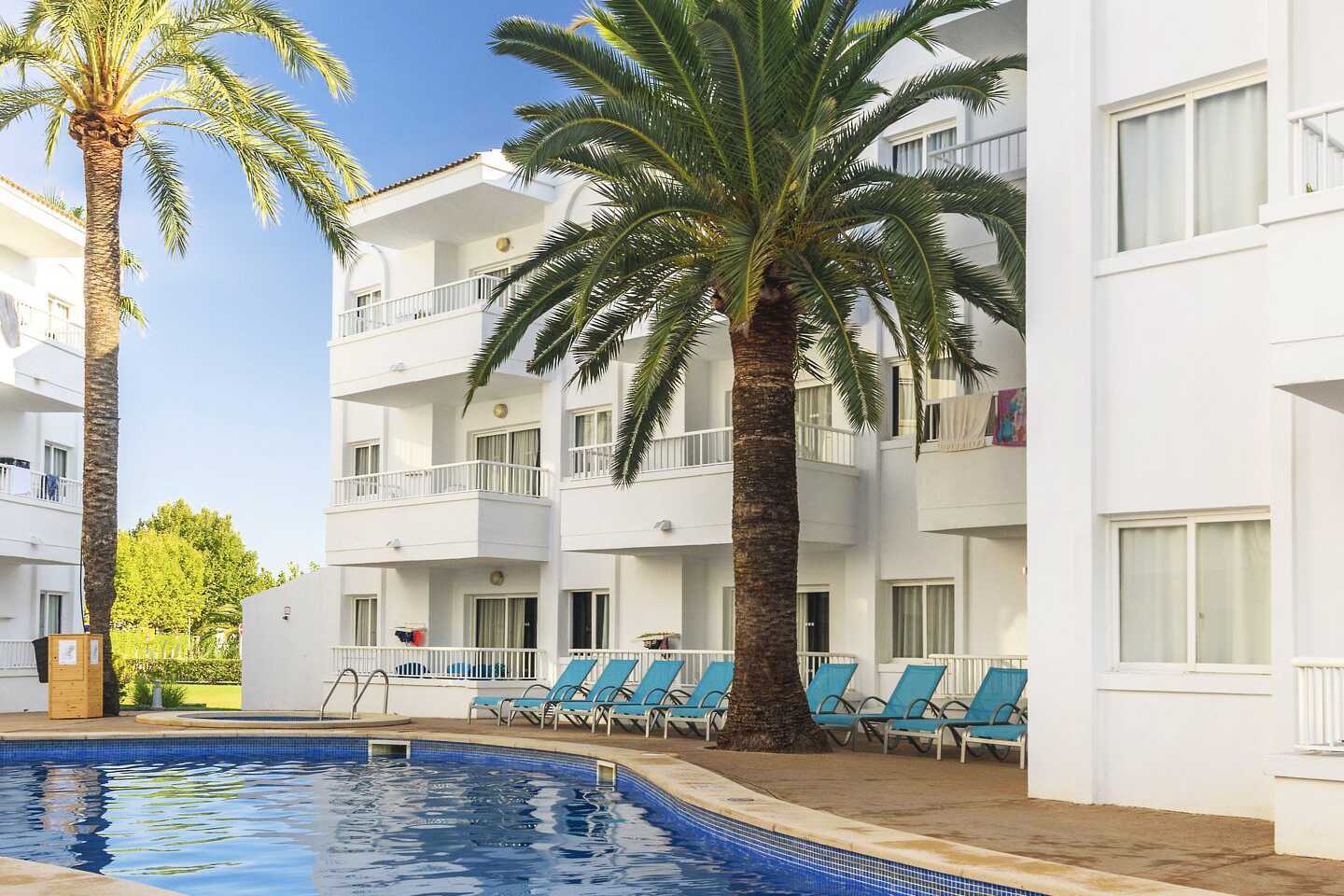 10 - ja 12 vuotiaiden lasten kanssa reissussa heinäkuussa, hotelli valikoitui lähinnä siljainnin perusteella, joka olikin loistava. Ranta on autotien toisella puolella ja sataman kaupat ja ravintolat 5 min kävelymatkan päässä. Hotellilla muutaman iltana viikosta jotain ohjelmaa, jonka äänet kuuluivat huoneeseen n klo 22-23 saakka. Uima-allas tosi täynnä, aurinkotuolit varattiin pyyhkeillä ennen 07, yksittäisiä tuoleja saattoi löytyä iltapäivällä. Altaassa oli usein niin paljon ihmisiä ettei huvittanut mennä sekaan, onneksi rannalle tosiaan käveli muutamassa minuutissa. Aamiainen hotellissa klo 8-10, meluisa kokemus mutta runsaasti vaihtoehtoja, aika sama tarjonta joka päivä. Muita ruokia ei meille kuulunut. Hotellin yhteydessä on myös ravintola, jossa ok pizzat ja grilliruoat (hotelliasukkaille -10%, all inc -50%). Parkkipaikka autolle löytyi ympäröiviltä kaduilta helposti. Huoneisto oli lähivuosina uusittu, vastasi hyvin Tjäreborgin kuvausta. Olohuoneeseen levitetty 2 lapsen sohva oli epämukava ja täytti lähes koko huoneen, eikä sovellu aikuisten vuoteeksi. Siisteys ok, siivous 5 x viikossa oli riittävä. Meillä oli huone rakennuksessa nro 3, parveke sisäpihalle (altaalle), tämä oli ihanteellinen vaihtoehto. Voisin mennä tähän hotelliin uudelleenkin, suosittelen.