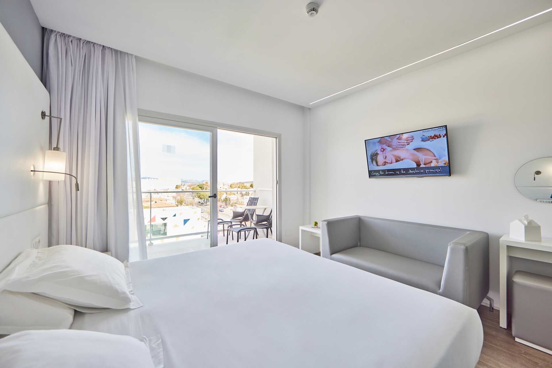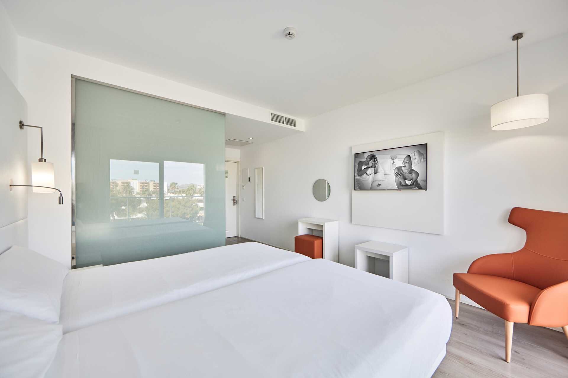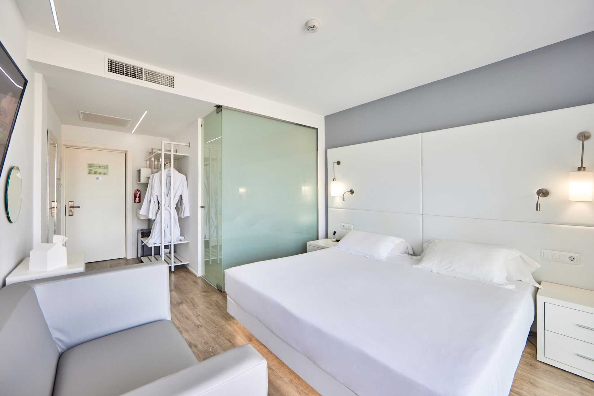 Deluxe-huone parvekkeella ja allasnäkymällä tai suuri parveke tai terassi allasnäkymällä. Parvekkeelliset huoneet sijaitsevat kerroksissa 5-6. Huoneet, joissa on suuri parveke tai terassi, sijaitsevat ensimmäisessä kerroksessa, ja ulkotilassa on pöytä, tuolit sekä suuri balivuode. Parivuode. Maksuton wifi, ilmastointi ja tallelokero. Jääkaappi. Vedenkeitin. Nespresso-keitin – kapselit maksutta saapuessa. Tv kansainvälisillä kanavilla. Kylpytakit ja tossut. Hiustenkuivain. Kylpyhuoneessa suihku ja wc. Siivous 7 krt/viikko.