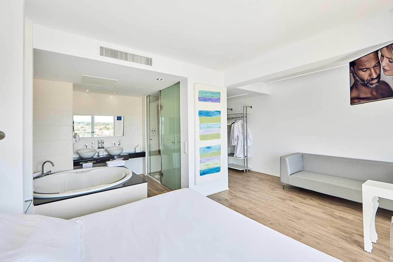 Deluxe-junior-sviitti parvekkeella ja näköalalla uima-altaalle. Sviitit sijaitsevat kerroksissa 1-6. Parivuode. Maksuton wifi, ilmastointi ja tallelokero. Jääkaappi. Vedenkeitin. Nespresso-keitin – maksuttomat kapselit saavuttaessa. Tv kansainvälisillä kanavilla. Kylpytakit ja tossut. Avoin pohjaratkaisu kylpyhuoneeseen, jossa hiustenkuivain, poreamme, erillinen suihku ja wc. Siivous 7 krt/viikko.