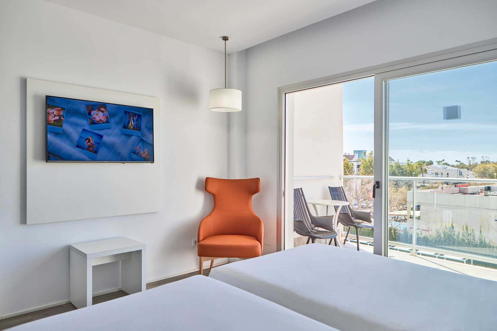 Kahden hengen huone, jossa on parveke, osassa allasnäkymä, tai suuri parveke tai terassi. Parvekkeelliset huoneet sijaitsevat kerroksissa 2.-4. Huoneet, joissa on suuri parveke tai terassi, sijaitsevat ensimmäisessä kerroksessa, ja ulkotilassa on pöytä, tuolit ja suuri balivuode. Kaksi erillistä sänkyä. Maksuton wifi, ilmastointi ja tallelokero. Jääkaappi. Vedenkeitin. Tv kansainvälisillä kanavilla. Hiustenkuivain. Kylpyhuoneessa suihku ja wc. Siivous 7 krt/viikko.