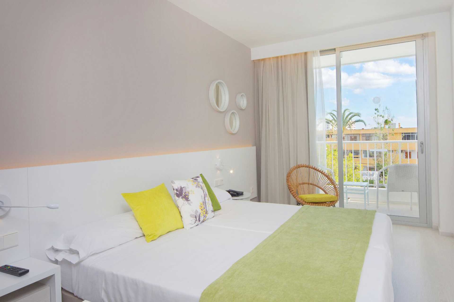 Kahden hengen huone parvekkeella. Yksi parivuode tai kaksi erillistä vuodetta. Lisävuodemahdollisuus yhden hengen sängystä. Jääkaappi. Tv kansainvälisillä kanavilla. Maksuton wifi ja ilmastointi. Tallelokero panttia ja lisämaksua vastaan. Hiustenkuivain. Kylpyhuoneessa suihku ja wc. Siivous 6 krt/viikko. Alle 2-vuotiaat lapset lasketaan lisävuoteella majoittuviksi henkilöiksi.