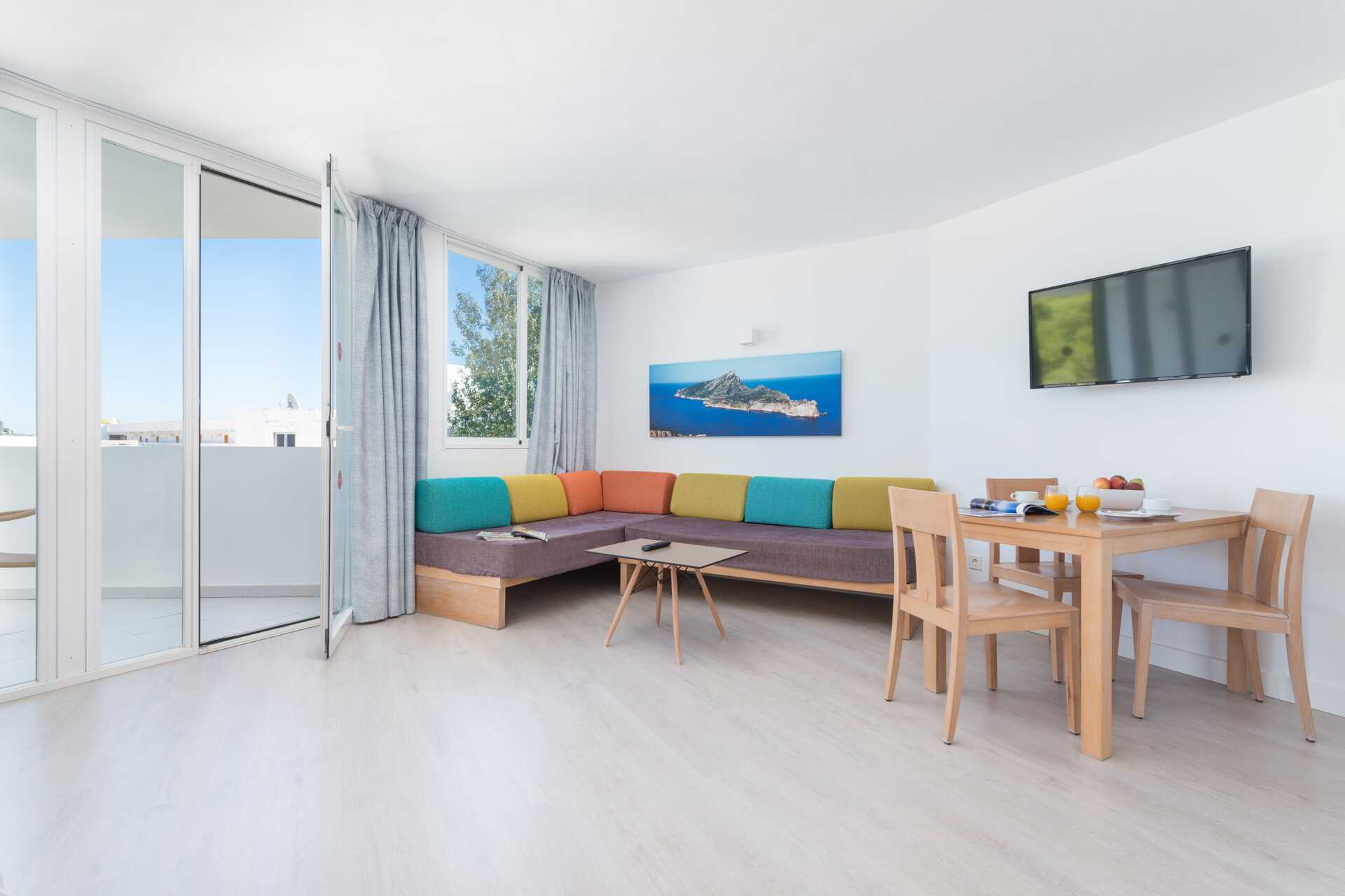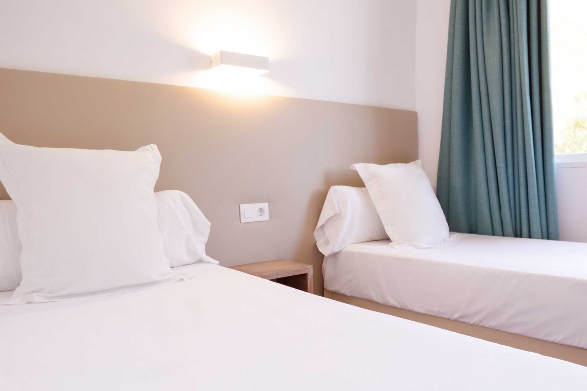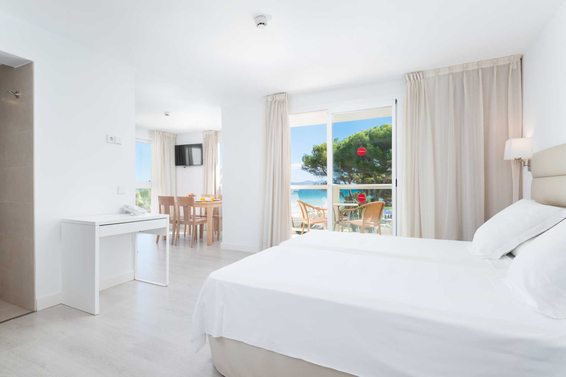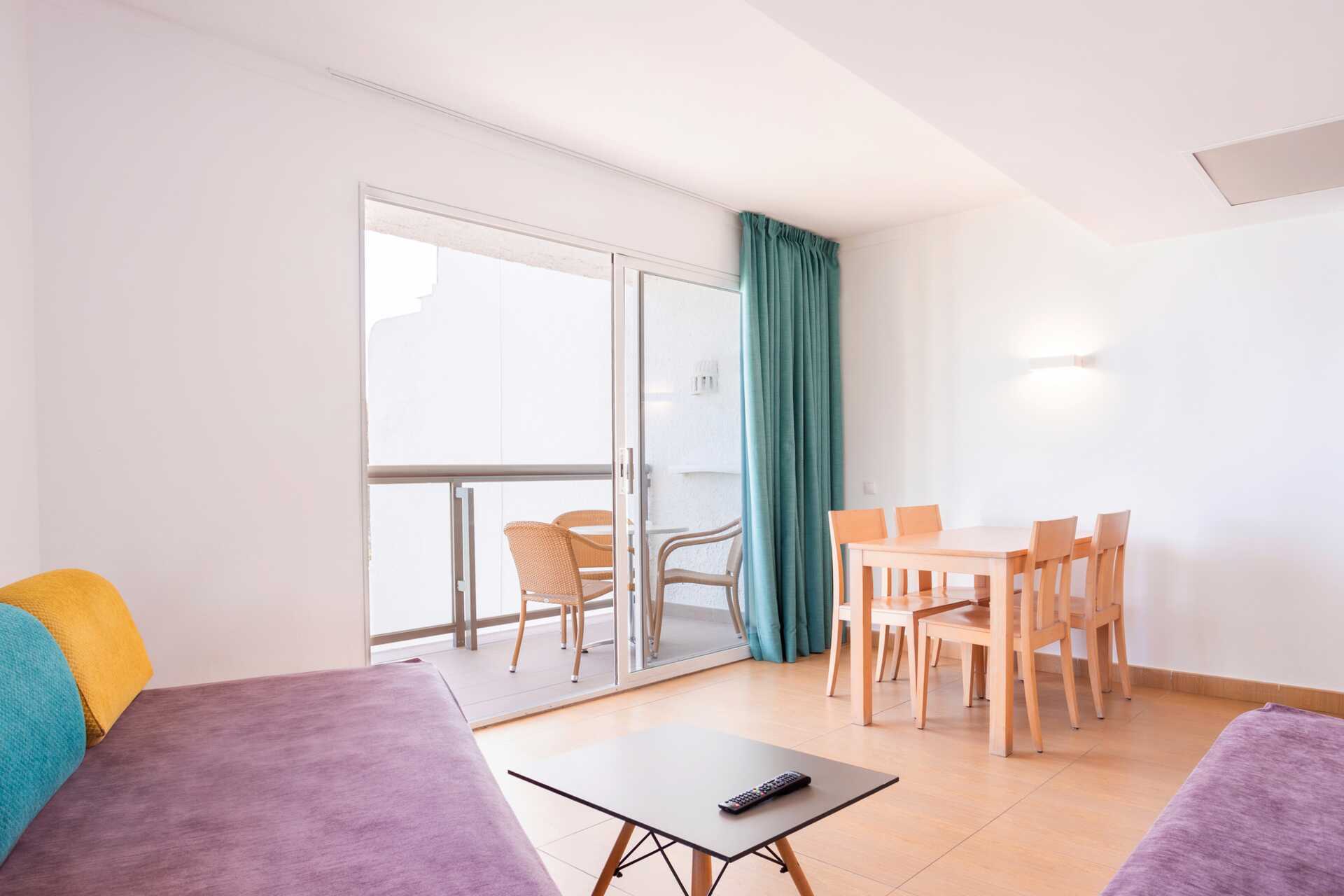 Kolmio jossa parveke. Kaksi makuuhuonetta sekä yhdistetty olohuone ja minikeittiö. Kaksi erillistä sänkyä molemmissa makuuhuoneissa. Lisävuodemahdollisuus kahdesta vuodesohvasta. Minikeittiössä keittolevyt, jääkaappi, mikro ja yksinkertainen keittiövarustus. Maksuton wifi, ilmastointi ja tallelokero. Tv kansainvälisillä kanavilla. Silitysrauta. Hiustenkuivain. Kylpyhuoneessa suihku ja wc. Siivous 5 krt/viikko.