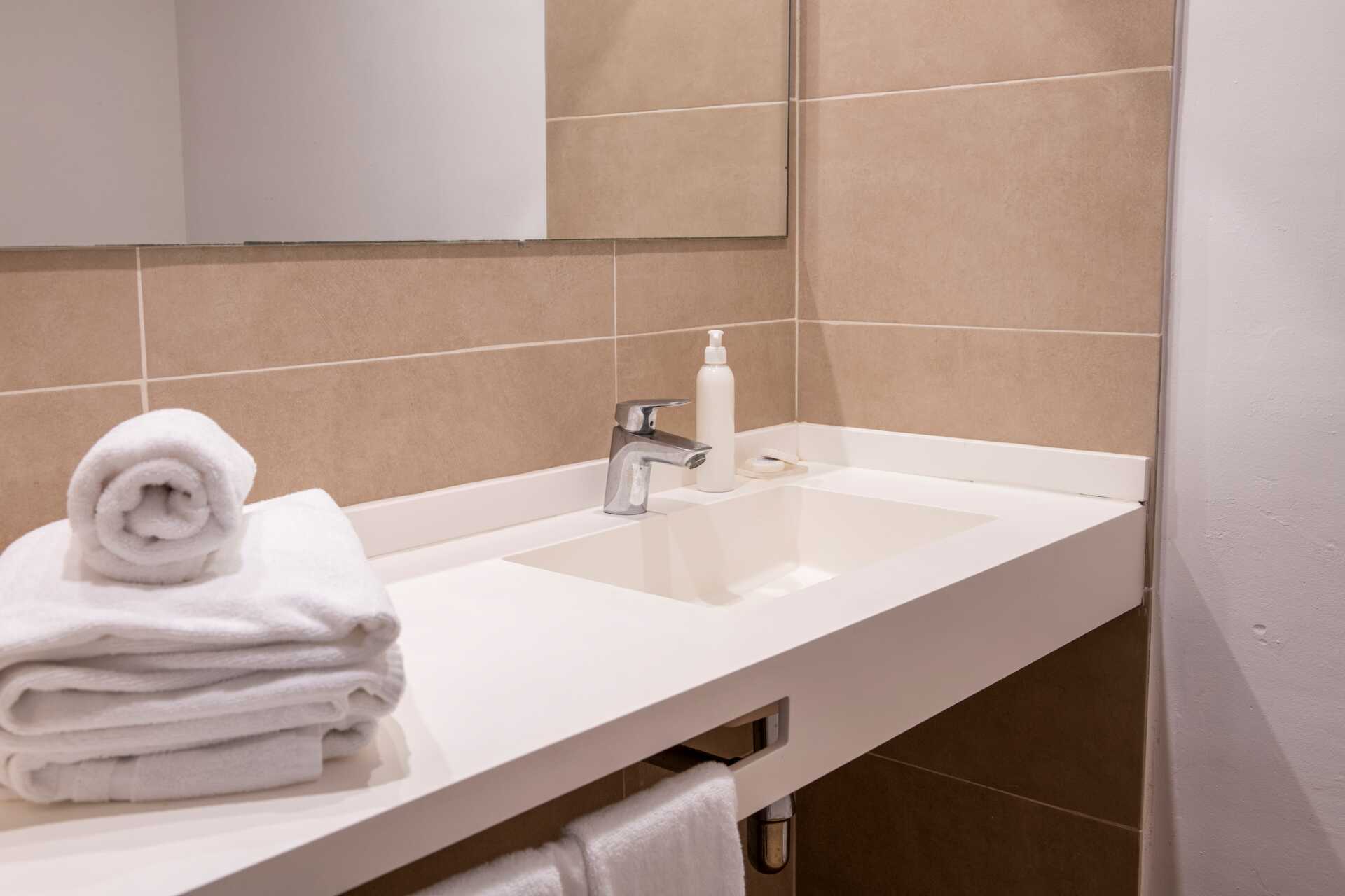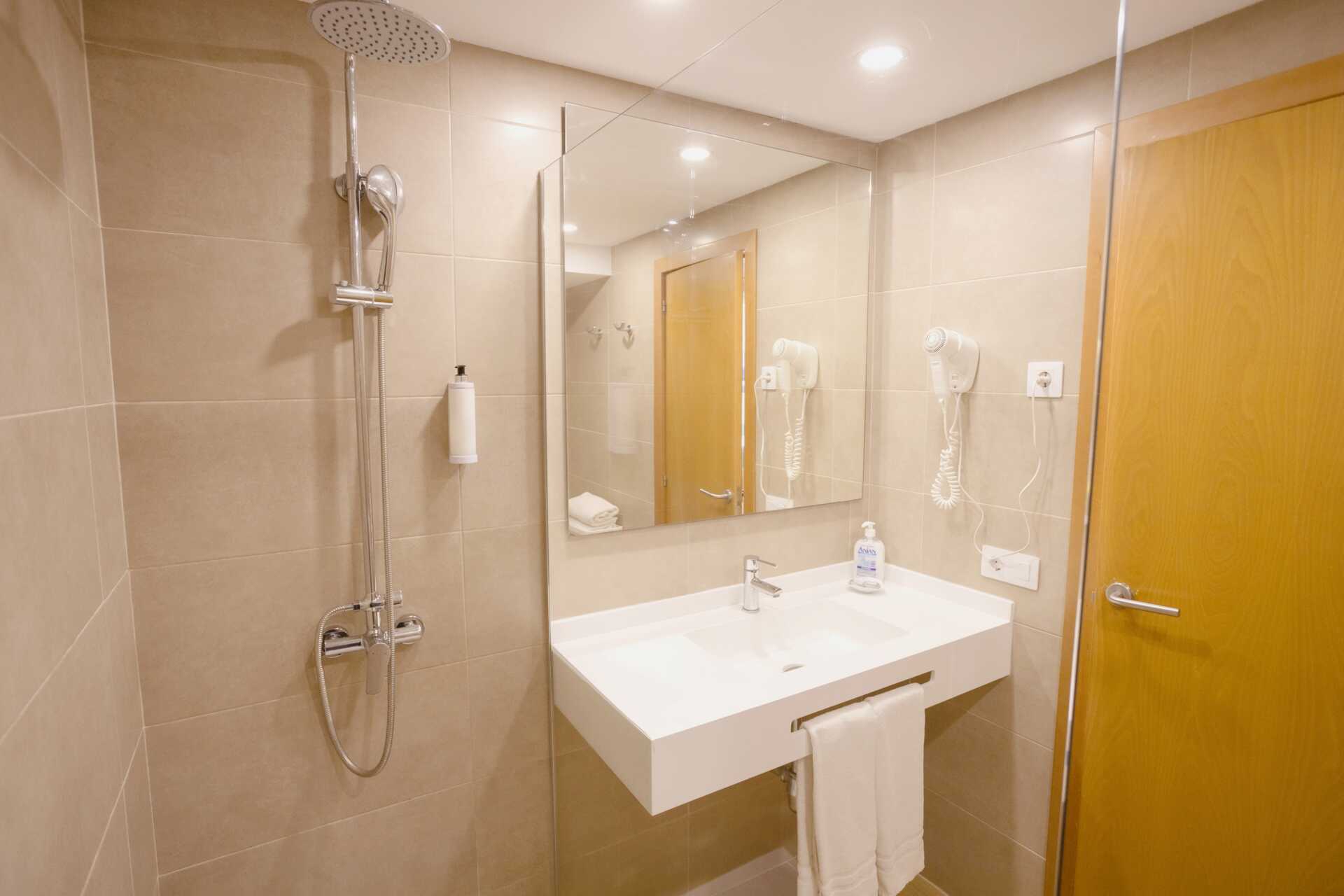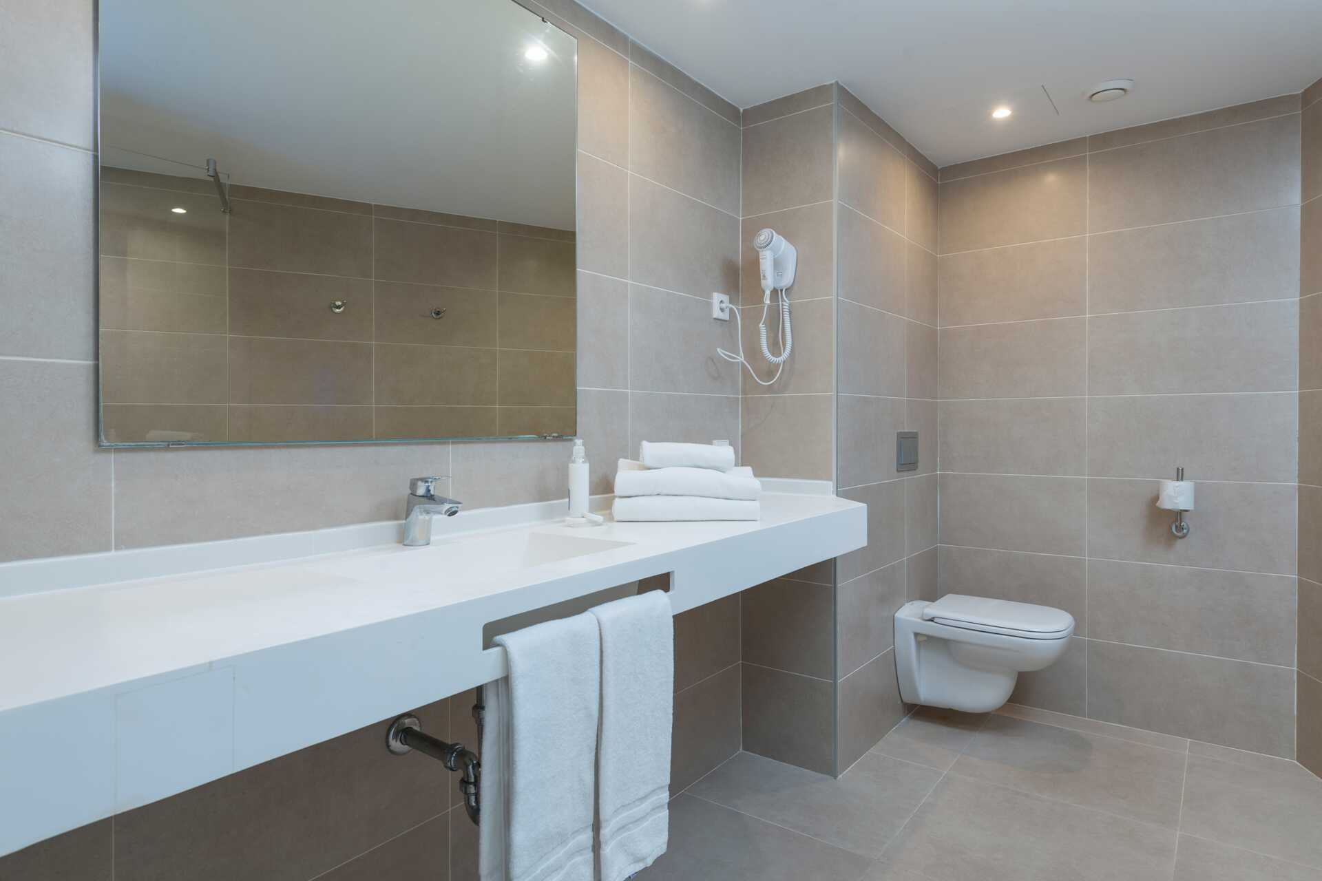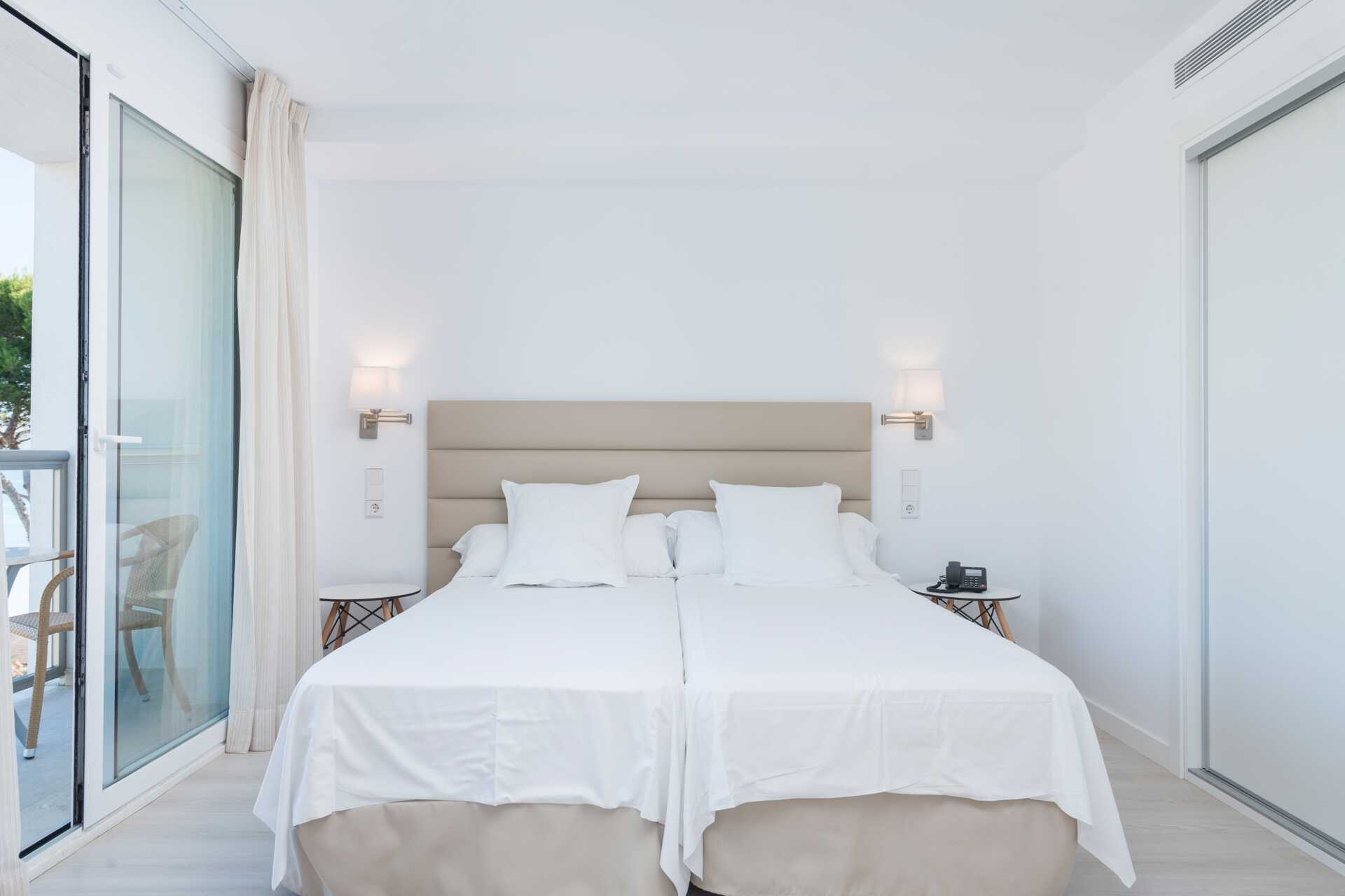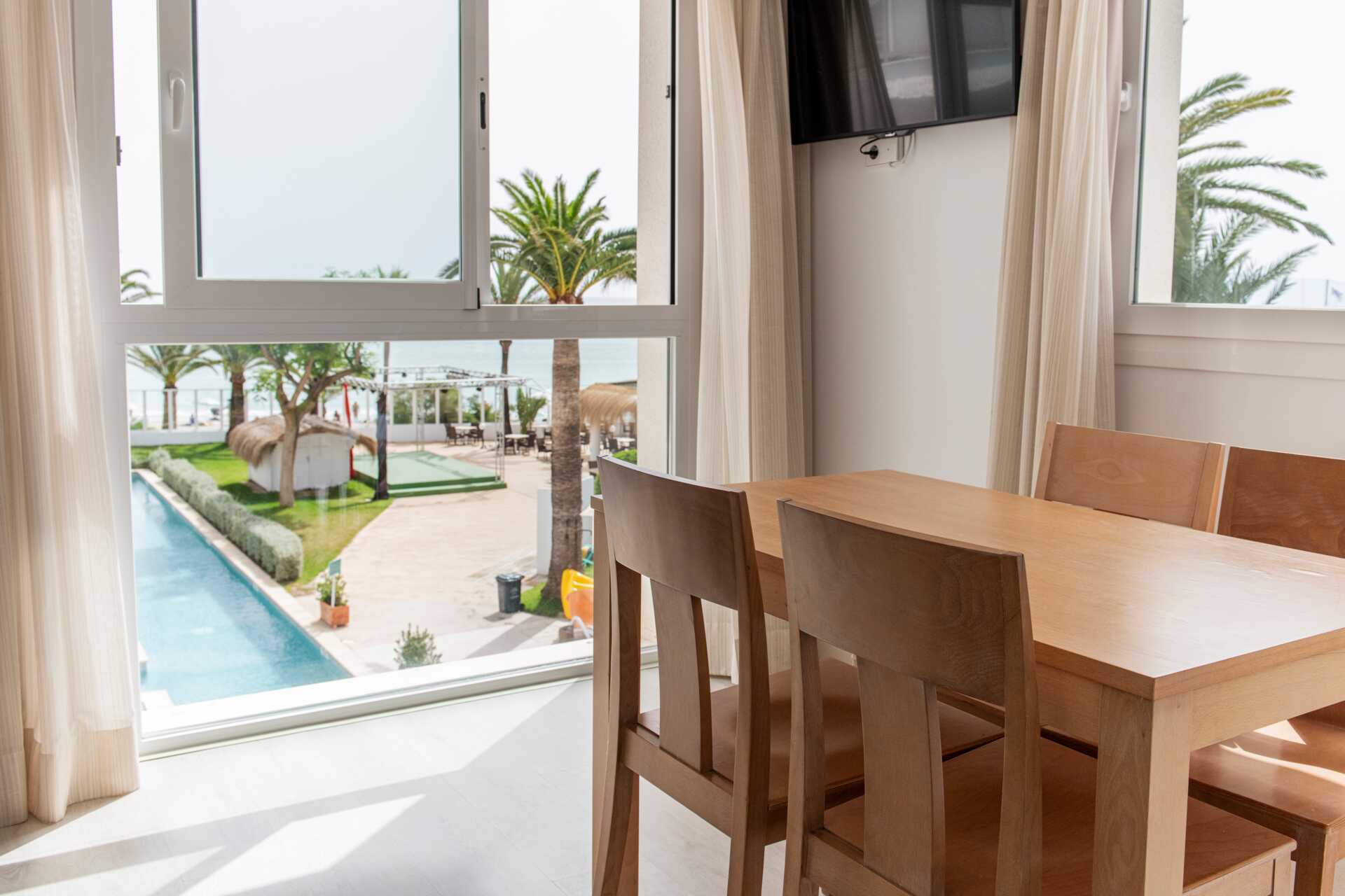 Kolmio jossa parveke. Kaksi makuuhuonetta sekä yhdistetty olohuone ja minikeittiö. Kaksi erillistä sänkyä molemmissa makuuhuoneissa. Lisävuodemahdollisuus kahdesta vuodesohvasta. Minikeittiössä keittolevyt, jääkaappi, mikro ja yksinkertainen keittiövarustus. Maksuton wifi, ilmastointi ja tallelokero. Tv kansainvälisillä kanavilla. Silitysrauta. Hiustenkuivain. Kylpyhuoneessa suihku ja wc. Siivous 5 krt/viikko.