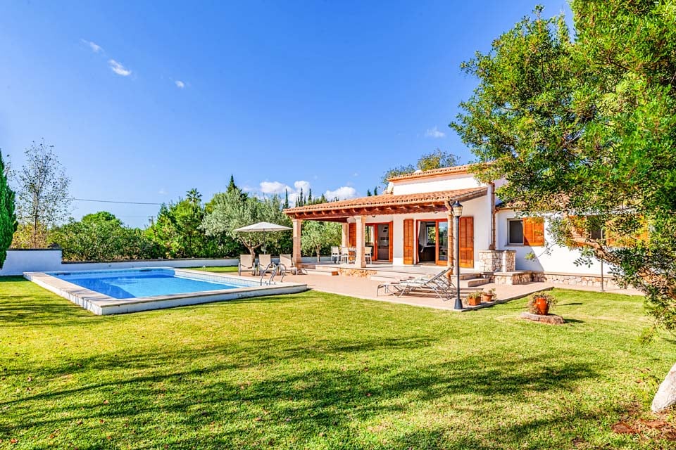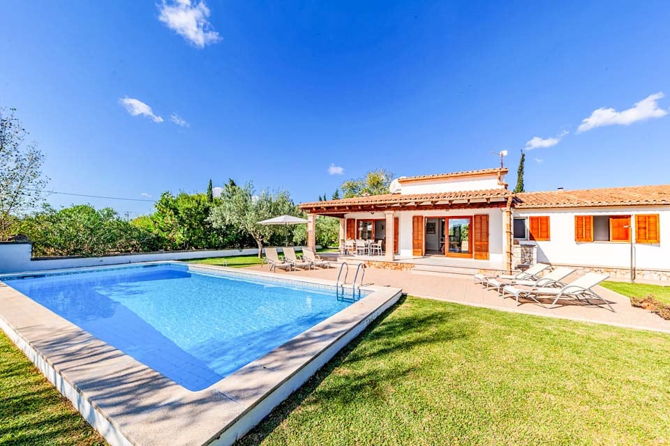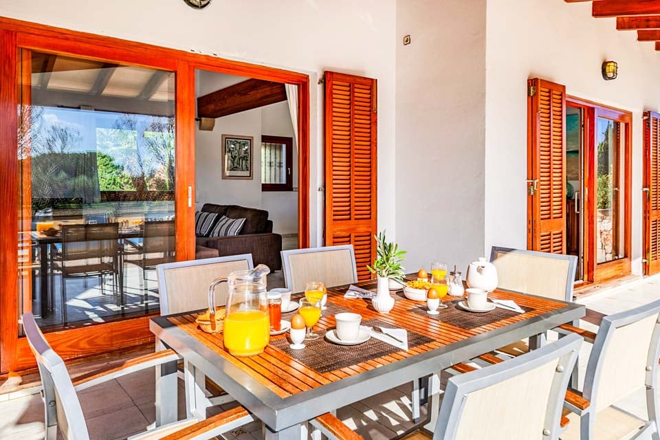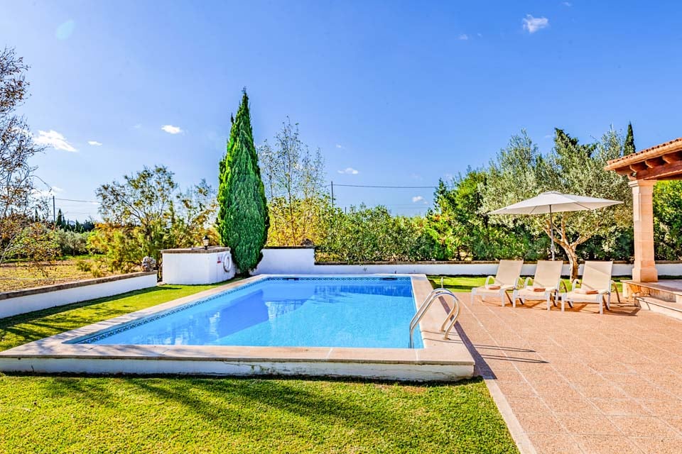 Ulkona huvilassa on suuri yksityinen uima-allas, joka on loistava paikka rentoutua tai vilvoitella läheisten rantojen tutkimiseen vietetyn päivän jälkeen. Aurinkotuolit ympäröivät uima-allasta, ja ne tarjoavat ihanteellisen paikan nauttia Mallorcan auringosta. Ulkoilmaruokailun ystäville on tarjolla perinteinen grillipaikka, joka sopii erinomaisesti ulkoilma-aterioiden nauttimiseen perheen ja ystävien kanssa.