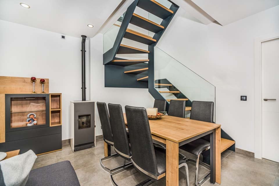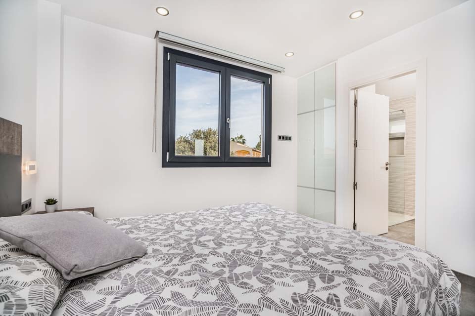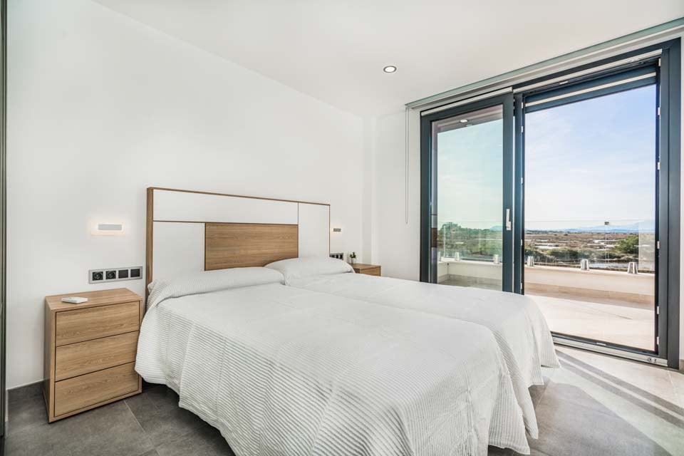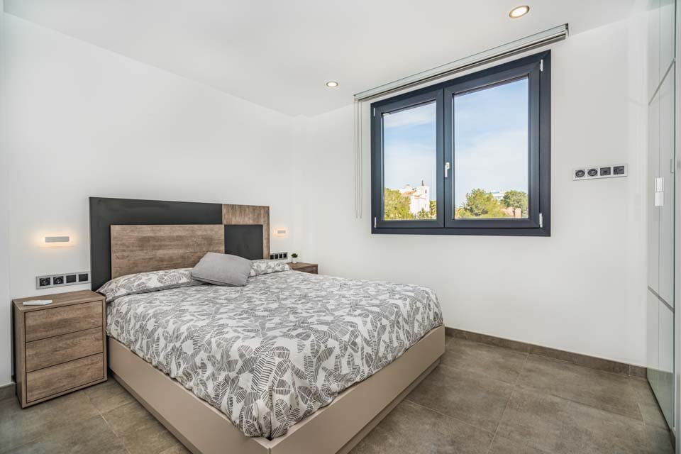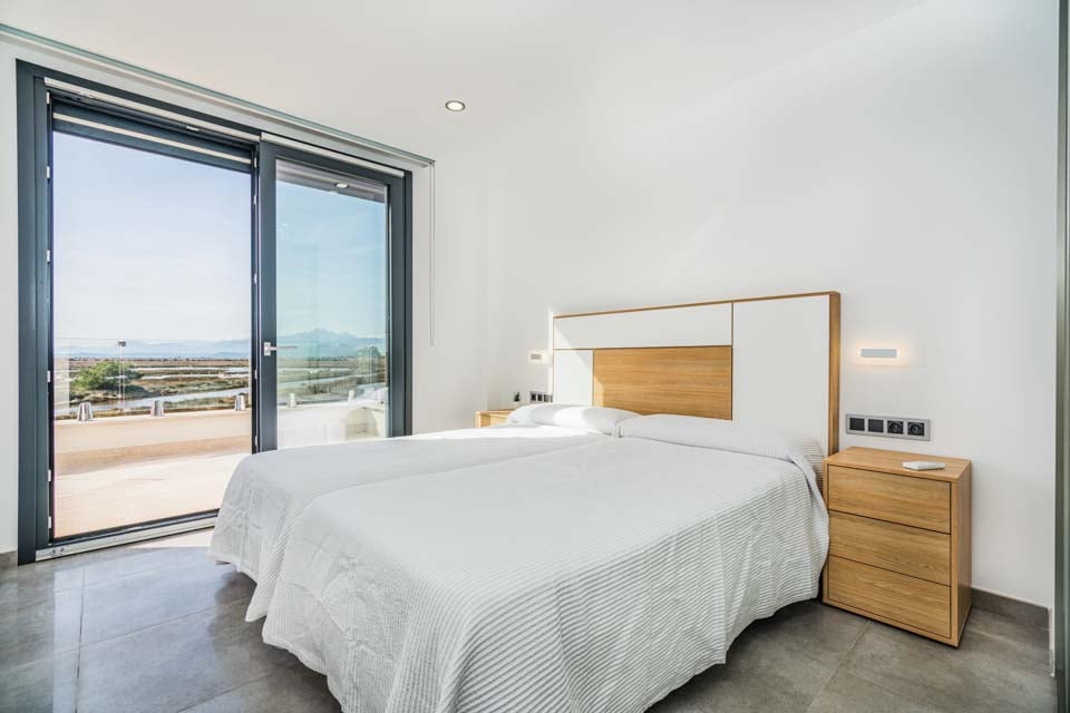 Yläkerrasta pääset kolmeen lisämakuuhuoneeseen. Päämakuuhuoneessa on queen-size-parivuode ja oma suihkuhuone. Lisäksi kahden erillisellä vuoteella varustetun makuuhuoneen kesken on yhteinen perheille tarkoitettu kylpyhuone. Molemmissa on liukuovet jaetulle parvekkeelle, jolta on näkymät henkeäsalpaavalle s'Albuferalle.