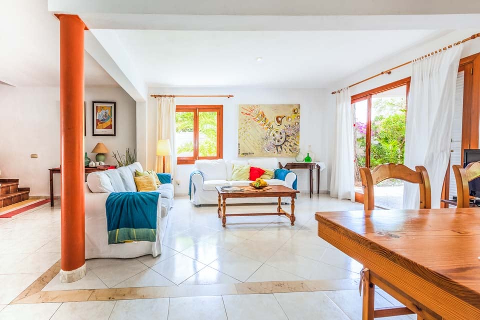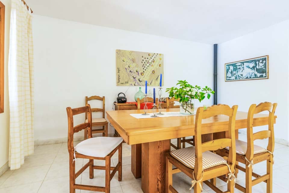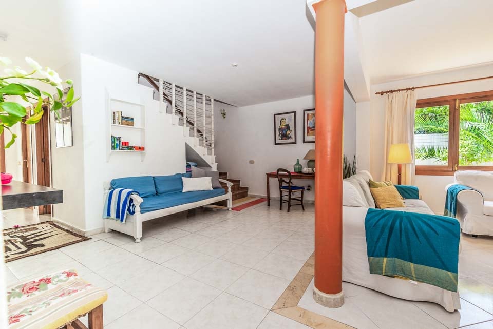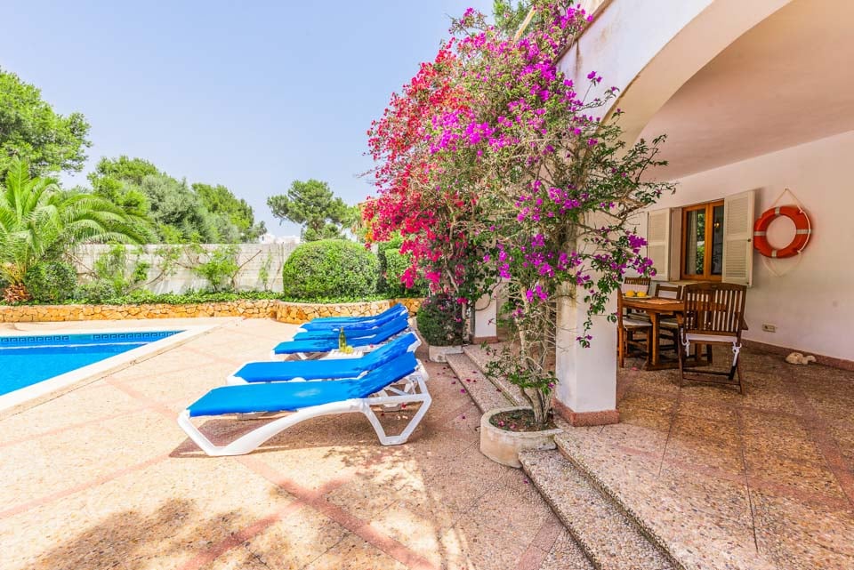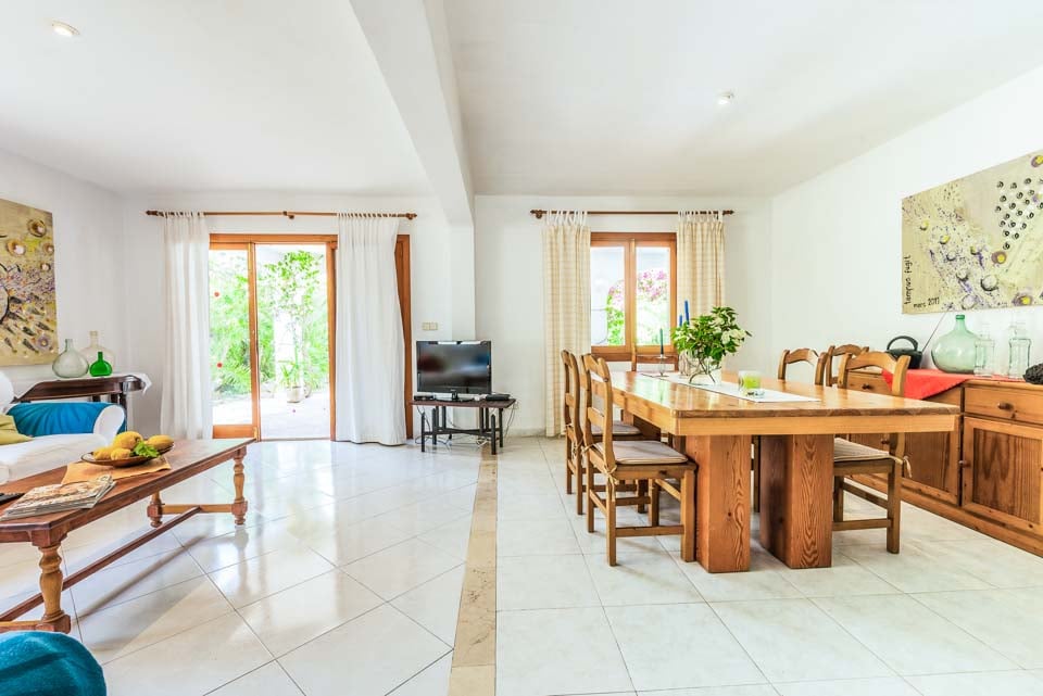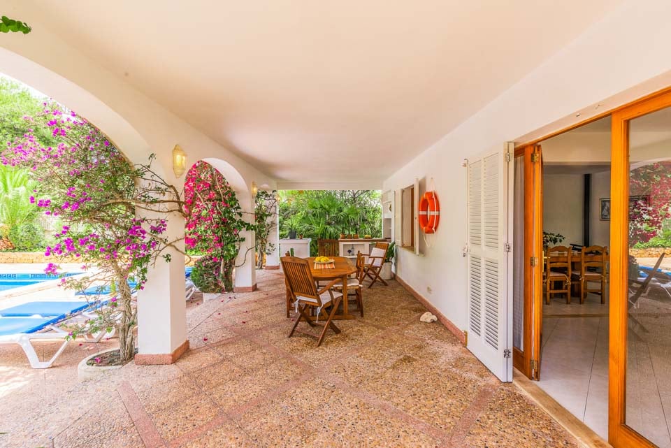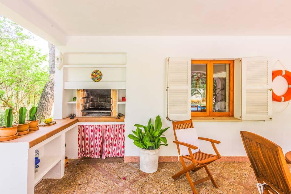 Tämä ihastuttavan syrjäinen omakotitalo sijaitsee kätevästi kävelymatkan päässä kaupoista, ravintoloista ja upeasta Cala Egosin hiekkarannasta. Cala D'Orin keskusta trendikkääne venesatamaneen ja erinomaisine kansainvälisine ja perinteisine ravintoloineen, kahviloineen ja kauppoineen on vain 5 minuutin ajomatkan päässä. Sisätiloissa on myös aurinkoinen ja rentouttava tunnelma. Viehättävää sisustusta täydentävät vaaleat lattialaatat, jotka kulkevat koko huvilan alueella. Olohuone on puolestaan tyylikäs, tilava ja siellä on todella mukavat sohvat. Lasiovet johtavat varjoisalle terassille, jossa on pöytiä ja tuoleja ulkona ateriointia varten. Ulkona on kypsä puutarha nurmikkoineen ja palmuineen, ja tilavaa aurinkoterassia ja suurta uima-allasta ympäröivät ne. Tässä ihastuttavassa huvilassa on tiilestä rakennettu grilli, patiokalusteet ja aurinkotuolit, joiden avulla voit nauttia ulkoilmaruokailusta ja auringosta.